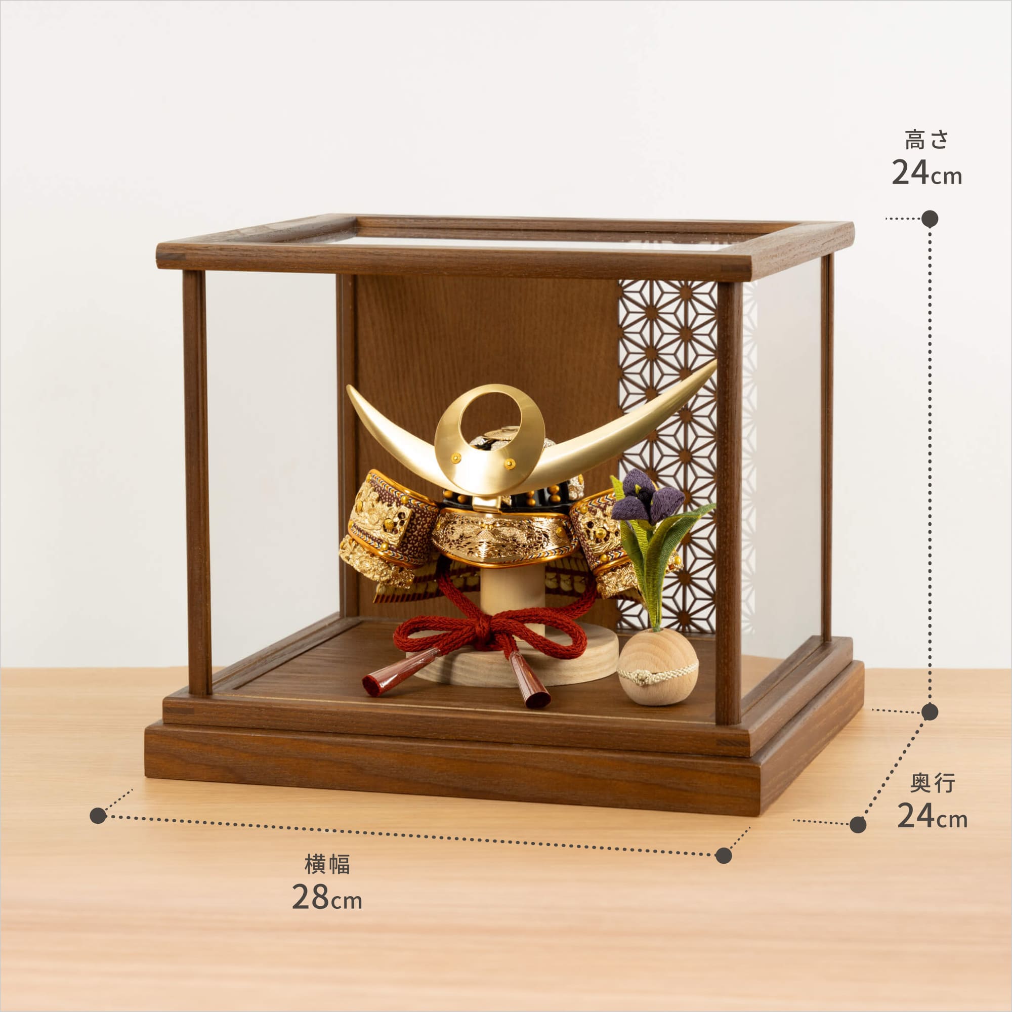精巧な戦国兜の凛として強く美しい佇まいを天然木の優しいぬくもりが包み込む・・・まるで男の子の成長を温かく見守る家族の様に・・・そんなコンセプトから生まれた兜は、てづくり工房「木都」と甲冑工房「悠雅」のコラボレーションから生まれました。親しみやすく、お子様と一緒に飾れるKOTO×悠雅コラボ兜です。※ 細かい部品が含まれています。3歳未満のお子様は、保護者の方と一緒にお遊びください。選び抜いた素材と手間をかけた技法でつくる兜鉢選び抜いた素材と手間をかけた技法でつくる兜鉢KOTO×悠雅コラボ兜の兜鉢は、伝統的な本式の合せ鉢という技法でつくられています。本式の合せ鉢とは、戦国時代に頭部を守るために考案され、三角状の鉢部品を重ね合わせ、多数の星鋲をカシメる事で強度を高める技法です。選び抜いた素材と手間をかけた技法でつくる「庇」選び抜いた素材と手間をかけた技法でつくる「庇」兜の裏側にあたる庇は、甲州印伝革を使用し伝統的な技術で1つ1つ手作りで丁寧に作られています。選び抜いた素材と手間をかけた技法でつくる「小札」選び抜いた素材と手間をかけた技法でつくる「小札」小札は、細かい天然繊維である本物の絹糸を使用した正絹で結び合わせ繋げております。伝統的な兜をモダンに仕上げたシンプルなデザイン伝統的な兜をモダンに仕上げたシンプルなデザイン伝統的な製法で作られた兜に天然木の素材を活かしたシンプルなデザインの兜です。モダンでシンプルなデザインは、どんなお部屋の雰囲気にもピッタリ。コンパクトでちょうどいいサイズコンパクトでちょうどいいサイズ今どきのおうちに合わせたコンパクトなサイズに仕上げました。飾るスペースが狭くなりがちなマンションや子ども部屋にもぴったり。健やかな成長への願いを込めた麻の葉文様健やかな成長への願いを込めた麻の葉文様古来からの日本伝統の吉祥文様である麻の葉文様。麻の丈夫さ・成長の早さにあやかり、お子さまの健やかな成長への願いが込められています。兜の由来〜上杉謙信兜の由来〜上杉謙信生涯で70回の戦に出陣し、うち敗北が2回のみという勝率の高さから「軍神」とも呼ばれる上杉謙信の兜は日輪と三日月です。伊達と同じく妙見信仰の影響を受け上杉は太陽と月の二つを信仰していました。ケースでも手にとって欲しいこだわりの兜ケースでも手にとって欲しいこだわりの兜木都のケース飾りは、本物の素材や質感を感じながら親子で一緒に手に取って飾る体験をしてほしいから、あえて飾る手間を残しています。手間はかかりますが、伝統的な技法で一つひとつ手づくりしています。お子さまの感性を育む天然木へのこだわりお子さまの感性を育む天然木へのこだわり素材には、タモ、ブナといった天然木を使用。お子さまへの一生に一度の贈り物だから、木都は自然素材の天然木にこだわり続けています。※ 生産時期により使用する素材が一部変更になる場合がございます。熟練の職人による確かな手仕事熟練の職人による確かな手仕事伝統工芸の技術を受け継ぐ日本国内の熟練の職人が、一つひとつ丁寧に手づくりしています。おしゃれなギフト包装でお届けしますおしゃれなギフト包装でお届けします和の雰囲気を感じさせる越前和紙のギフト用ラッピングでお届け。料金がわかるものもお入れしていないので、そのまま贈り物として利用できます。商品レビュー記入でもれなくもらえる天然木のミニ名前札プレゼント商品レビュー記入でもれなくもらえる天然木のミニ名前札プレゼントミニサイズのお名前札 (通常販売価格1,980円) をプレゼント♪商品到着後、商品レビューをご記入の上、商品と同梱のチラシ記載のQRコードから応募フォームへ必要事項をご入力ください。店舗よりレビュー特典を発送いたします。※ お名前札の生年月日の表記は和暦となります。(例:令和七年)商品のご注文へ収納方法とセット内容兜・鍬形・芯木・菖蒲・ケース素材:タモ重量:1,840g (兜のみ 200g)サイズ:W280mm × D240mm × H250mm梱包時:W340mm × D280mm × H275mm兜のみ:約 W150mm × D110mm × H150mm収納方法鍬形は専用袋に入れ、兜は風呂敷に包みます。その他の部品は不織布に入れ収納してください。兜置きの下台とポールは組み立ててご利用ください。兜などを保管する箱は木のケースに入れて収納することが出来ます。注意事項甲冑について飾り付ける際に必ず手袋をご使用ください。錆や変色などの予防にもなります。本品の上には絶対に乗らないでください。本品または本品の部品は装飾品です。他の目的に使用しないで下さい。部品には小さなものがございます。お子様がお口に入れないようにご注意いください。木製品について色合いなど実際のものと写真とでは多少の誤差が生じる場合がございます。また、手作りであり天然木を使用している為、多少の仕様の変化や風合いがひとつひとつ異なります。あらかじめご了承ください。部品には小さなものがございます。お子