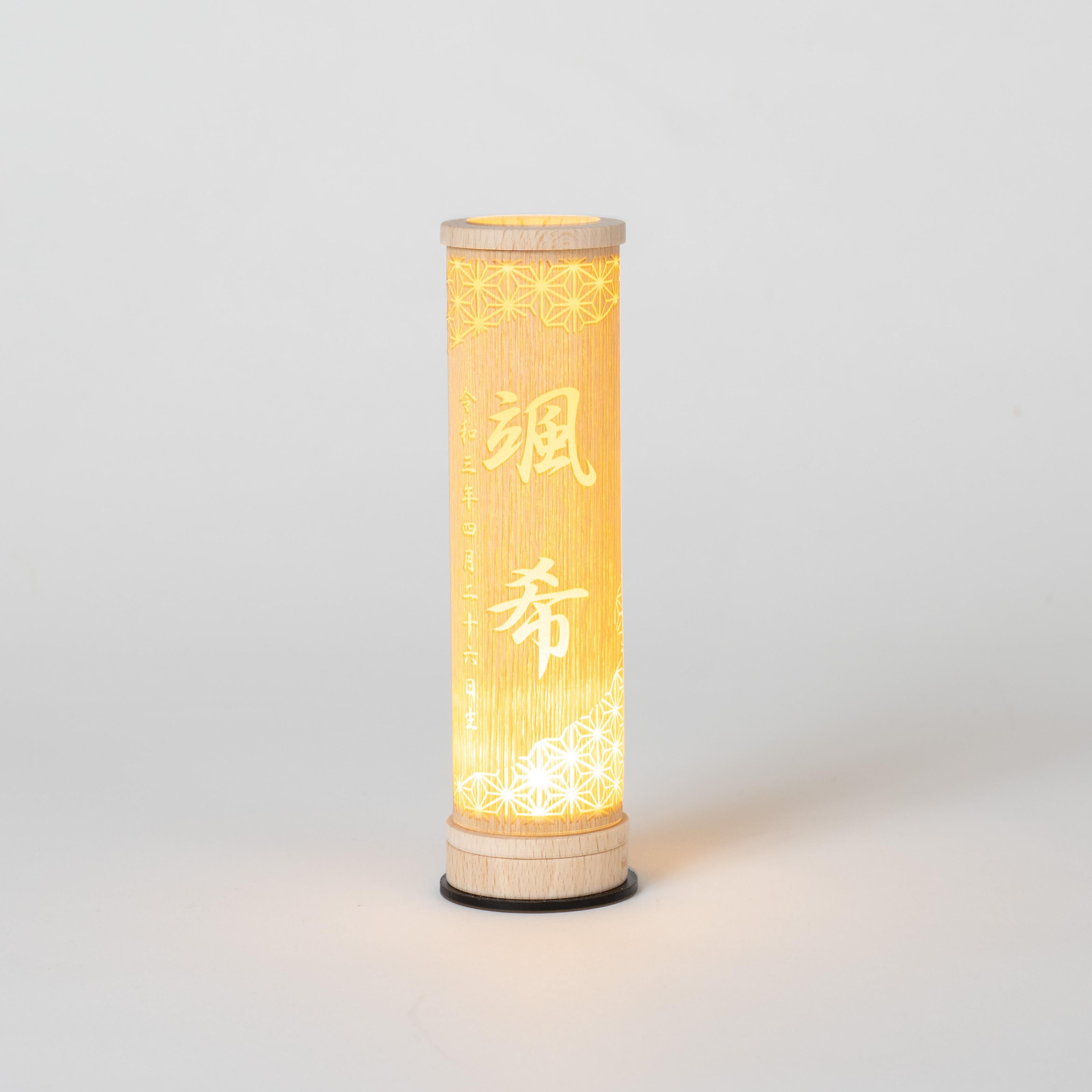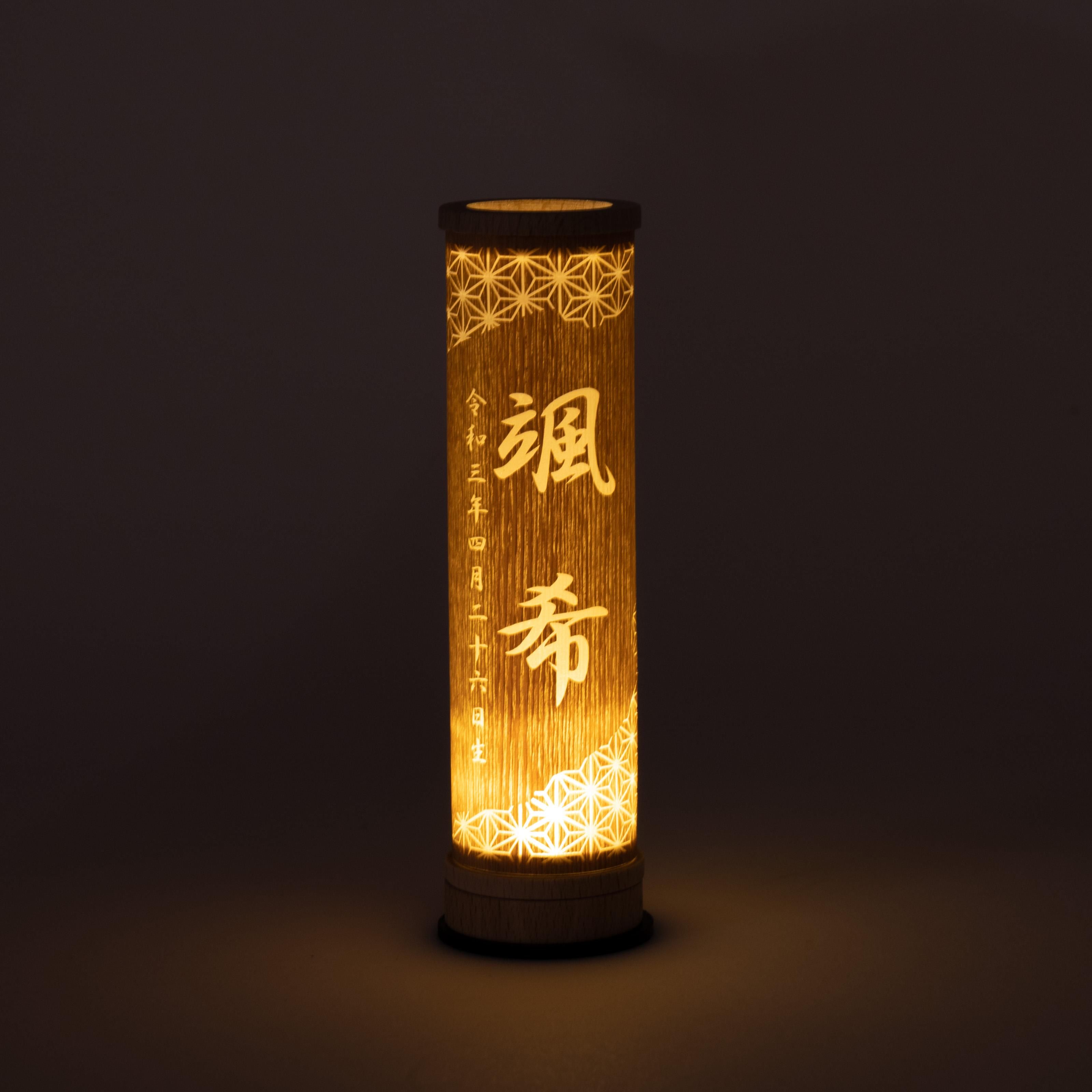 伝統工芸の技術を活かした国産手作りの行燈伝統工芸の技術を活かした国産手作りの行燈伝統工芸の技術を最大限に活かし1つ1つ丁寧に職人が手作りで仕上げています。商品のご注文へ収納方法とセット内容素材:桧・タモサイズ:14 × Φ4.5 cm注意事項<名入れに関する注意事項>・生年月日は和暦・漢数字となります。・日付の後には「生」が入ります。・環境依存文字はお入れする事ができません。・旧漢字使用の場合には充分お気をつけ下さい。<お客様にお願い>※材質により目の刻印の濃淡に差が生じますが、不良品ではございません。木製品である限り自然なこととご承知下さいませ。ご不明点がございましたら > お問い合わせページ からご相談ください。