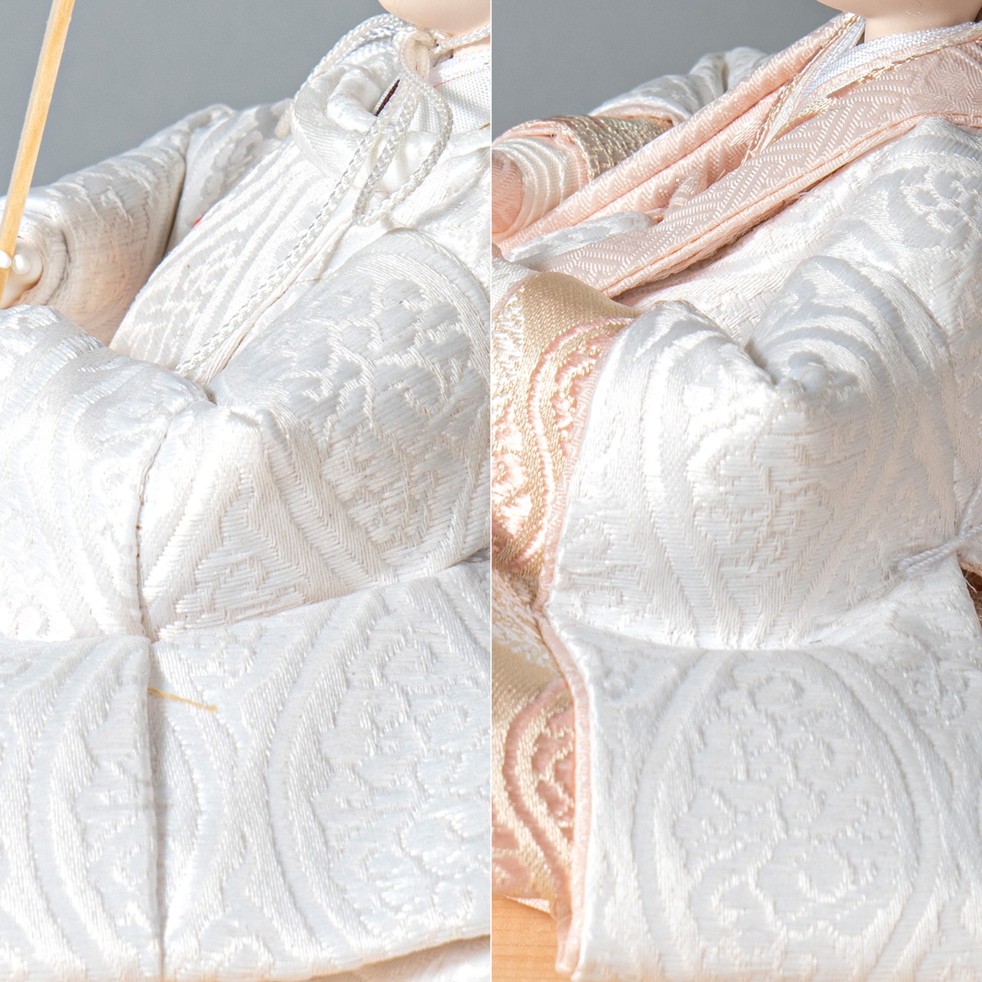 精巧な凛として美しい佇まいを天然木の優しいぬくもりが包み込む・・・まるで女の子の成長を温かく見守る家族の様に・・・そんなコンセプトから生まれた、親しみやすく、お子様と一緒に飾れる「ことの雛人形」です。コンパクトでちょうどいいサイズコンパクトでちょうどいいサイズ今どきのおうちに合わせたコンパクトなサイズに仕上げました。飾るスペースが狭くなりがちなマンションや子ども部屋にもぴったり。お部屋のイメージに調和するデザインお部屋のイメージに調和するデザイン天然木の素材を活かしたシンプルなデザインだから、お部屋の雰囲気にもピッタリ。お衣装へのこだわりお衣装へのこだわり柄は雲立涌柄といい、雲や蒸気が立ち昇る様で子供の運気上昇を願う縁起のいい文様です。手作りへのこだわり〜裂地(きれじ)の裁断手作りへのこだわり〜裂地(きれじ)の裁断和紙で衣裳の各種型紙を作り、へり部分にのみ糊をつけ、裂地裏面に貼り付けます。型紙に沿って裁断して衣裳部品を作っていきます。手作りへのこだわり〜縫製手作りへのこだわり〜縫製姫の十二単の唐衣(からぎぬ)・五衣(いつつぎぬ)・単衣(ひとえ)・裾、殿の着物・裾・中袖等、数多くの衣裳部品をミシン、または手縫いで細やかな部分まで縫い合わせ、折り込み仕上げていきます。手作りへのこだわり〜着付け・振付け手作りへのこだわり〜着付け・振付け仕上がった衣裳は両腕を後方に曲げて羽織らせるようにして着付けます。次にそれぞれの人形の形に振付けます。腕を曲げる角度や手の位置などで全体のバランスを取ります。手作りへのこだわり〜頭差し手作りへのこだわり〜頭差し頭さしは最終の人形検品を兼ねて行われます。包まれた顔紙を外し、汚れ等無いことを確認します。頭と衣紋の中心線が一直線になるように差し込みます。ことのお雛様ことのお雛様お雛様の顔は時代とともに人気のお顔があります。ことのお雛様のお顔は時代に左右されない普遍的なシンプルで可愛らしいお顔となっています。健やかな成長への願いを込めた 麻の葉文様健やかな成長への願いを込めた 麻の葉文様古来からの日本伝統の吉祥文様である麻の葉文様。麻の丈夫さ・成長の早さにあやかり、お子さまの健やかな成長への願いが込められています。お子さまの感性を育む天然木へのこだわりお子さまの感性を育む天然木へのこだわり素材には、タモ、ブナといった天然木を使用。お子さまへの一生に一度の贈り物だから、木都は自然素材の天然木にこだわり続けています。※ 生産時期により使用する素材が一部変更になる場合がございます。熟練の職人による確かな手仕事熟練の職人による確かな手仕事伝統工芸の技術を受け継ぐ日本国内の熟練の職人が、一つひとつ丁寧に手づくりしています。おしゃれなギフト包装でお届けしますおしゃれなギフト包装でお届けします和の雰囲気を感じさせる越前和紙のギフト用ラッピングでお届け。料金がわかるものもお入れしていないので、そのまま贈り物として利用できます。商品レビュー記入でもれなくもらえる天然木のミニ名前札プレゼント商品レビュー記入でもれなくもらえる天然木のミニ名前札プレゼントミニサイズのお名前札 (通常販売価格1,980円) をプレゼント♪商品到着後、商品レビューをご記入の上、商品と同梱のチラシ記載のQRコードから応募フォームへ必要事項をご入力ください。店舗よりレビュー特典を発送いたします。※ お名前札の生年月日の表記は和暦となります。(例:令和七年)商品のご注文へ収納方法とセット内容お内裏様・お雛様・屏風・収納箱・親王台・人形小道具・貝桶×2・花飾り×2屏風は収納箱の上に乗せてダンボール箱におしまい下さい。素材:ブナ重量:3,500g サイズ:W450mm × D300mm × H415mm梱包時:W490mm × D315mm × H215mm殿:約 W185mm × D165mm × H215mm姫:約 W220mm × D190mm × H125mm注意事項色合いなど実際のものと写真とでは多少の誤差が生じる場合がございます。また、手作りであり天然木を使用している為、多少の仕様の変化や風合いがひとつひとつ異なります。あらかじめご了承ください。部品には小さなものがございます。お子様がお口に入れないようにご注意ください。材質により木の刻印の濃淡に差が生じますが不良品ではございません。木製品である限り自然なこととご承知下さいませ。保管場所は変色やカビ、サビの原因になりますので湿気の少ない場所・直射日光の当たらない場所に保管してください。雄雛の正面にあります飾り帯のビニールは外さないでください。本商品に行燈は付属しておりません。別途お買い求めください。ご不明点がございましたら > お問い合わせページ からご相談ください。
