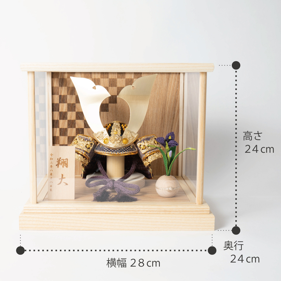 精巧な戦国兜の凛として強く美しい佇まいを天然木の優しいぬくもりが包み込む・・・まるで男の子の成長を温かく見守る家族の様に・・・そんなコンセプトから生まれた兜は、てづくり工房「木都」と甲冑工房「悠雅」のコラボレーションから生まれました。親しみやすく、お子様と一緒に飾れるKOTO×悠雅コラボ兜です。※ 細かい部品が含まれています。3歳未満のお子様は、保護者の方と一緒にお遊びください。選び抜いた素材と手間をかけた技法でつくる兜鉢選び抜いた素材と手間をかけた技法でつくる兜鉢KOTO×悠雅コラボ兜の兜鉢は、伝統的な本式の合せ鉢という技法でつくられています。本式の合せ鉢とは、戦国時代に頭部を守るために考案され、三角状の鉢部品を重ね合わせ、多数の星鋲をカシメる事で強度を高める技法です。選び抜いた素材と手間をかけた技法でつくる「庇」選び抜いた素材と手間をかけた技法でつくる「庇」兜の裏側にあたる庇は、甲州印伝革を使用し伝統的な技術で1つ1つ手作りで丁寧に作られています。選び抜いた素材と手間をかけた技法でつくる「小札」選び抜いた素材と手間をかけた技法でつくる「小札」小札は、細かい天然繊維である本物の絹糸を使用した正絹で結び合わせ繋げております。伝統的な兜をモダンに仕上げたシンプルなデザイン伝統的な兜をモダンに仕上げたシンプルなデザイン伝統的な製法で作られた兜に天然木の素材を活かしたシンプルなデザインの兜です。モダンでシンプルなデザインは、どんなお部屋の雰囲気にもピッタリ。コンパクトでちょうどいいサイズコンパクトでちょうどいいサイズ今どきのおうちに合わせたコンパクトなサイズに仕上げました。飾るスペースが狭くなりがちなマンションや子ども部屋にもぴったり。日本の伝統模様 市松日本の伝統模様 市松ケースの模様は市松と呼ばれています。四角形が途切れることなく並ぶ模様には、子孫繁栄や事業拡大などの意味が込められています。ケースでも手にとって欲しいこだわりの兜ケースでも手にとって欲しいこだわりの兜木都のケース飾りは、本物の素材や質感を感じながら親子で一緒に手に取って飾る体験をしてほしいから、あえて飾る手間を残しています。手間はかかりますが、伝統的な技法で一つひとつ手づくりしています。お子さまの感性を育む天然木へのこだわりお子さまの感性を育む天然木へのこだわり素材には、タモ、ブナといった天然木を使用。お子さまへの一生に一度の贈り物だから、木都は自然素材の天然木にこだわり続けています。※ 生産時期により使用する素材が一部変更になる場合がございます。熟練の職人による確かな手仕事熟練の職人による確かな手仕事伝統工芸の技術を受け継ぐ日本国内の熟練の職人が、一つひとつ丁寧に手づくりしています。おしゃれなギフト包装でお届けしますおしゃれなギフト包装でお届けします和の雰囲気を感じさせる越前和紙のギフト用ラッピングでお届け。料金がわかるものもお入れしていないので、そのまま贈り物として利用できます。商品レビュー記入でもれなくもらえる天然木のミニ名前札プレゼント商品レビュー記入でもれなくもらえる天然木のミニ名前札プレゼントミニサイズのお名前札 (通常販売価格1,980円) をプレゼント♪商品到着後、商品レビューをご記入の上、商品と同梱のチラシ記載のQRコードから応募フォームへ必要事項をご入力ください。店舗よりレビュー特典を発送いたします。※ お名前札の生年月日の表記は和暦となります。(例:令和七年)商品のご注文へ収納方法とセット内容兜・鍬形・芯木・菖蒲・ケース素材:タモ重量:1,890g (兜のみ 250g)サイズ:W280mm × D240mm × H250mm梱包時:W340mm × D280mm × H275mm兜のみ:約 W150mm × D110mm × H150mm収納方法鍬形は専用袋に入れ、兜は風呂敷に包みます。その他の部品は不織布に入れ収納してください。兜置きの下台とポールは組み立ててご利用ください。兜などを保管する箱は木のケースに入れて収納することが出来ます。注意事項甲冑について飾り付ける際に必ず手袋をご使用ください。錆や変色などの予防にもなります。本品の上には絶対に乗らないでください。本品または本品の部品は装飾品です。他の目的に使用しないで下さい。部品には小さなものがございます。お子様がお口に入れないようにご注意いください。木製品について色合いなど実際のものと写真とでは多少の誤差が生じる場合がございます。また、手作りであり天然木を使用している為、多少の仕様の変化や風合いがひとつひとつ異なります。あらかじめご了承ください。部品には小さなものがございます。お子様がお口に入れないようにご注意いください。菖蒲には針金が入っております。お好みで角度を調整して下さい。材質により刻印の濃淡に差が生じますが不良品ではございません。木製品である限り自然なこととご承知下さいませ。保管場所は変色やカビ、サビの原因になりますので湿気の少ない場