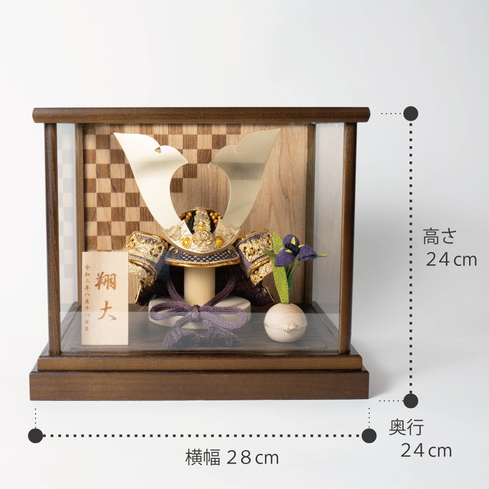 精巧な戦国兜の凛として強く美しい佇まいを天然木の優しいぬくもりが包み込む・・・まるで男の子の成長を温かく見守る家族の様に・・・そんなコンセプトから生まれた兜は、てづくり工房「木都」と甲冑工房「悠雅」のコラボレーションから生まれました。親しみやすく、お子様と一緒に飾れるKOTO×悠雅コラボ兜です。※ 細かい部品が含まれています。3歳未満のお子様は、保護者の方と一緒にお遊びください。選び抜いた素材と手間をかけた技法でつくる兜鉢選び抜いた素材と手間をかけた技法でつくる兜鉢KOTO×悠雅コラボ兜の兜鉢は、伝統的な本式の合せ鉢という技法でつくられています。本式の合せ鉢とは、戦国時代に頭部を守るために考案され、三角状の鉢部品を重ね合わせ、多数の星鋲をカシメる事で強度を高める技法です。選び抜いた素材と手間をかけた技法でつくる「庇」選び抜いた素材と手間をかけた技法でつくる「庇」兜の裏側にあたる庇は、甲州印伝革を使用し伝統的な技術で1つ1つ手作りで丁寧に作られています。選び抜いた素材と手間をかけた技法でつくる「小札」選び抜いた素材と手間をかけた技法でつくる「小札」小札は、細かい天然繊維である本物の絹糸を使用した正絹で結び合わせ繋げております。伝統的な兜をモダンに仕上げたシンプルなデザイン伝統的な兜をモダンに仕上げたシンプルなデザイン伝統的な製法で作られた兜に天然木の素材を活かしたシンプルなデザインの兜です。モダンでシンプルなデザインは、どんなお部屋の雰囲気にもピッタリ。コンパクトでちょうどいいサイズコンパクトでちょうどいいサイズ今どきのおうちに合わせたコンパクトなサイズに仕上げました。飾るスペースが狭くなりがちなマンションや子ども部屋にもぴったり。日本の伝統模様 市松日本の伝統模様 市松ケースの模様は市松と呼ばれています。四角形が途切れることなく並ぶ模様には、子孫繁栄や事業拡大などの意味が込められています。ケースでも手にとって欲しいこだわりの兜ケースでも手にとって欲しいこだわりの兜木都のケース飾りは、本物の素材や質感を感じながら親子で一緒に手に取って飾る体験をしてほしいから、あえて飾る手間を残しています。手間はかかりますが、伝統的な技法で一つひとつ手づくりしています。お子さまの感性を育む天然木へのこだわりお子さまの感性を育む天然木へのこだわり素材には、タモ、ブナといった天然木を使用。お子さまへの一生に一度の贈り物だから、木都は自然素材の天然木にこだわり続けています。※ 生産時期により使用する素材が一部変更になる場合がございます。熟練の職人による確かな手仕事熟練の職人による確かな手仕事伝統工芸の技術を受け継ぐ日本国内の熟練の職人が、一つひとつ丁寧に手づくりしています。おしゃれなギフト包装でお届けしますおしゃれなギフト包装でお届けします和の雰囲気を感じさせる越前和紙のギフト用ラッピングでお届け。料金がわかるものもお入れしていないので、そのまま贈り物として利用できます。商品レビュー記入でもれなくもらえる天然木のミニ名前札プレゼント商品レビュー記入でもれなくもらえる天然木のミニ名前札プレゼントミニサイズのお名前札 (通常販売価格1,980円) をプレゼント♪商品到着後、商品レビューをご記入の上、商品と同梱のチラシ記載のQRコードから応募フォームへ必要事項をご入力ください。店舗よりレビュー特典を発送いたします。※ お名前札の生年月日の表記は和暦となります。(例:令和七年)商品のご注文へ収納方法とセット内容兜・鍬形・芯木・菖蒲・ケース素材:タモ重量:1,890g (兜のみ 250g)サイズ:W280mm × D240mm × H250mm梱包時:W340mm × D280mm × H275mm兜のみ:約 W150mm × D110mm × H150mm収納方法鍬形は専用袋に入れ、兜は風呂敷に包みます。その他の部品は不織布に入れ収納してください。兜置きの下台とポールは組み立ててご利用ください。兜などを保管する箱は木のケースに入れて収納することが出来ます。注意事項甲冑について飾り付ける際に必ず手袋をご使用ください。錆や変色などの予防にもなります。本品の上には絶対に乗らないでください。本品または本品の部品は装飾品です。他の目的に使用しないで下さい。部品には小さなものがございます。お子様がお口に入れないようにご注意いください。木製品について色合いなど実際のものと写真とでは多少の誤差が生じる場合がございます。また、手作りであり天然木を使用している為、多少の仕様の変化や風合いがひとつひとつ異なります。あらかじめご了承ください。部品には小さなものがございます。お子様がお口に入れないようにご注意いください。菖蒲には針金が入っております。お好みで角度を調整して下さい。材質により刻印の濃淡に差が生じますが不良品ではございません。木製品である限り自然なこととご承知下さいませ。保管場所は変色やカビ、サビの原因になりますので湿気の少ない場