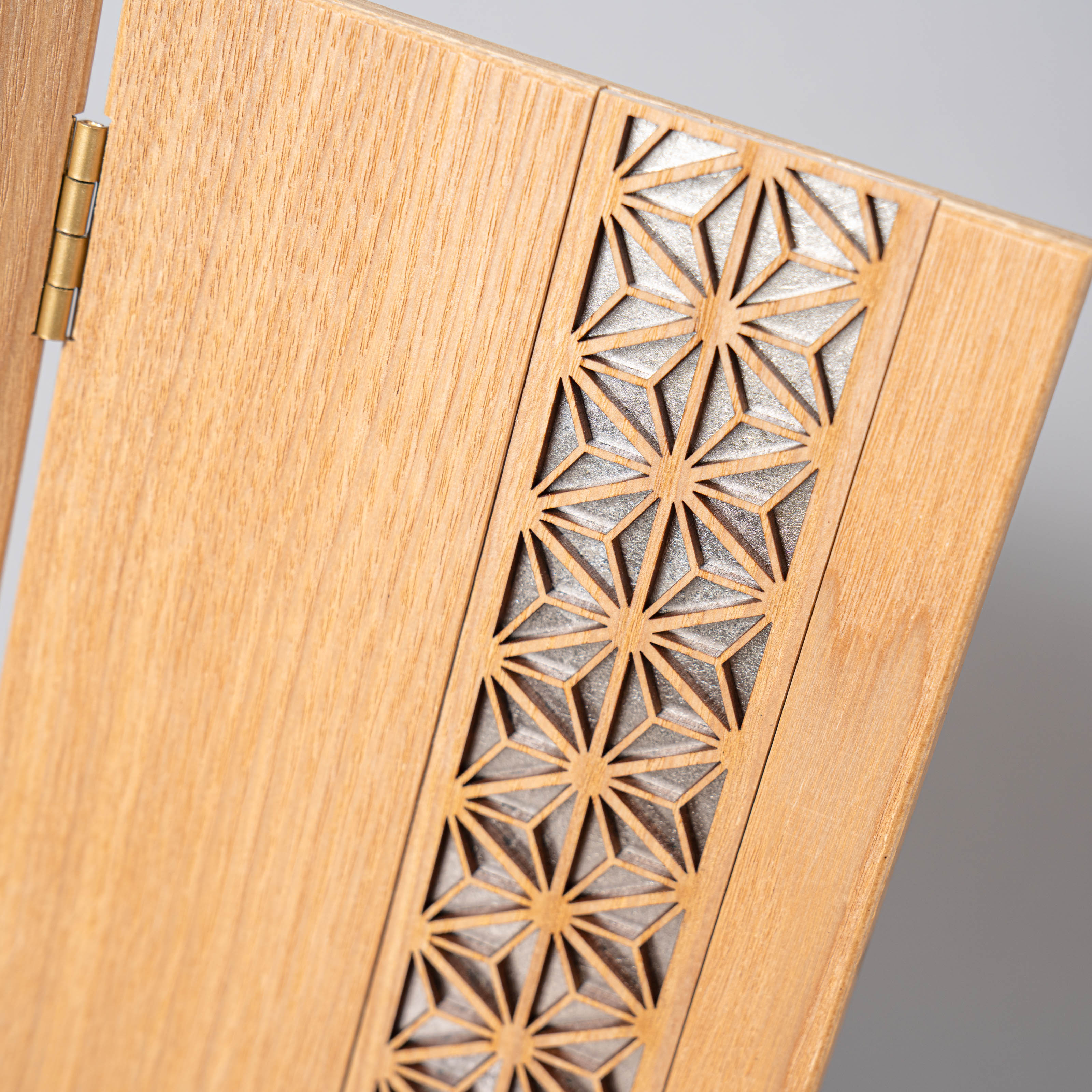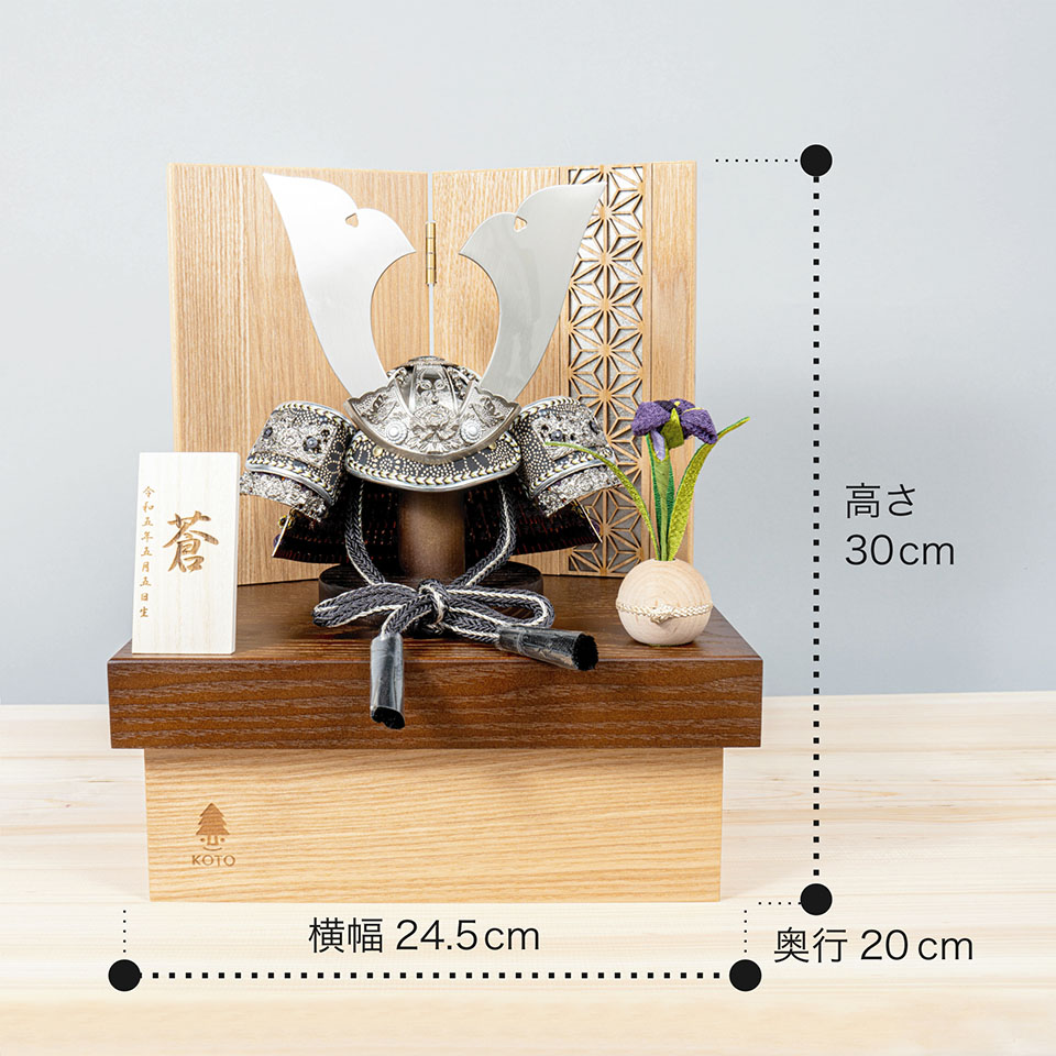 精巧な戦国兜の凛として強く美しい佇まいを天然木の優しいぬくもりが包み込む・・・まるで男の子の成長を温かく見守る家族の様に・・・そんなコンセプトから生まれた兜は、てづくり工房「木都」と甲冑工房「悠雅」のコラボレーションから生まれました。親しみやすく、お子様と一緒に飾れるKOTO×悠雅コラボ兜です。※ 細かい部品が含まれています。3歳未満のお子様は、保護者の方と一緒にお遊びください。選び抜いた素材と手間をかけた技法でつくる兜鉢選び抜いた素材と手間をかけた技法でつくる兜鉢KOTO×悠雅コラボ兜の兜鉢は、伝統的な本式の合せ鉢という技法でつくられています。本式の合せ鉢とは、戦国時代に頭部を守るために考案され、三角状の鉢部品を重ね合わせ、多数の星鋲をカシメる事で強度を高める技法です。選び抜いた素材と手間をかけた技法でつくる「庇」選び抜いた素材と手間をかけた技法でつくる「庇」兜の裏側にあたる庇は、甲州印伝革を使用し伝統的な技術で1つ1つ手作りで丁寧に作られています。選び抜いた素材と手間をかけた技法でつくる「小札」選び抜いた素材と手間をかけた技法でつくる「小札」小札は、細かい天然繊維である本物の絹糸を使用した正絹で結び合わせ繋げております。伝統的な兜をモダンに仕上げたシンプルなデザイン伝統的な兜をモダンに仕上げたシンプルなデザイン伝統的な製法で作られた兜に天然木の素材を活かしたシンプルなデザインの兜です。モダンでシンプルなデザインは、どんなお部屋の雰囲気にもピッタリ。コンパクトでちょうどいいサイズコンパクトでちょうどいいサイズ今どきのおうちに合わせたコンパクトなサイズに仕上げました。飾るスペースが狭くなりがちなマンションや子ども部屋にもぴったり。健やかな成長への願いを込めた麻の葉文様健やかな成長への願いを込めた麻の葉文様古来からの日本伝統の吉祥文様である麻の葉文様。麻の丈夫さ・成長の早さにあやかり、お子さまの健やかな成長への願いが込められています。お子さまの感性を育む天然木へのこだわりお子さまの感性を育む天然木へのこだわり素材には、タモ、ブナといった天然木を使用。お子さまへの一生に一度の贈り物だから、木都は自然素材の天然木にこだわり続けています。※ 生産時期により使用する素材が一部変更になる場合がございます。熟練の職人による確かな手仕事熟練の職人による確かな手仕事伝統工芸の技術を受け継ぐ日本国内の熟練の職人が、一つひとつ丁寧に手づくりしています。おしゃれなギフト包装でお届けしますおしゃれなギフト包装でお届けします和の雰囲気を感じさせる越前和紙のギフト用ラッピングでお届け。料金がわかるものもお入れしていないので、そのまま贈り物として利用できます。商品レビュー記入でもれなくもらえる天然木のミニ名前札プレゼント商品レビュー記入でもれなくもらえる天然木のミニ名前札プレゼントミニサイズのお名前札 (通常販売価格1,980円) をプレゼント♪商品到着後、商品レビューをご記入の上、商品と同梱のチラシ記載のQRコードから応募フォームへ必要事項をご入力ください。店舗よりレビュー特典を発送いたします。※ お名前札の生年月日の表記は和暦となります。(例:令和七年)商品のご注文へ収納方法とセット内容兜・鍬形・芯木・菖蒲・屏風・収納箱屏風は収納箱の上に乗せてダンボール箱におしまい下さい。素材:タモ重量:1,840g (兜のみ 270g)サイズ:W245mm × D200mm × H300mm梱包時:W290mm × D220mm × H145mm兜のみ:約 W150mm × D110mm × H150mm収納方法鍬形は専用袋に入れ、兜は風呂敷に包みます。その他の部品は不織布に入れ収納してください。兜置きの下台とポールは組み立ててご利用ください。注意事項甲冑について飾り付ける際に必ず手袋をご使用ください。錆や変色などの予防にもなります。本品の上には絶対に乗らないでください。本品または本品の部品は装飾品です。他の目的に使用しないで下さい。部品には小さなものがございます。お子様がお口に入れないようにご注意いください。木製品について色合いなど実際のものと写真とでは多少の誤差が生じる場合がございます。また、手作りであり天然木を使用している為、多少の仕様の変化や風合いがひとつひとつ異なります。あらかじめご了承ください。部品には小さなものがございます。お子様がお口に入れないようにご注意いください。菖蒲には針金が入っております。お好みで角度を調整して下さい。材質により刻印の濃淡に差が生じますが不良品ではございません。木製品である限り自然なこととご承知下さいませ。保管場所は変色やカビ、サビの原因になりますので湿気の少ない場所・直射日光の当たらない場所に保管してください。ご不明点がございましたら > お問い合わせページ からご相談ください。