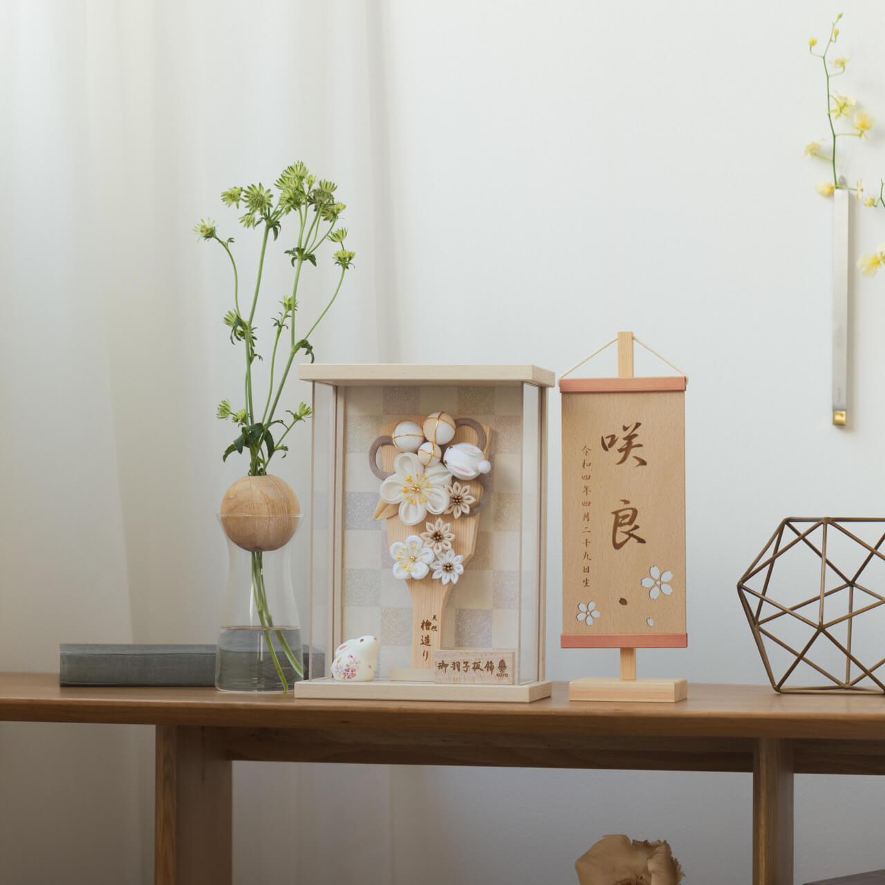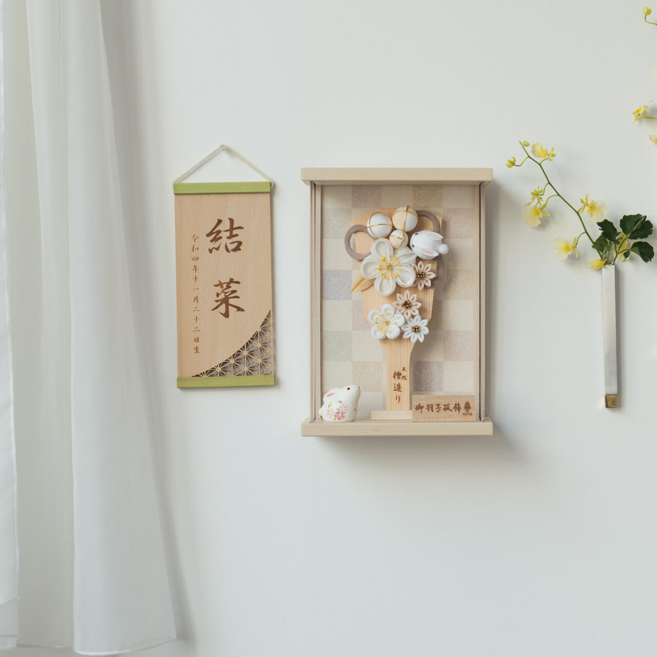 女の子の無病息災のお守りとして飾られる羽子板。熟練の職人が、伝統工芸の技術と天然木の素材を活かし、心を込めて一つひとつ丁寧につくりました。コンパクトでちょうどいいサイズコンパクトでちょうどいいサイズ今どきのおうちに合わせたコンパクトなサイズに仕上げました。飾るスペースが狭くなりがちなマンションや子ども部屋にもぴったり。インテリアに溶け込むナチュラルなデザインインテリアに溶け込むナチュラルなデザイン天然木の素材を活かしたシンプルなデザインだから、お部屋の雰囲気にもピッタリ。平置きと壁掛けの2通りで飾れる平置きと壁掛けの2通りで飾れるケースの背面には紐が付属しております。そのまま置いても、壁に掛けても飾れる2WAY仕様です。取り外せる前面アクリル板取り外せる前面アクリル板お客さまの声をもとにケース前面のアクリル板を取り外し可能なデザインにリニューアル。天然木ならではのぬくもりがより伝わるようになりました。日本の伝統工芸 つまみ細工日本の伝統工芸 つまみ細工江戸時代から伝わる日本の伝統工芸で、小さな布をつまんで様々なモチーフの形を作り、装飾品として仕上げる技法です。子供の健やかな成長を願う うさぎ子供の健やかな成長を願う うさぎ力強く跳ねるうさぎは、邪気を払い、幸福を運ぶとも言われます。コロンとしたシルエットが愛らしいお子様に人気のデザインです。お子さまの感性を育む天然木へのこだわりお子さまの感性を育む天然木へのこだわり素材には、富士山麓の無垢のヒノキやタモ、ブナといった天然木を使用。お子さまへの一生に一度の贈り物だから、木都は自然素材の天然木にこだわり続けています。※ 生産時期により使用する素材が一部変更になる場合がございます。天然木が織りなす唯一無二の風合い天然木が織りなす唯一無二の風合い様々な種類の木材を組み合わせることで、それぞれの良さを活かした羽子板に仕上げました。タモ均一で美しい木目が特徴。弾力性と強度を持ち合わせており、耐久性があります。ブナ耐久性が高く長寿のため、家具によく用いられます。明るい色調でインテリアによく馴染みます。桧ひのき特有の香りにはリラックス効果や抗菌、防虫作用があります。湿気にも強く、耐久性に優れています。桐優れた抗菌・防腐効果をもつ成分を含み、高級家具に多く用いられています。上品さのある柔らかな光沢が特徴。熟練の職人による確かな手仕事熟練の職人による確かな手仕事伝統工芸の技術を受け継ぐ日本国内の熟練の職人が、一つひとつ丁寧に手づくりしています。おしゃれなギフト包装でお届けしますおしゃれなギフト包装でお届けします和の雰囲気を感じさせる越前和紙のギフト用ラッピングでお届け。料金がわかるものもお入れしていないので、そのまま贈り物として利用できます。収納方法とセット内容羽子板素材:桧重量:660gサイズ:W180mm × D90mm × H260mm梱包時:W195mm × D100mm × H280mm※ 本商品に名前旗は付属しておりません。別途お買い求めください。注意事項色合いなど実際のものと写真とでは多少の誤差が生じる場合がございます。また、手作りであり天然木を使用している為、多少の仕様の変化や風合いがひとつひとつ異なります。あらかじめご了承ください。材質により木の刻印の濃淡に差が生じますが不良品ではございません。木製品である限り自然なこととご承知下さいませ。保管場所は変色やカビ、サビの原因になりますので湿気の少ない場所・直射日光の当たらない場所に保管してください。本商品に名前旗は付属しておりません。別途お買い求めください。ご不明点がございましたら > お問い合わせページ からご相談ください。 型番 0111 ことの羽子板 うさぎ BEケース ¥28,600税込 送料無料(一部離島を除く) 行燈別売 ¥11,000 あわせて購入 名前旗 雛人形や五月人形とご一緒に コンパクトサイズの雛人形や五月人形と一緒に飾るのにぴったりな名前旗です。5つのカラーと3種類のデザインをお好みでお選びいただけます。 商品情報へ 行燈付き商品の場合は行燈に名入れいたします。ご注文の際は備考欄にお名前・フリガナ・生年月日をご記入ください。空欄の場合は柄のみでお作りさせて頂きます。 個 カートに追加 特定商取引法に基づく表記(返品等) ゆきうさぎ 30代 女性 2025/12/03 13:51:51 理想の羽子板! 娘のために羽子板と購入しようと探していたところ、こちらの商品のうさぎが可愛くて一目惚れしました。コンパクトで温かみのある優しい色なので部屋に飾りやすいです。ケース入りなので保管やお手入れもしやすくて助かります。素敵な羽子板をありがとうございました。長く大切にさせていただきます。 スイのジィジ 50代 男性 2025/12/01 08:09:54 孫娘が喜んでくれるのが一番! 私の居住する地域には羽子板を贈る風習は無かったのですが、それには関係なく孫娘へのギフトにはとても良いお品だと思いました。 県内ですが距離の離れた地域に住んでいる