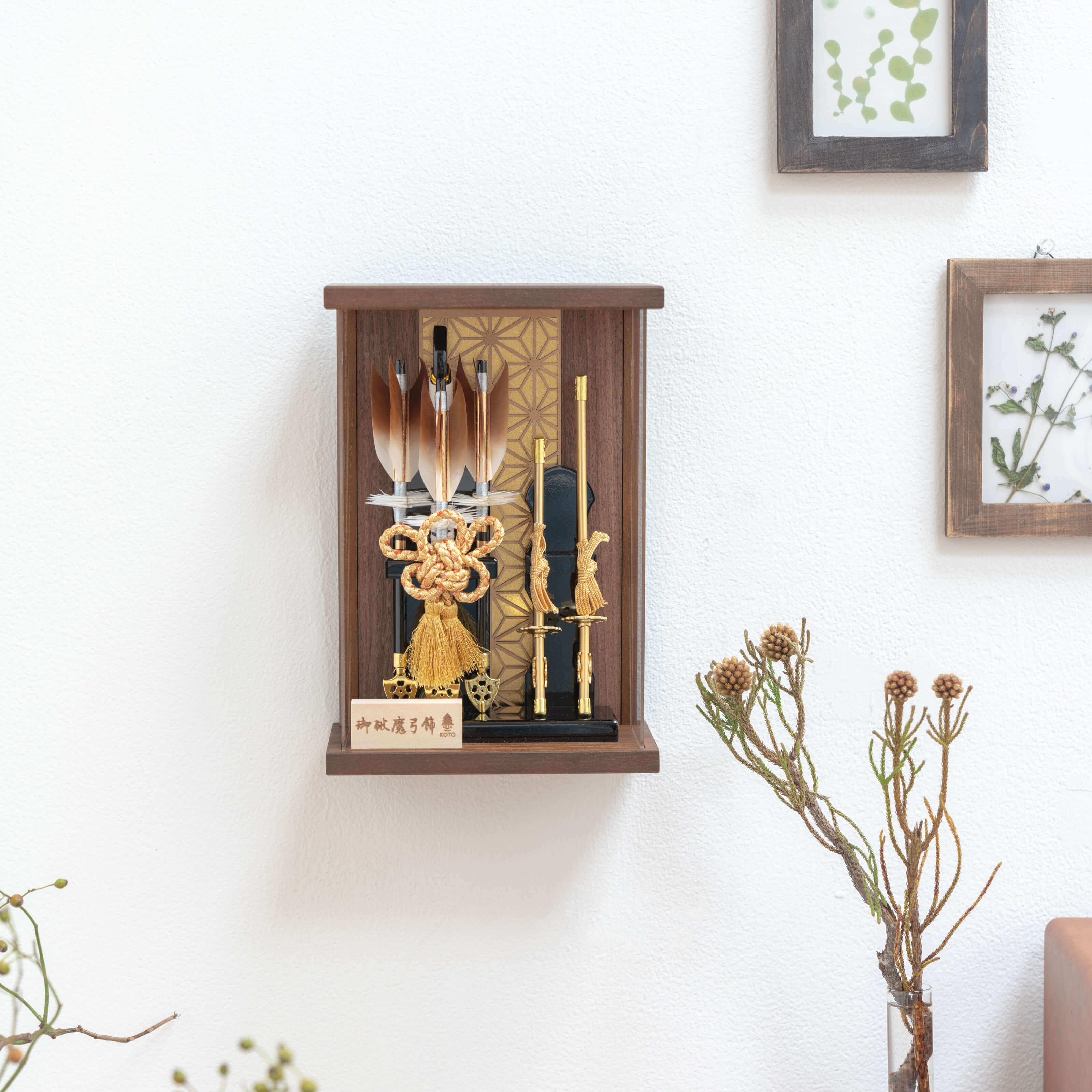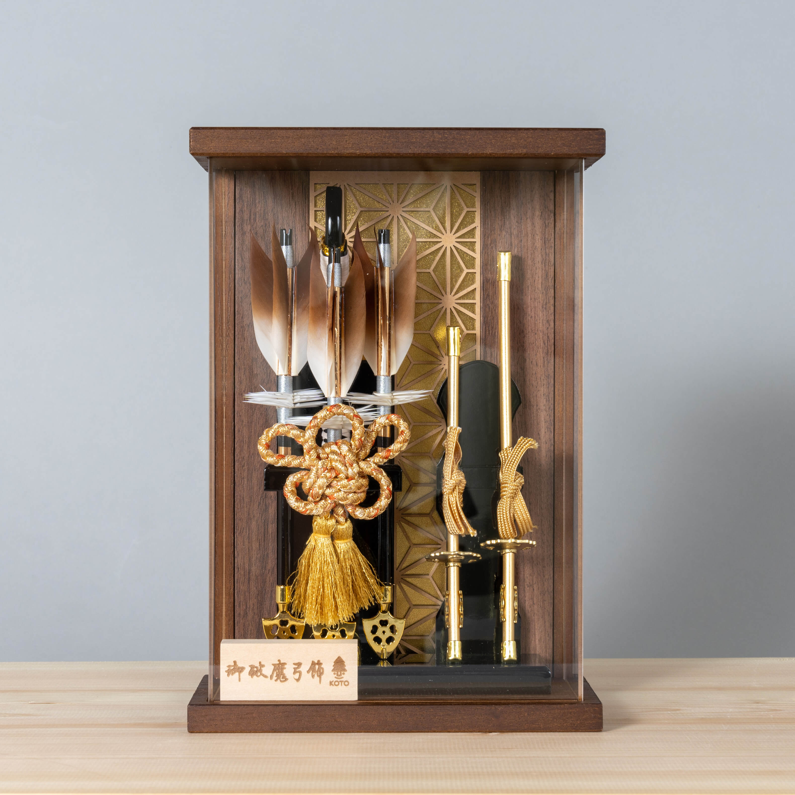 男の子の成長を願って破魔弓には、矢を弓で「射る」という特性から、チャンスを射止めることにご利益があると言われています。四本の矢は四神 (東の青龍・西の白虎・南の朱雀・北の玄武) を表しており、東西南北からの厄災に備えるという意味が込められています。