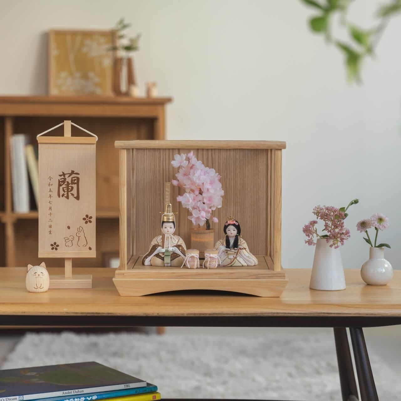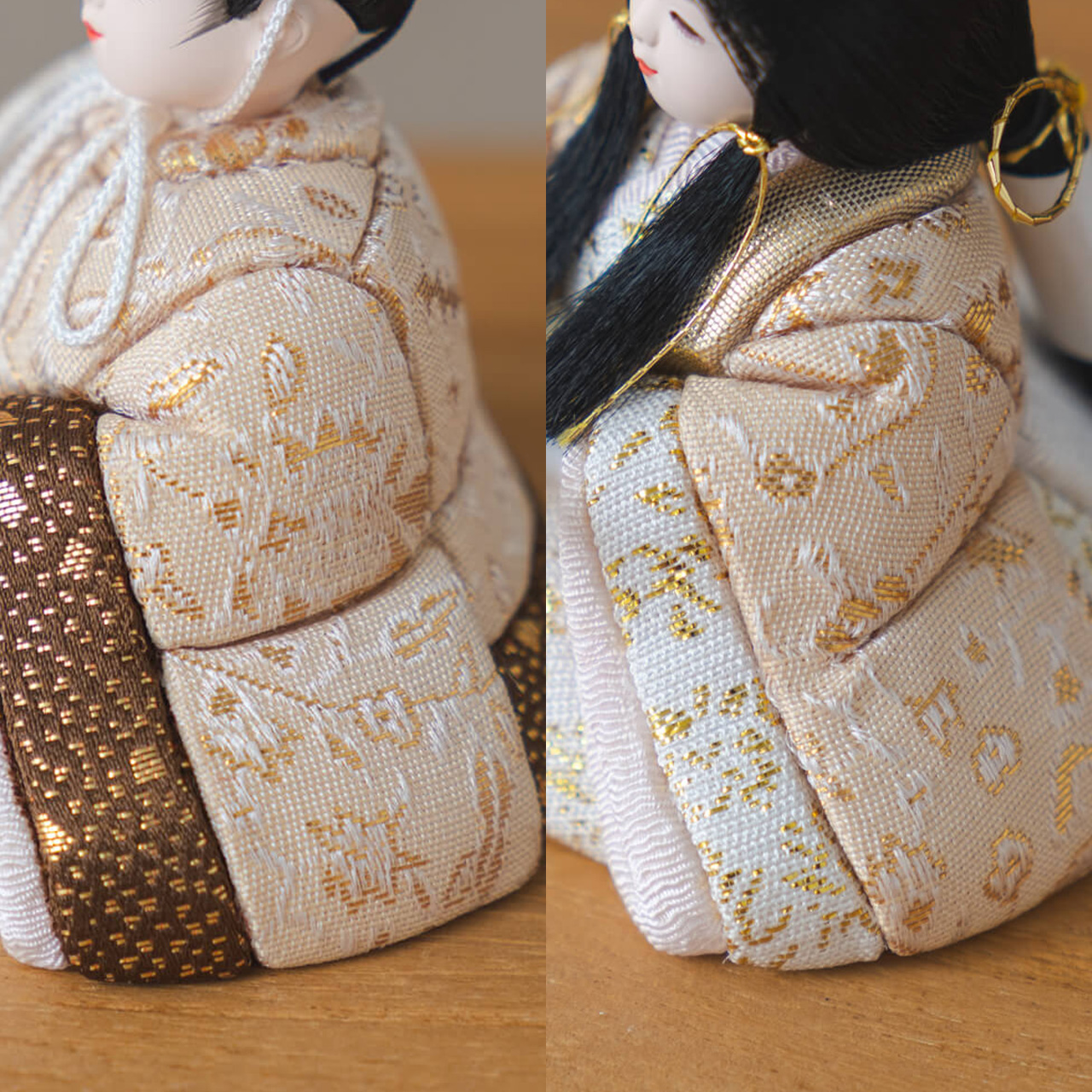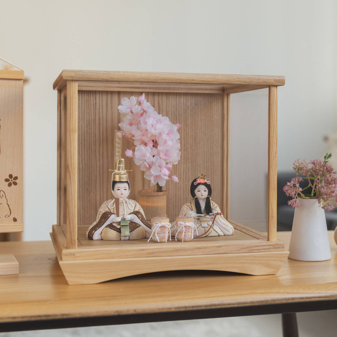 精巧な凛として美しい佇まいを天然木の優しいぬくもりが包み込む・・・まるで女の子の成長を温かく見守る家族の様に・・・そんなコンセプトから生まれた、親しみやすく、お子様と一緒に飾れる「ことの木目込ひな」です。コンパクトでちょうどいいサイズコンパクトでちょうどいいサイズ今どきのおうちに合わせたコンパクトなサイズに仕上げました。飾るスペースが狭くなりがちなマンションや子ども部屋にもぴったり。金箔が施されたこだわりの衣装金箔が施されたこだわりの衣装人形の衣装は細い溝にきれいに入るように、薄地ながらしっかりとした布を使用しながらも、色合いや和紙の上に金箔を施した高価な布地が使用されています。お部屋のイメージに調和するデザインお部屋のイメージに調和するデザイン天然木の素材を活かしたシンプルなデザインだから、お部屋の雰囲気にもピッタリ。手作りへのこだわり 〜筋彫り〜手作りへのこだわり 〜筋彫り〜胡粉が乾いたら、布を木目込んでいくための溝作りの作業を『筋彫り』といいます。筋彫り (すじぼり) は人形の仕上がりの良し悪しに影響するとても重要な作業のため、彫刻刀などを使って一定の幅と深さになるように丁寧に仕上げます。手作りへのこだわり 〜木目込み〜手作りへのこだわり 〜木目込み〜筋彫りしたところに練った寒梅粉 (かんばいこ) を入れ、型紙に合わせて切った布地を目打ちを使って押し込んでいく作業を『木目込み』といいます。〜職人さんからの一言〜〜職人さんからの一言〜かま詰めや胴体の乾燥、胡粉作り、胡粉塗り、寒梅粉に至るまで全てその時の気温や湿度に影響されるので熟練された技術と判断力が必要となります。また、職人の手の中にいる時間が長い分、お人形に対する想いが込められます。ケース飾りケース飾り桜には「優美」「純潔」、また春に咲くことから「物事の始まり」という意味があります。お殿様とお姫様が「桜の下で未来を誓う」そんなイメージから出来上がりました。お子さまの感性を育む天然木へのこだわりお子さまの感性を育む天然木へのこだわり素材には、タモ、ブナといった天然木を使用。お子さまへの一生に一度の贈り物だから、木都は自然素材の天然木にこだわり続けています。※ 生産時期により使用する素材が一部変更になる場合がございます。熟練の職人による確かな手仕事熟練の職人による確かな手仕事伝統工芸の技術を受け継ぐ日本国内の熟練の職人が、一つひとつ丁寧に手づくりしています。おしゃれなギフト包装でお届けしますおしゃれなギフト包装でお届けします和の雰囲気を感じさせる越前和紙のギフト用ラッピングでお届け。料金がわかるものもお入れしていないので、そのまま贈り物として利用できます。商品レビュー記入でもれなくもらえる天然木のミニ名前札プレゼント商品レビュー記入でもれなくもらえる天然木のミニ名前札プレゼントミニサイズのお名前札 (通常販売価格1,980円) をプレゼント♪商品到着後、商品レビューをご記入の上、商品と同梱のチラシ記載のQRコードから応募フォームへ必要事項をご入力ください。店舗よりレビュー特典を発送いたします。※ お名前札の生年月日の表記は和暦となります。(例:令和七年)商品のご注文へ収納方法とセット内容お内裏様・お雛様・ケース・人形小道具・貝桶×2・桜飾り素材:タモ重量:1,520g サイズ:W275mm × D240mm × H250mm梱包時:W330mm × D280mm × H270mm殿:約 W90mm × D82mm × H128mm姫:約 W98mm × D85mm × H85mm注意事項色合いなど実際のものと写真とでは多少の誤差が生じる場合がございます。また、手作りであり天然木を使用している為、多少の仕様の変化や風合いがひとつひとつ異なります。あらかじめご了承ください。部品には小さなものがございます。お子様がお口に入れないようにご注意ください。材質により木の刻印の濃淡に差が生じますが不良品ではございません。木製品である限り自然なこととご承知下さいませ。保管場所は変色やカビ、サビの原因になりますので湿気の少ない場所・直射日光の当たらない場所に保管してください。本商品に行燈は付属しておりません。別途お買い求めください。ご不明点がございましたら > お問い合わせページ からご相談ください。