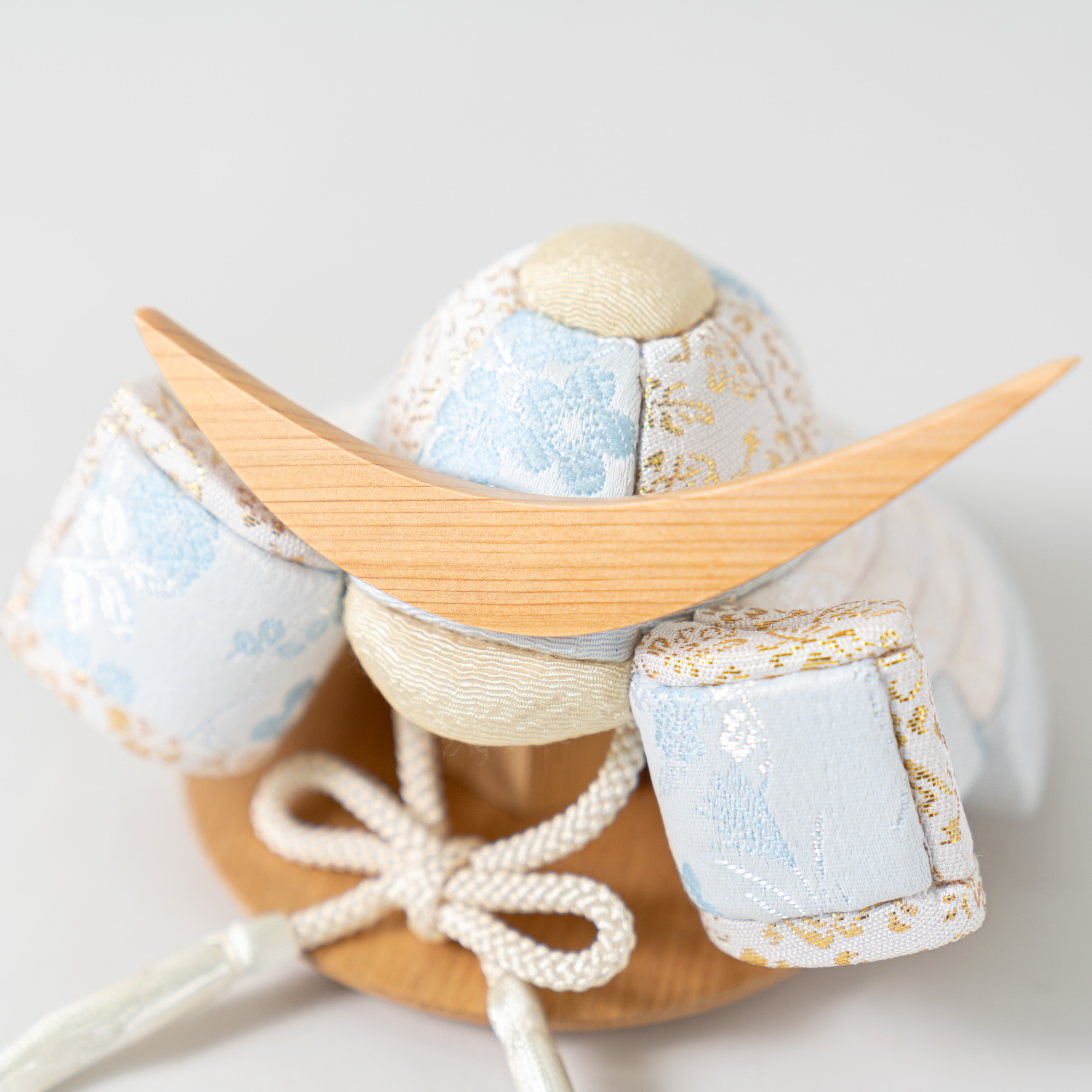 てづくり工房「木都」の職人が、伝統工芸の技術と天然木の素材を活かし、真心込めて1つ1つ丁寧につくりました。親しみやすく、お子様と一緒に飾れる 「ことの木目込かぶと」です。