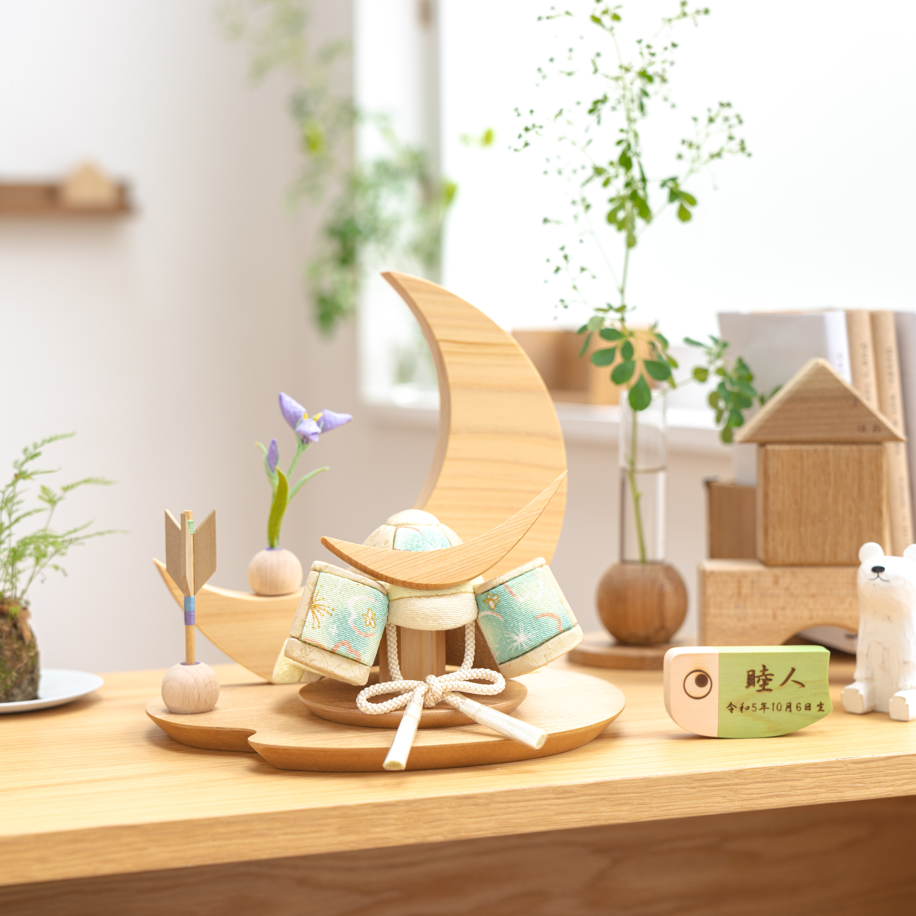 てづくり工房「木都」の職人が、伝統工芸の技術と天然木の素材を活かし、真心込めて1つ1つ丁寧につくりました。親しみやすく、お子様と一緒に飾れる 「ことの木目込かぶと」です。