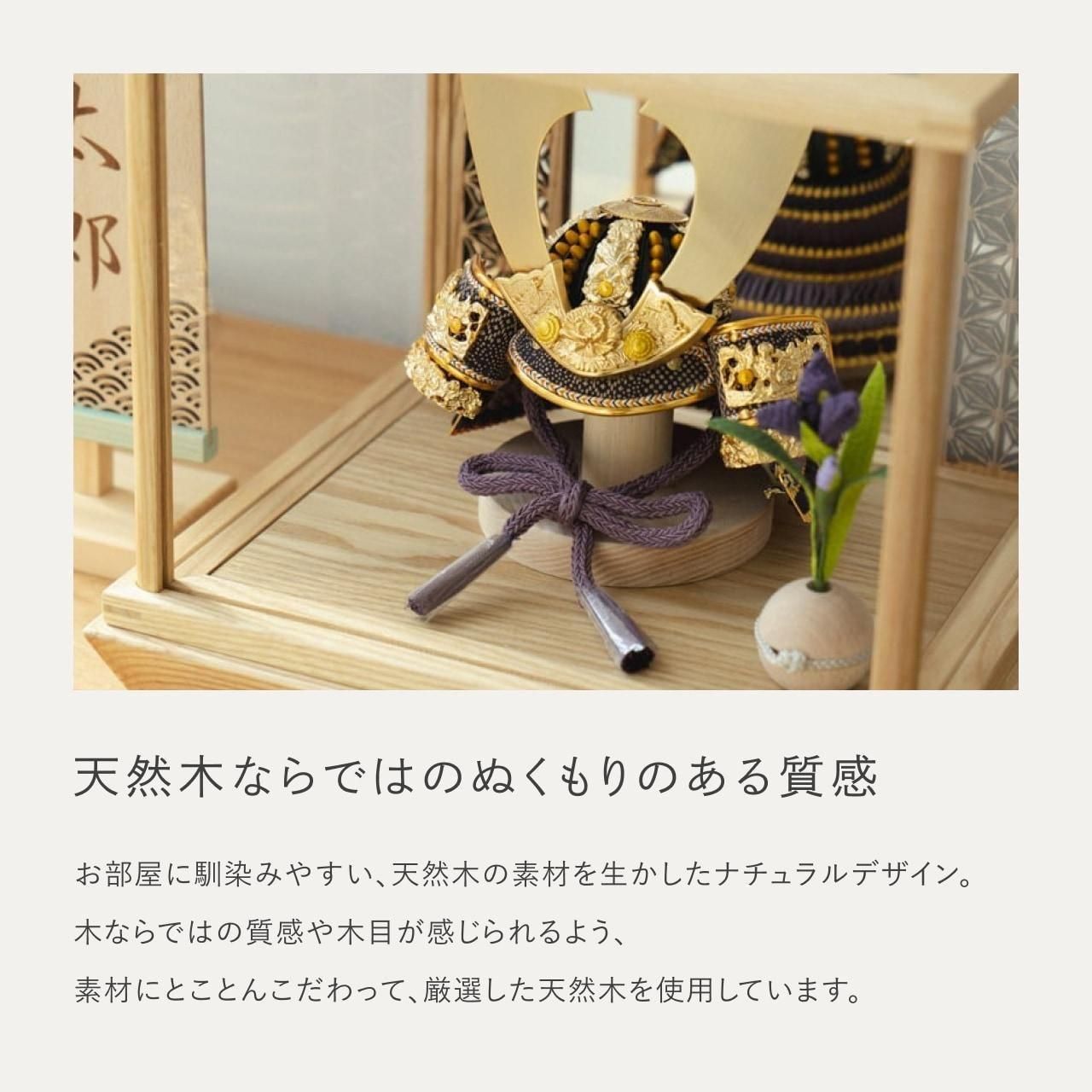 精巧な戦国兜の凛として強く美しい佇まいを天然木の優しいぬくもりが包み込む・・・まるで男の子の成長を温かく見守る家族の様に・・・そんなコンセプトから生まれた兜は、てづくり工房「木都」と甲冑工房「悠雅」のコラボレーションから生まれました。親しみやすく、お子様と一緒に飾れるKOTO×悠雅コラボ兜です。※ 細かい部品が含まれています。3歳未満のお子様は、保護者の方と一緒にお遊びください。選び抜いた素材と手間をかけた技法でつくる兜鉢選び抜いた素材と手間をかけた技法でつくる兜鉢KOTO×悠雅コラボ兜の兜鉢は、伝統的な本式の合せ鉢という技法でつくられています。本式の合せ鉢とは、戦国時代に頭部を守るために考案され、三角状の鉢部品を重ね合わせ、多数の星鋲をカシメる事で強度を高める技法です。選び抜いた素材と手間をかけた技法でつくる「庇」選び抜いた素材と手間をかけた技法でつくる「庇」兜の裏側にあたる庇は、甲州印伝革を使用し伝統的な技術で1つ1つ手作りで丁寧に作られています。選び抜いた素材と手間をかけた技法でつくる「小札」選び抜いた素材と手間をかけた技法でつくる「小札」小札は、細かい天然繊維である本物の絹糸を使用した正絹で結び合わせ繋げております。伝統的な兜をモダンに仕上げたシンプルなデザイン伝統的な兜をモダンに仕上げたシンプルなデザイン伝統的な製法で作られた兜に天然木の素材を活かしたシンプルなデザインの兜です。モダンでシンプルなデザインは、どんなお部屋の雰囲気にもピッタリ。コンパクトでちょうどいいサイズコンパクトでちょうどいいサイズ今どきのおうちに合わせたコンパクトなサイズに仕上げました。飾るスペースが狭くなりがちなマンションや子ども部屋にもぴったり。健やかな成長への願いを込めた麻の葉文様健やかな成長への願いを込めた麻の葉文様古来からの日本伝統の吉祥文様である麻の葉文様。麻の丈夫さ・成長の早さにあやかり、お子さまの健やかな成長への願いが込められています。ケースでも手にとって欲しいこだわりの兜ケースでも手にとって欲しいこだわりの兜木都のケース飾りは、本物の素材や質感を感じながら親子で一緒に手に取って飾る体験をしてほしいから、あえて飾る手間を残しています。手間はかかりますが、伝統的な技法で一つひとつ手づくりしています。お子さまの感性を育む天然木へのこだわりお子さまの感性を育む天然木へのこだわり素材には、タモ、ブナといった天然木を使用。お子さまへの一生に一度の贈り物だから、木都は自然素材の天然木にこだわり続けています。※ 生産時期により使用する素材が一部変更になる場合がございます。熟練の職人による確かな手仕事熟練の職人による確かな手仕事伝統工芸の技術を受け継ぐ日本国内の熟練の職人が、一つひとつ丁寧に手づくりしています。おしゃれなギフト包装でお届けしますおしゃれなギフト包装でお届けします和の雰囲気を感じさせる越前和紙のギフト用ラッピングでお届け。料金がわかるものもお入れしていないので、そのまま贈り物として利用できます。商品レビュー記入でもれなくもらえる天然木のミニ名前札プレゼント商品レビュー記入でもれなくもらえる天然木のミニ名前札プレゼントミニサイズのお名前札 (通常販売価格1,980円) をプレゼント♪商品到着後、商品レビューをご記入の上、商品と同梱のチラシ記載のQRコードから応募フォームへ必要事項をご入力ください。店舗よりレビュー特典を発送いたします。※ お名前札の生年月日の表記は和暦となります。(例:令和七年)商品のご注文へ収納方法とセット内容兜・鍬形・芯木・菖蒲・ケース素材:タモ重量:2,170g (兜のみ 250g)サイズ:W280mm × D240mm × H250mm梱包時:W340mm × D280mm × H275mm兜のみ:約 W150mm × D110mm × H150mm収納方法鍬形は専用袋に入れ、兜は風呂敷に包みます。その他の部品は不織布に入れ収納してください。兜置きの下台とポールは組み立ててご利用ください。兜などを保管する箱は木のケースに入れて収納することが出来ます。注意事項甲冑について飾り付ける際に必ず手袋をご使用ください。錆や変色などの予防にもなります。本品の上には絶対に乗らないでください。本品または本品の部品は装飾品です。他の目的に使用しないで下さい。部品には小さなものがございます。お子様がお口に入れないようにご注意いください。木製品について色合いなど実際のものと写真とでは多少の誤差が生じる場合がございます。また、手作りであり天然木を使用している為、多少の仕様の変化や風合いがひとつひとつ異なります。あらかじめご了承ください。部品には小さなものがございます。お子様がお口に入れないようにご注意いください。菖蒲には針金が入っております。お好みで角度を調整して下さい。材質により刻印の濃淡に差が生じますが不良品ではございません。木製品である限り自然なこととご承知下さいませ。保管場所は変