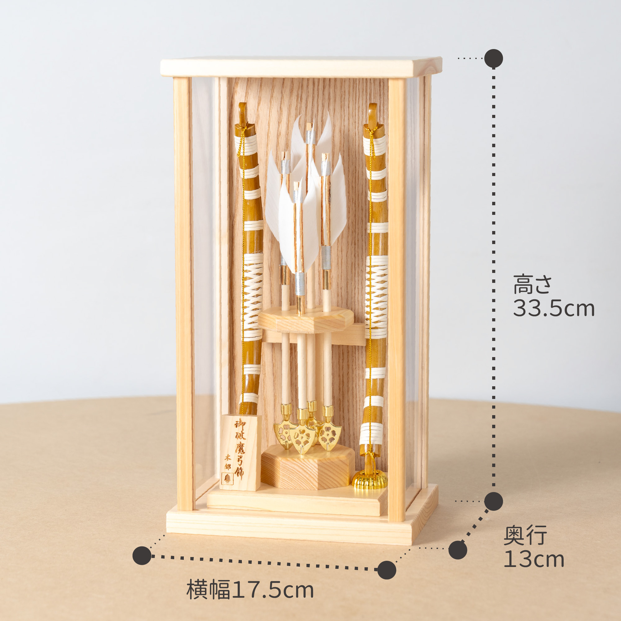 破魔弓は、魔よけ、厄払いのお守りです。男の子の元気な成長を願いお正月の縁起の祝い物となっています。古来からの行事であった新春の年占いや厄払いがその始まりです。男の子が弓矢で的を射て年占いをしたのがのちに破魔弓となりました。そんな破魔弓をてづくり工房「木都」の職人が、伝統工芸の技術と天然木の素材を活かし、真心込めて1つ1つ丁寧につくりました。コンパクトでちょうどいいサイズコンパクトでちょうどいいサイズ今どきのおうちに合わせたコンパクトなサイズに仕上げました。飾るスペースが狭くなりがちなマンションや子ども部屋にもぴったり。お部屋のイメージに調和するデザインお部屋のイメージに調和するデザイン天然木の素材を活かしたシンプルなデザインだから、お部屋の雰囲気にもピッタリ。新しくなったケース新しくなったケースお客様の声をもとにケース前面のアクリル板を取り外し可能なデザインにリニューアルしました。天然木の素材ならではの温もりをより深く感じることができます。男の子の成長を願って男の子の成長を願って破魔弓には、矢を弓で「射る」という特性から、チャンスを射止めることにご利益があると言われています。四本の矢は四神 (東の青龍・西の白虎・南の朱雀・北の玄武) を表しており、東西南北からの厄災に備えるという意味が込められています。日本の伝統工芸 天然羽根日本の伝統工芸 天然羽根ことの破魔弓には伝統的な天然羽根が使用されています。天然羽根は軽くて、しなやかな素材のため古くから高価な伝統工芸品の素材として重宝されています。お子さまの感性を育む天然木へのこだわりお子さまの感性を育む天然木へのこだわり素材には、タモ、竹といった天然木を使用。お子さまへの一生に一度の贈り物だから、木都は自然素材の天然木にこだわり続けています。※ 生産時期により使用する素材が一部変更になる場合がございます。天然木が織りなす唯一無二の風合い天然木が織りなす唯一無二の風合い様々な種類の木材を組み合わせることで、それぞれの良さを活かした破魔弓に仕上げました。タモ均一で美しい木目が特徴。弾力性と強度を持ち合わせており、耐久性があります。桧日本の伝統的な最高級木材として知られる桧。特有の香りにはリラックス効果や抗菌、防虫作用があります。 湿気にも強く、耐久性に優れています。竹軽量でありながら非常に高い強度を持っています。表面は滑らかで光沢があり、自然な美しさを放ちます。まゆみ硬さとしなやかさを持ち合わせ、弓の素材として使われます。均一で細かい木目の美しさが特徴です。熟練の職人による確かな手仕事熟練の職人による確かな手仕事伝統工芸の技術を受け継ぐ日本国内の熟練の職人が、一つひとつ丁寧に手づくりしています。おしゃれなギフト包装でお届けしますおしゃれなギフト包装でお届けします和の雰囲気を感じさせる越前和紙のギフト用ラッピングでお届け。料金がわかるものもお入れしていないので、そのまま贈り物として利用できます。収納方法とセット内容破魔弓素材:タモ・竹・ひのき重量:880g サイズ:W175mm × D130mm × H335mm梱包時:W220mm × D140mm × H360mm※ 本商品に名前旗は付属しておりません。別途お買い求めください。注意事項色合いなど実際のものと写真とでは多少の誤差が生じる場合がございます。また、手作りであり天然木を使用している為、多少の仕様の変化や風合いがひとつひとつ異なります。あらかじめご了承ください。材質により木の刻印の濃淡に差が生じますが不良品ではございません。木製品である限り自然なこととご承知下さいませ。保管場所は変色やカビ、サビの原因になりますので湿気の少ない場所・直射日光の当たらない場所に保管してください。本商品に名前旗は付属しておりません。別途お買い求めください。ご不明点がございましたら > お問い合わせページ からご相談ください。 型番 0207 ことの破魔弓 ひのき よう ¥29,800税込 送料無料(一部離島を除く) この商品を購入するにはパスワードを入力してください 行燈別売 ¥11,000 あわせて購入 名前旗 雛人形や五月人形とご一緒に コンパクトサイズの雛人形や五月人形と一緒に飾るのにぴったりな名前旗です。5つのカラーと3種類のデザインをお好みでお選びいただけます。 商品情報へ 行燈付き商品の場合は行燈に名入れいたします。ご注文の際は備考欄にお名前・フリガナ・生年月日をご記入ください。空欄の場合は柄のみでお作りさせて頂きます。 sold out 特定商取引法に基づく表記(返品等) とまと 20代 女性 2025/12/06 23:37:35 この度はありがとうございました! 破魔弓を購入させていただきました。 早速飾っています。ナチュラルな質感と精巧さに感動しました!サイズ感もちょうどよく毎年飾るのが楽しみです。 kachou 30代 女性 2025/12/02 09:54:20 サイズと風合いがとてもちょうど良いです この度は素敵な破魔弓を届けていただき、ありがとうございました。 
