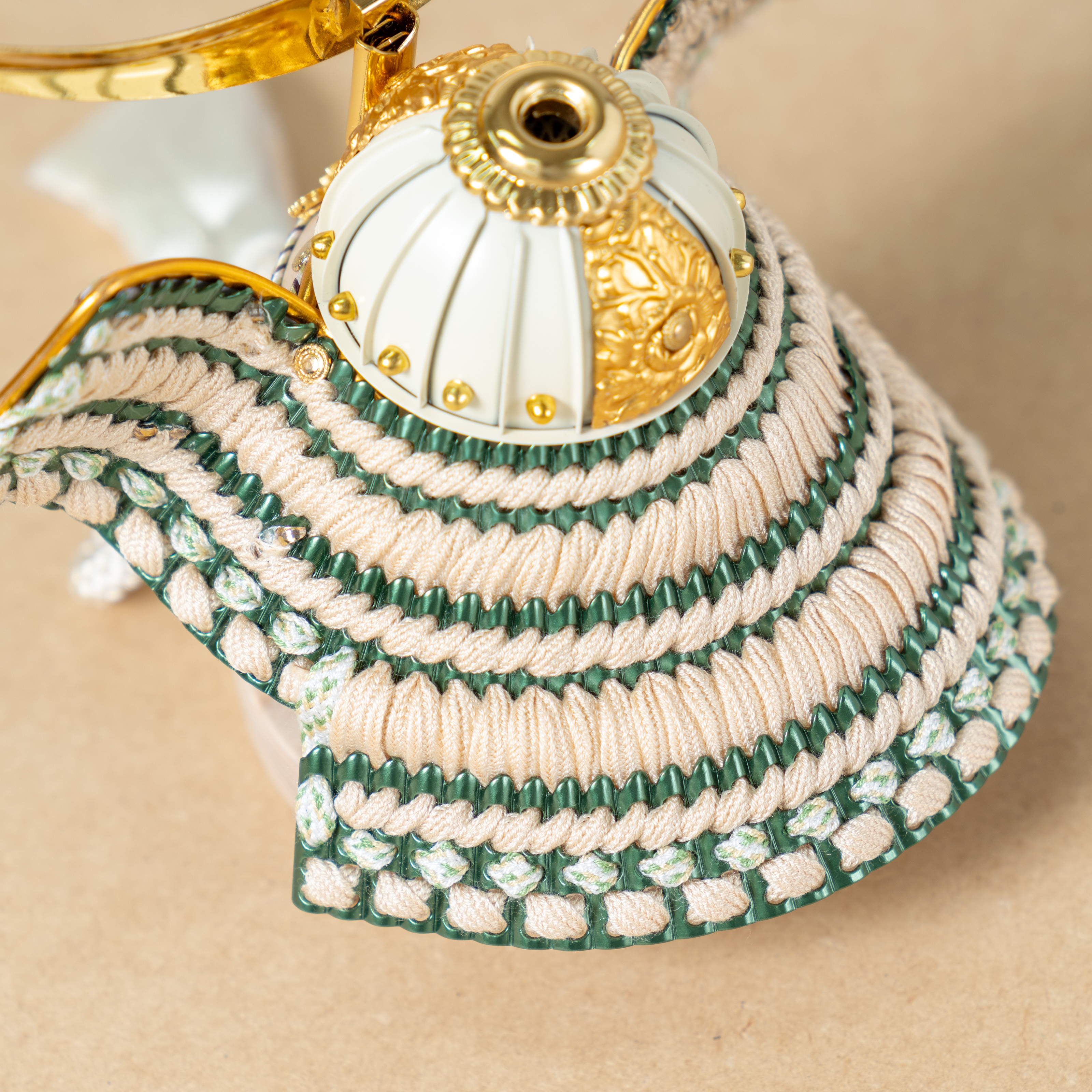 こだわりの素材と手間をかけた技法でつくる「兜」従来の取り付け型のケース兜は、鉢の素材がプラスチックなど作りが安価な兜が多いのですが、当社の本兜は、デザイン性を有しながらも本来の伝統的な手間をかけた「兜」となっています。