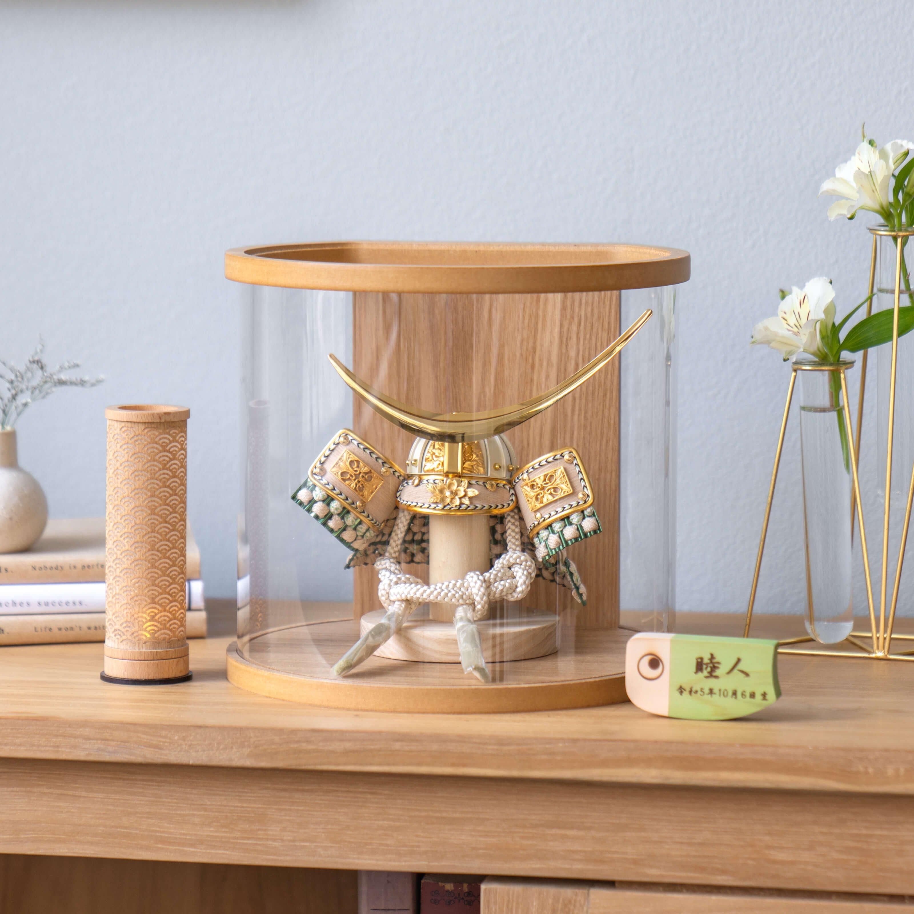 ケースでも手にとって欲しいこだわりの兜ケース伝統工芸の技術、裏側や後ろ側、内部の見えない箇所、素材にまでこだわり抜いた兜飾り。道具も木のぬくもりを感じて頂くために無垢材を使用しております。あえて飾る手間を残し、お子様とご一緒に手にとっていただき本物の素材、質感を感じてほしい「ことのオリジナル兜」です。コンパクトでちょうどいいサイズコンパクトでちょうどいいサイズ今どきのおうちに合わせたコンパクトなサイズに仕上げました。飾るスペースが狭くなりがちなマンションや子ども部屋にもぴったり。伝統的な兜をモダンに仕上げたシンプルなデザイン伝統的な兜をモダンに仕上げたシンプルなデザイン伝統的な製法で作られた兜に天然木の素材を活かしたシンプルなデザインの兜です。モダンでシンプルなデザインは、どんなお部屋の雰囲気にもピッタリ。選び抜いた素材と手間をかけた技法でつくる兜鉢選び抜いた素材と手間をかけた技法でつくる兜鉢ことのオリジナル兜の兜鉢は、伝統的な本式の合せ鉢という技法でつくられています。本式の合せ鉢とは、戦国時代に頭部を守るために考案され、三角状の鉢部品を重ね合わせ、多数の星鋲をカシメる事で強度を高める技法です。こだわりの素材と手間をかけた技法でつくる「兜」こだわりの素材と手間をかけた技法でつくる「兜」従来の取り付け型のケース兜は、鉢の素材がプラスチックなど作りが安価な兜が多いのですが、当社の本兜は、デザイン性を有しながらも本来の伝統的な手間をかけた「兜」となっています。こだわりの円柱形ケースこだわりの円柱形ケース角をなくし丸みをつけた円柱型のケースは従来のケースにある柱がない為、中に飾る兜がより見やすくなっております。ケースでも手にとって欲しいこだわりの兜ケースでも手にとって欲しいこだわりの兜通常ケースタイプの商品は「取り付け型」と言われ飾る手間を省くために設置箇所が固定されています。本兜は、あえて飾る手間を残し本物の素材や質感をお子様とご一緒に手にとって飾る体験をしてもらいたい為、設置箇所は固定されておりません。また、上部、前、左右にはガラスではなくアクリル板が設置されていますので、万が一の際も安心です。お子さまの感性を育む天然木へのこだわりお子さまの感性を育む天然木へのこだわり素材には、タモ、ブナといった天然木を使用。お子さまへの一生に一度の贈り物だから、木都は自然素材の天然木にこだわり続けています。※ 生産時期により使用する素材が一部変更になる場合がございます。熟練の職人による確かな手仕事熟練の職人による確かな手仕事伝統工芸の技術を受け継ぐ日本国内の熟練の職人が、一つひとつ丁寧に手づくりしています。おしゃれなギフト包装でお届けしますおしゃれなギフト包装でお届けします和の雰囲気を感じさせる越前和紙のギフト用ラッピングでお届け。料金がわかるものもお入れしていないので、そのまま贈り物として利用できます。商品レビュー記入でもれなくもらえる天然木のミニ名前札プレゼント商品レビュー記入でもれなくもらえる天然木のミニ名前札プレゼントミニサイズのお名前札 (通常販売価格1,980円) をプレゼント♪商品到着後、商品レビューをご記入の上、商品と同梱のチラシ記載のQRコードから応募フォームへ必要事項をご入力ください。店舗よりレビュー特典を発送いたします。※ お名前札の生年月日の表記は和暦となります。(例:令和七年)商品のご注文へ収納方法とセット内容兜・鍬形・芯木・ケース素材:タモ重量:1,010g (兜のみ 150g)サイズ:W220mm × D205mm × H210mm梱包時:W270mm × D260mm × H370mm兜のみ:約 W150mm × D110mm × H150mm注意事項本品は、金属をふんだんに使用しております。取り扱われる方の人体にすり傷、切り傷、刺傷を及ぼす場合がございますので、左記注意事項をよく読んでお取り扱い下さい。甲冑について飾り付ける際に必ず手袋をご使用ください。錆や変色などの予防にもなります。本品の上には絶対に乗らないでください。本品または本品の部品は装飾品です。他の目的に使用しないで下さい。部品には小さなものがございます。お子様がお口に入れないようにご注意いください。木製品について色合いなど実際のものと写真とでは多少の誤差が生じる場合がございます。また、手作りであり天然木を使用している為、多少の仕様の変化や風合いがひとつひとつ異なります。あらかじめご了承ください。部品には小さなものがございます。お子様がお口に入れないようにご注意いください。菖蒲には針金が入っております。お好みで角度を調整して下さい。材質により刻印の濃淡に差が生じますが不良品ではございません。木製品である限り自然なこととご承知下さいませ。保管場所は変色やカビ、サビの原因になりますので湿気の少ない場所・直射日光の当たらない場所に保管してください。ご不明点がございましたら > お問い合わせページ 