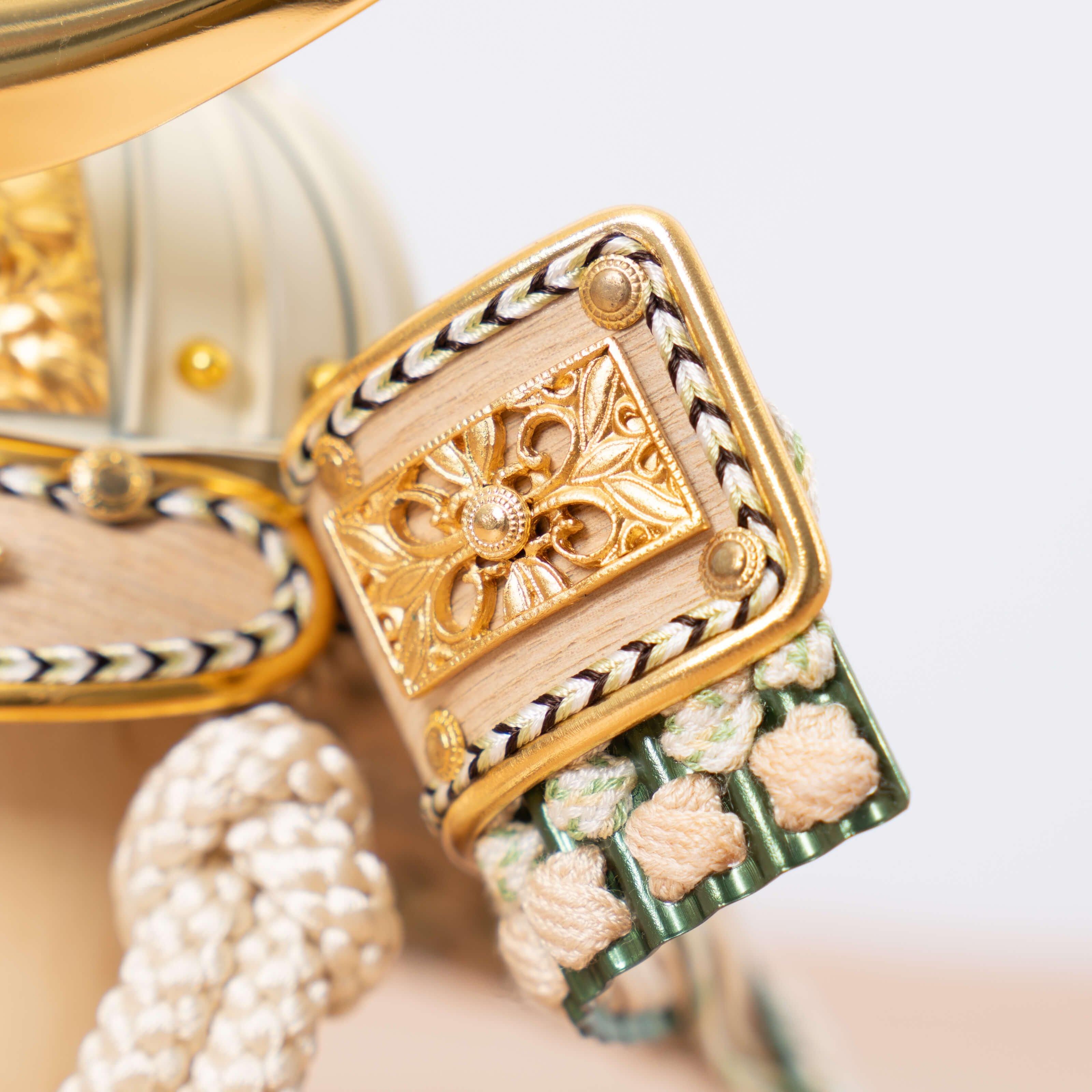 ケースでも手にとって欲しいこだわりの兜ケース伝統工芸の技術、裏側や後ろ側、内部の見えない箇所、素材にまでこだわり抜いた兜飾り。道具も木のぬくもりを感じて頂くために無垢材を使用しております。あえて飾る手間を残し、お子様とご一緒に手にとっていただき本物の素材、質感を感じてほしい「ことのオリジナル兜」です。コンパクトでちょうどいいサイズコンパクトでちょうどいいサイズ今どきのおうちに合わせたコンパクトなサイズに仕上げました。飾るスペースが狭くなりがちなマンションや子ども部屋にもぴったり。伝統的な兜をモダンに仕上げたシンプルなデザイン伝統的な兜をモダンに仕上げたシンプルなデザイン伝統的な製法で作られた兜に天然木の素材を活かしたシンプルなデザインの兜です。モダンでシンプルなデザインは、どんなお部屋の雰囲気にもピッタリ。選び抜いた素材と手間をかけた技法でつくる兜鉢選び抜いた素材と手間をかけた技法でつくる兜鉢ことのオリジナル兜の兜鉢は、伝統的な本式の合せ鉢という技法でつくられています。本式の合せ鉢とは、戦国時代に頭部を守るために考案され、三角状の鉢部品を重ね合わせ、多数の星鋲をカシメる事で強度を高める技法です。お子さまの感性を育む天然木へのこだわりお子さまの感性を育む天然木へのこだわり素材には、タモ、ブナといった天然木を使用。お子さまへの一生に一度の贈り物だから、木都は自然素材の天然木にこだわり続けています。※ 生産時期により使用する素材が一部変更になる場合がございます。熟練の職人による確かな手仕事熟練の職人による確かな手仕事伝統工芸の技術を受け継ぐ日本国内の熟練の職人が、一つひとつ丁寧に手づくりしています。おしゃれなギフト包装でお届けしますおしゃれなギフト包装でお届けします和の雰囲気を感じさせる越前和紙のギフト用ラッピングでお届け。料金がわかるものもお入れしていないので、そのまま贈り物として利用できます。商品レビュー記入でもれなくもらえる天然木のミニ名前札プレゼント商品レビュー記入でもれなくもらえる天然木のミニ名前札プレゼントミニサイズのお名前札 (通常販売価格1,980円) をプレゼント♪商品到着後、商品レビューをご記入の上、商品と同梱のチラシ記載のQRコードから応募フォームへ必要事項をご入力ください。店舗よりレビュー特典を発送いたします。※ お名前札の生年月日の表記は和暦となります。(例:令和七年)商品のご注文へ収納方法とセット内容素材:タモ重量:1,010g (兜のみ 150g)サイズ:W280mm × D240mm × H250mm兜のみ:約 W150mm × D110mm × H150mm注意事項本品は、金属をふんだんに使用しております。取り扱われる方の人体にすり傷、切り傷、刺傷を及ぼす場合がございますので、左記注意事項をよく読んでお取り扱い下さい。甲冑について飾り付ける際に必ず手袋をご使用ください。錆や変色などの予防にもなります。本品の上には絶対に乗らないでください。本品または本品の部品は装飾品です。他の目的に使用しないで下さい。部品には小さなものがございます。お子様がお口に入れないようにご注意いください。木製品について色合いなど実際のものと写真とでは多少の誤差が生じる場合がございます。また、手作りであり天然木を使用している為、多少の仕様の変化や風合いがひとつひとつ異なります。あらかじめご了承ください。部品には小さなものがございます。お子様がお口に入れないようにご注意いください。菖蒲には針金が入っております。お好みで角度を調整して下さい。材質により刻印の濃淡に差が生じますが不良品ではございません。木製品である限り自然なこととご承知下さいませ。保管場所は変色やカビ、サビの原因になりますので湿気の少ない場所・直射日光の当たらない場所に保管してください。ご不明点がございましたら > お問い合わせページ からご相談ください。