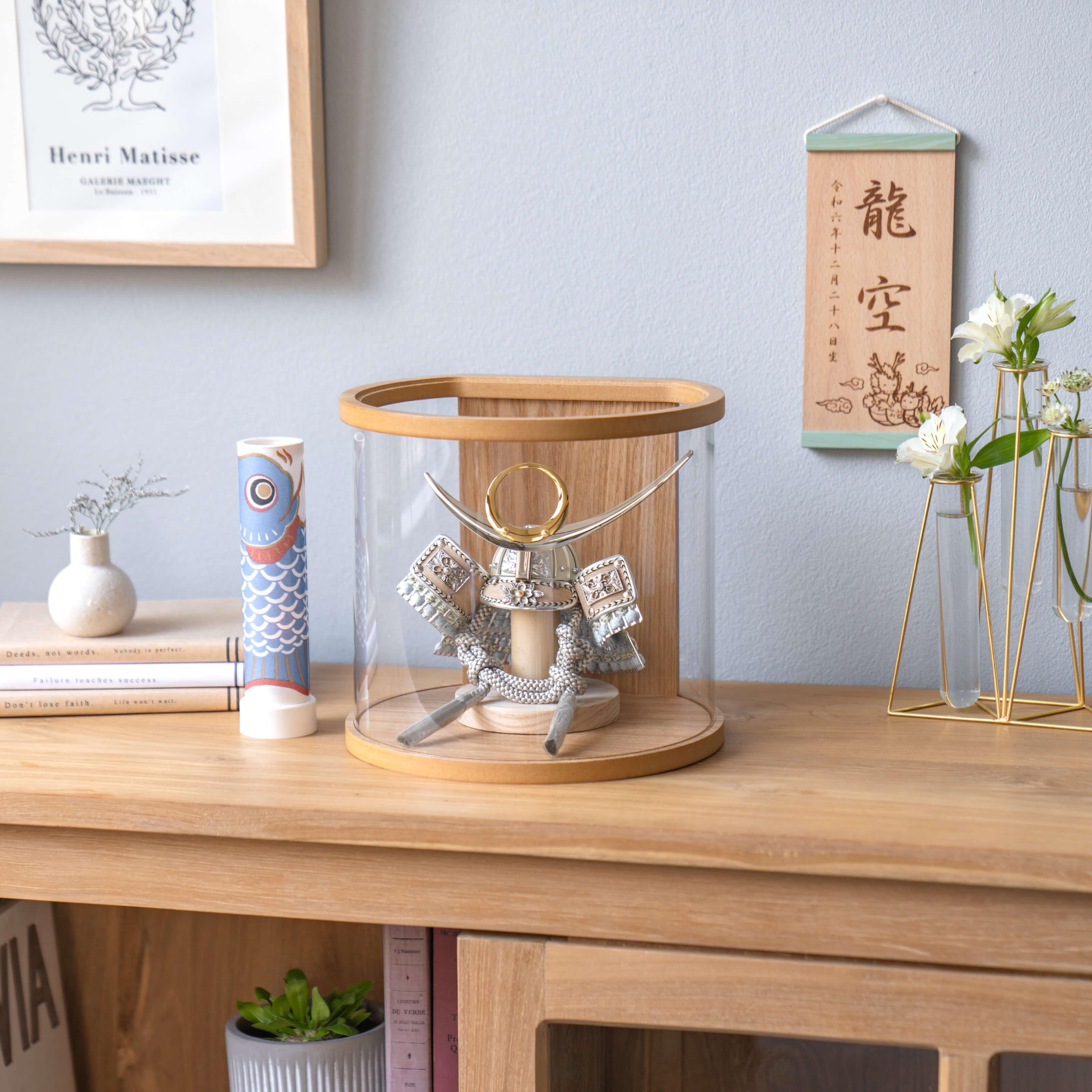 ケースでも手にとって欲しいこだわりの兜ケース伝統工芸の技術、裏側や後ろ側、内部の見えない箇所、素材にまでこだわり抜いた兜飾り。道具も木のぬくもりを感じて頂くために無垢材を使用しております。あえて飾る手間を残し、お子様とご一緒に手にとっていただき本物の素材、質感を感じてほしい「ことのオリジナル兜」です。コンパクトでちょうどいいサイズコンパクトでちょうどいいサイズ今どきのおうちに合わせたコンパクトなサイズに仕上げました。飾るスペースが狭くなりがちなマンションや子ども部屋にもぴったり。伝統的な兜をモダンに仕上げたシンプルなデザイン伝統的な兜をモダンに仕上げたシンプルなデザイン伝統的な製法で作られた兜に天然木の素材を活かしたシンプルなデザインの兜です。モダンでシンプルなデザインは、どんなお部屋の雰囲気にもピッタリ。選び抜いた素材と手間をかけた技法でつくる兜鉢選び抜いた素材と手間をかけた技法でつくる兜鉢ことのオリジナル兜の兜鉢は、伝統的な本式の合せ鉢という技法でつくられています。本式の合せ鉢とは、戦国時代に頭部を守るために考案され、三角状の鉢部品を重ね合わせ、多数の星鋲をカシメる事で強度を高める技法です。こだわりの素材と手間をかけた技法でつくる「兜」こだわりの素材と手間をかけた技法でつくる「兜」従来の取り付け型のケース兜は、鉢の素材がプラスチックなど作りが安価な兜が多いのですが、当社の本兜は、デザイン性を有しながらも本来の伝統的な手間をかけた「兜」となっています。こだわりの円柱形ケースこだわりの円柱形ケース角をなくし丸みをつけた円柱型のケースは従来のケースにある柱がない為、中に飾る兜がより見やすくなっております。ケースでも手にとって欲しいこだわりの兜ケースでも手にとって欲しいこだわりの兜通常ケースタイプの商品は「取り付け型」と言われ飾る手間を省くために設置箇所が固定されています。本兜は、あえて飾る手間を残し本物の素材や質感をお子様とご一緒に手にとって飾る体験をしてもらいたい為、設置箇所は固定されておりません。また、上部、前、左右にはガラスではなくアクリル板が設置されていますので、万が一の際も安心です。お子さまの感性を育む天然木へのこだわりお子さまの感性を育む天然木へのこだわり素材には、タモ、ブナといった天然木を使用。お子さまへの一生に一度の贈り物だから、木都は自然素材の天然木にこだわり続けています。※ 生産時期により使用する素材が一部変更になる場合がございます。熟練の職人による確かな手仕事熟練の職人による確かな手仕事伝統工芸の技術を受け継ぐ日本国内の熟練の職人が、一つひとつ丁寧に手づくりしています。おしゃれなギフト包装でお届けしますおしゃれなギフト包装でお届けします和の雰囲気を感じさせる越前和紙のギフト用ラッピングでお届け。料金がわかるものもお入れしていないので、そのまま贈り物として利用できます。商品レビュー記入でもれなくもらえる天然木のミニ名前札プレゼント商品レビュー記入でもれなくもらえる天然木のミニ名前札プレゼントミニサイズのお名前札 (通常販売価格1,980円) をプレゼント♪商品到着後、商品レビューをご記入の上、商品と同梱のチラシ記載のQRコードから応募フォームへ必要事項をご入力ください。店舗よりレビュー特典を発送いたします。※ お名前札の生年月日の表記は和暦となります。(例:令和七年)商品のご注文へ収納方法とセット内容兜・鍬形・芯木・ケース素材:タモ重量:1,010g (兜のみ 150g)サイズ:W220mm × D205mm × H210mm梱包時:W270mm × D260mm × H370mm兜のみ:約 W150mm × D110mm × H150mm注意事項本品は、金属をふんだんに使用しております。取り扱われる方の人体にすり傷、切り傷、刺傷を及ぼす場合がございますので、左記注意事項をよく読んでお取り扱い下さい。甲冑について飾り付ける際に必ず手袋をご使用ください。錆や変色などの予防にもなります。本品の上には絶対に乗らないでください。本品または本品の部品は装飾品です。他の目的に使用しないで下さい。部品には小さなものがございます。お子様がお口に入れないようにご注意いください。木製品について色合いなど実際のものと写真とでは多少の誤差が生じる場合がございます。また、手作りであり天然木を使用している為、多少の仕様の変化や風合いがひとつひとつ異なります。あらかじめご了承ください。部品には小さなものがございます。お子様がお口に入れないようにご注意いください。菖蒲には針金が入っております。お好みで角度を調整して下さい。材質により刻印の濃淡に差が生じますが不良品ではございません。木製品である限り自然なこととご承知下さいませ。保管場所は変色やカビ、サビの原因になりますので湿気の少ない場所・直射日光の当たらない場所に保管してください。ご不明点がございましたら > お問い合わせページ 
