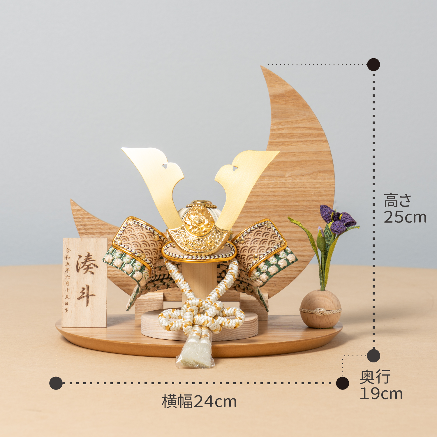 実際に手に取ると天然木の素材ならではの優しいぬくもりが伝わります。てづくり工房「木都」の職人が、伝統工芸の技術と天然木の素材を活かし、真心込めて1つ1つ丁寧につくりました。親しみやすく、お子様と一緒に飾れることのオリジナル兜です。※ 細かい部品が含まれています。3歳未満のお子様は、保護者の方と一緒にお遊びください。コンパクトでちょうどいいサイズコンパクトでちょうどいいサイズ今どきのおうちに合わせたコンパクトなサイズに仕上げました。飾るスペースが狭くなりがちなマンションや子ども部屋にもぴったり。伝統的な兜をモダンに仕上げたシンプルなデザイン伝統的な兜をモダンに仕上げたシンプルなデザイン伝統的な製法で作られた兜に天然木の素材を活かしたシンプルなデザインの兜です。モダンでシンプルなデザインは、どんなお部屋の雰囲気にもピッタリ。選び抜いた素材と手間をかけた技法でつくる兜鉢選び抜いた素材と手間をかけた技法でつくる兜鉢ことのオリジナル兜の兜鉢は、伝統的な本式の合せ鉢という技法でつくられています。本式の合せ鉢とは、戦国時代に頭部を守るために考案され、三角状の鉢部品を重ね合わせ、多数の星鋲をカシメる事で強度を高める技法です。お子さまの感性を育む天然木へのこだわりお子さまの感性を育む天然木へのこだわり素材には、タモ、ブナといった天然木を使用。お子さまへの一生に一度の贈り物だから、木都は自然素材の天然木にこだわり続けています。※ 生産時期により使用する素材が一部変更になる場合がございます。熟練の職人による確かな手仕事熟練の職人による確かな手仕事伝統工芸の技術を受け継ぐ日本国内の熟練の職人が、一つひとつ丁寧に手づくりしています。おしゃれなギフト包装でお届けしますおしゃれなギフト包装でお届けします和の雰囲気を感じさせる越前和紙のギフト用ラッピングでお届け。料金がわかるものもお入れしていないので、そのまま贈り物として利用できます。商品レビュー記入でもれなくもらえる天然木のミニ名前札プレゼント商品レビュー記入でもれなくもらえる天然木のミニ名前札プレゼントミニサイズのお名前札 (通常販売価格1,980円) をプレゼント♪商品到着後、商品レビューをご記入の上、商品と同梱のチラシ記載のQRコードから応募フォームへ必要事項をご入力ください。店舗よりレビュー特典を発送いたします。※ お名前札の生年月日の表記は和暦となります。(例:令和七年)商品のご注文へ収納方法とセット内容兜・鍬形・芯木・菖蒲・衝立・平台素材:タモ重量:740g (兜のみ 150g)サイズ:W240mm × D190mm × H250mm梱包時:W290mm × D260mm × H180mm兜のみ:約 W150mm × D110mm × H150mm注意事項本品は、金属をふんだんに使用しております。取り扱われる方の人体にすり傷、切り傷、刺傷を及ぼす場合がございますので、左記注意事項をよく読んでお取り扱い下さい。甲冑について飾り付ける際に必ず手袋をご使用ください。錆や変色などの予防にもなります。本品の上には絶対に乗らないでください。本品または本品の部品は装飾品です。他の目的に使用しないで下さい。部品には小さなものがございます。お子様がお口に入れないようにご注意いください。木製品について色合いなど実際のものと写真とでは多少の誤差が生じる場合がございます。また、手作りであり天然木を使用している為、多少の仕様の変化や風合いがひとつひとつ異なります。あらかじめご了承ください。部品には小さなものがございます。お子様がお口に入れないようにご注意いください。菖蒲には針金が入っております。お好みで角度を調整して下さい。材質により刻印の濃淡に差が生じますが不良品ではございません。木製品である限り自然なこととご承知下さいませ。保管場所は変色やカビ、サビの原因になりますので湿気の少ない場所・直射日光の当たらない場所に保管してください。ご不明点がございましたら > お問い合わせページ からご相談ください。