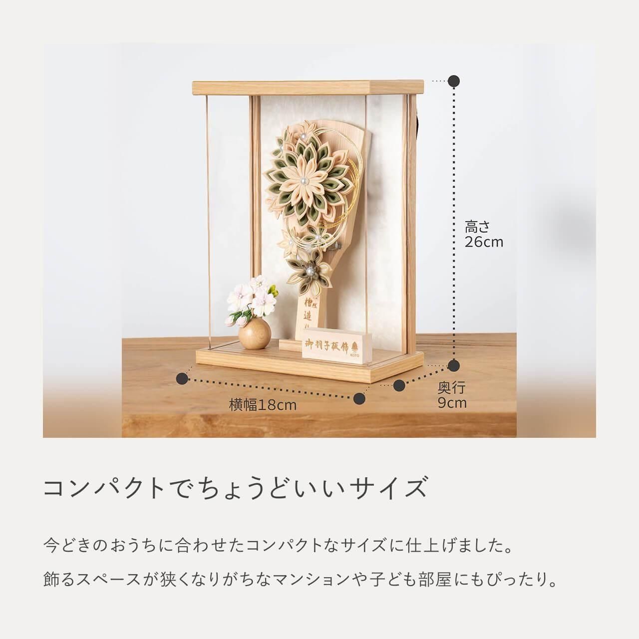 女の子の無病息災のお守りとして飾られる羽子板。熟練の職人が、伝統工芸の技術と天然木の素材を活かし、心を込めて一つひとつ丁寧につくりました。コンパクトでちょうどいいサイズコンパクトでちょうどいいサイズ今どきのおうちに合わせたコンパクトなサイズに仕上げました。飾るスペースが狭くなりがちなマンションや子ども部屋にもぴったり。インテリアに溶け込むナチュラルなデザインインテリアに溶け込むナチュラルなデザイン天然木の素材を活かしたシンプルなデザインだから、お部屋の雰囲気にもピッタリ。平置きと壁掛けの2通りで飾れる平置きと壁掛けの2通りで飾れるケースの背面には紐が付属しております。そのまま置いても、壁に掛けても飾れる2WAY仕様です。取り外せる前面アクリル板取り外せる前面アクリル板お客さまの声をもとにケース前面のアクリル板を取り外し可能なデザインにリニューアル。天然木ならではのぬくもりがより伝わるようになりました。高級感を演出する 正絹高級感を演出する 正絹花飾りには、天然繊維の正絹を使用。軽やかで上品な光沢があり、着物にも用いられる高級素材です。日本の伝統工芸 つまみ細工日本の伝統工芸 つまみ細工江戸時代から伝わる日本の伝統工芸で、小さな布をつまんで様々なモチーフの形を作り、装飾品として仕上げる技法です。美しく繊細な水引美しく繊細な水引美しい曲線を織りなす水引は、日本独自の飾りです。結び方や本数に願いを込め、結納品や贈答品などに用いられています。最高品質の越前和紙最高品質の越前和紙ケースの背面には福井県越前市の伝統工芸品『越前和紙』を採用。受け継がれる美しい質感と優れた耐久性が魅力です。お子さまの感性を育む天然木へのこだわりお子さまの感性を育む天然木へのこだわり素材には、富士山麓の無垢のヒノキやタモ、ブナといった天然木を使用。お子さまへの一生に一度の贈り物だから、木都は自然素材の天然木にこだわり続けています。※ 生産時期により使用する素材が一部変更になる場合がございます。天然木が織りなす唯一無二の風合い天然木が織りなす唯一無二の風合い様々な種類の木材を組み合わせることで、それぞれの良さを活かした羽子板に仕上げました。タモ均一で美しい木目が特徴。弾力性と強度を持ち合わせており、耐久性があります。ブナ耐久性が高く長寿のため、家具によく用いられます。明るい色調でインテリアによく馴染みます。桧ひのき特有の香りにはリラックス効果や抗菌、防虫作用があります。湿気にも強く、耐久性に優れています。桐優れた抗菌・防腐効果をもつ成分を含み、高級家具に多く用いられています。上品さのある柔らかな光沢が特徴。熟練の職人による確かな手仕事熟練の職人による確かな手仕事伝統工芸の技術を受け継ぐ日本国内の熟練の職人が、一つひとつ丁寧に手づくりしています。おしゃれなギフト包装でお届けしますおしゃれなギフト包装でお届けします和の雰囲気を感じさせる越前和紙のギフト用ラッピングでお届け。料金がわかるものもお入れしていないので、そのまま贈り物として利用できます。収納方法とセット内容羽子板素材:桧重量:660gサイズ:W180mm × D90mm × H260mm梱包時:W195mm × D100mm × H280mm※ 本商品に名前旗は付属しておりません。別途お買い求めください。注意事項色合いなど実際のものと写真とでは多少の誤差が生じる場合がございます。また、手作りであり天然木を使用している為、多少の仕様の変化や風合いがひとつひとつ異なります。あらかじめご了承ください。材質により木の刻印の濃淡に差が生じますが不良品ではございません。木製品である限り自然なこととご承知下さいませ。保管場所は変色やカビ、サビの原因になりますので湿気の少ない場所・直射日光の当たらない場所に保管してください。本商品に名前旗は付属しておりません。別途お買い求めください。ご不明点がございましたら > お問い合わせページ からご相談ください。 型番 0118 ことの羽子板 ゆうか Nケース ¥26,800税込 送料無料(一部離島を除く) 行燈別売 ¥11,000 あわせて購入 名前旗 雛人形や五月人形とご一緒に コンパクトサイズの雛人形や五月人形と一緒に飾るのにぴったりな名前旗です。5つのカラーと3種類のデザインをお好みでお選びいただけます。 商品情報へ 行燈付き商品の場合は行燈に名入れいたします。ご注文の際は備考欄にお名前・フリガナ・生年月日をご記入ください。空欄の場合は柄のみでお作りさせて頂きます。 個 カートに追加 特定商取引法に基づく表記(返品等) レビューを見る 0 レビューを投稿 関連記事 { "pid": "182214526" }