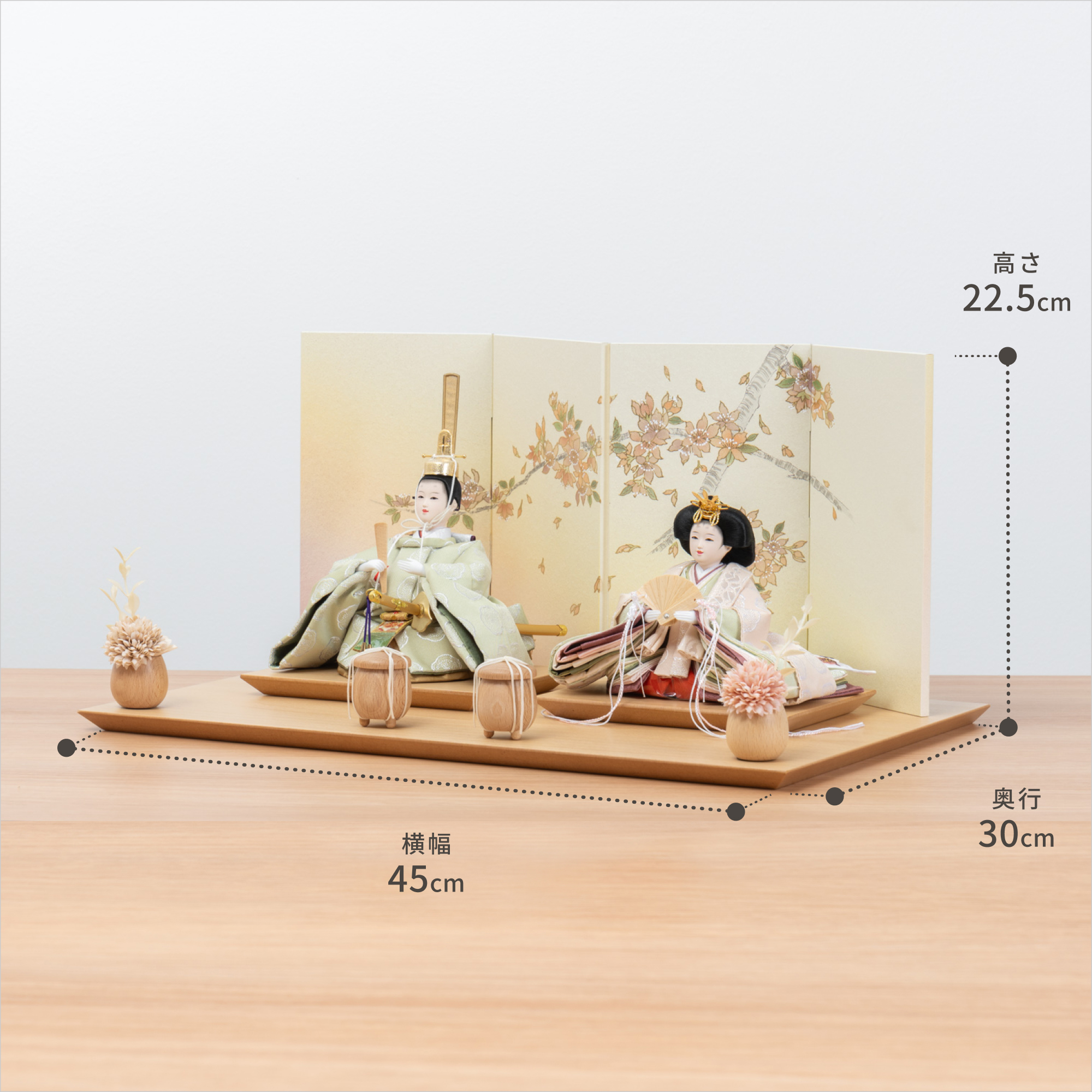 精巧な凛として美しい佇まいを天然木の優しいぬくもりが包み込む・・・まるで女の子の成長を温かく見守る家族の様に・・・そんなコンセプトから生まれた、親しみやすく、お子様と一緒に飾れる「ことの雛人形」です。コンパクトでちょうどいいサイズコンパクトでちょうどいいサイズ今どきのおうちに合わせたコンパクトなサイズに仕上げました。飾るスペースが狭くなりがちなマンションや子ども部屋にもぴったり。お部屋のイメージに調和するデザインお部屋のイメージに調和するデザイン天然木の素材を活かしたシンプルなデザインだから、お部屋の雰囲気にもピッタリ。お衣装へのこだわりお衣装へのこだわり有職裂地を使用しています。有職とは「有職故事」という宮廷の決まり事に準拠した色彩や文様で、それらで造った衣装を有職衣装と呼びます。鳳凰は中国に古くから伝わる伝説の鳥で、天命を受けて天下を治める聖天子の訪れとともにこの世に現れることから、平和と幸福のシンボルとされています。手作りへのこだわり〜裂地(きれじ)の裁断手作りへのこだわり〜裂地(きれじ)の裁断和紙で衣裳の各種型紙を作り、へり部分にのみ糊をつけ、裂地裏面に貼り付けます。型紙に沿って裁断して衣裳部品を作っていきます。手作りへのこだわり〜縫製手作りへのこだわり〜縫製姫の十二単の唐衣(からぎぬ)・五衣(いつつぎぬ)・単衣(ひとえ)・裾、殿の着物・裾・中袖等、数多くの衣裳部品をミシン、または手縫いで細やかな部分まで縫い合わせ、折り込み仕上げていきます。手作りへのこだわり〜着付け・振付け手作りへのこだわり〜着付け・振付け仕上がった衣裳は両腕を後方に曲げて羽織らせるようにして着付けます。次にそれぞれの人形の形に振付けます。腕を曲げる角度や手の位置などで全体のバランスを取ります。手作りへのこだわり〜頭差し手作りへのこだわり〜頭差し頭さしは最終の人形検品を兼ねて行われます。包まれた顔紙を外し、汚れ等無いことを確認します。頭と衣紋の中心線が一直線になるように差し込みます。ことのお雛様ことのお雛様お雛様の顔は時代とともに人気のお顔があります。ことのお雛様のお顔は時代に左右されない普遍的なシンプルで可愛らしいお顔となっています。お子さまの感性を育む天然木へのこだわりお子さまの感性を育む天然木へのこだわり素材には、タモ、ブナといった天然木を使用。お子さまへの一生に一度の贈り物だから、木都は自然素材の天然木にこだわり続けています。※ 生産時期により使用する素材が一部変更になる場合がございます。熟練の職人による確かな手仕事熟練の職人による確かな手仕事伝統工芸の技術を受け継ぐ日本国内の熟練の職人が、一つひとつ丁寧に手づくりしています。おしゃれなギフト包装でお届けしますおしゃれなギフト包装でお届けします和の雰囲気を感じさせる越前和紙のギフト用ラッピングでお届け。料金がわかるものもお入れしていないので、そのまま贈り物として利用できます。商品レビュー記入でもれなくもらえる天然木のミニ名前札プレゼント商品レビュー記入でもれなくもらえる天然木のミニ名前札プレゼントミニサイズのお名前札 (通常販売価格1,980円) をプレゼント♪商品到着後、商品レビューをご記入の上、商品と同梱のチラシ記載のQRコードから応募フォームへ必要事項をご入力ください。店舗よりレビュー特典を発送いたします。※ お名前札の生年月日の表記は和暦となります。(例:令和七年)商品のご注文へ収納方法とセット内容お内裏様・お雛様・屏風・平台・人形小道具・貝桶×2・花飾り×2素材:ブナ重量:2,500g サイズ:W450mm × D300mm × H225mm梱包時:W465mm × D315mm × H205mm殿:約 W150mm × D140mm × H195mm姫:約 W170mm × D160mm × H120mm注意事項色合いなど実際のものと写真とでは多少の誤差が生じる場合がございます。また、手作りであり天然木を使用している為、多少の仕様の変化や風合いがひとつひとつ異なります。あらかじめご了承ください。部品には小さなものがございます。お子様がお口に入れないようにご注意ください。材質により木の刻印の濃淡に差が生じますが不良品ではございません。木製品である限り自然なこととご承知下さいませ。保管場所は変色やカビ、サビの原因になりますので湿気の少ない場所・直射日光の当たらない場所に保管してください。雄雛の正面にあります飾り帯のビニールは外さないでください。本商品に行燈は付属しておりません。別途お買い求めください。ご不明点がございましたら > お問い合わせページ からご相談ください。