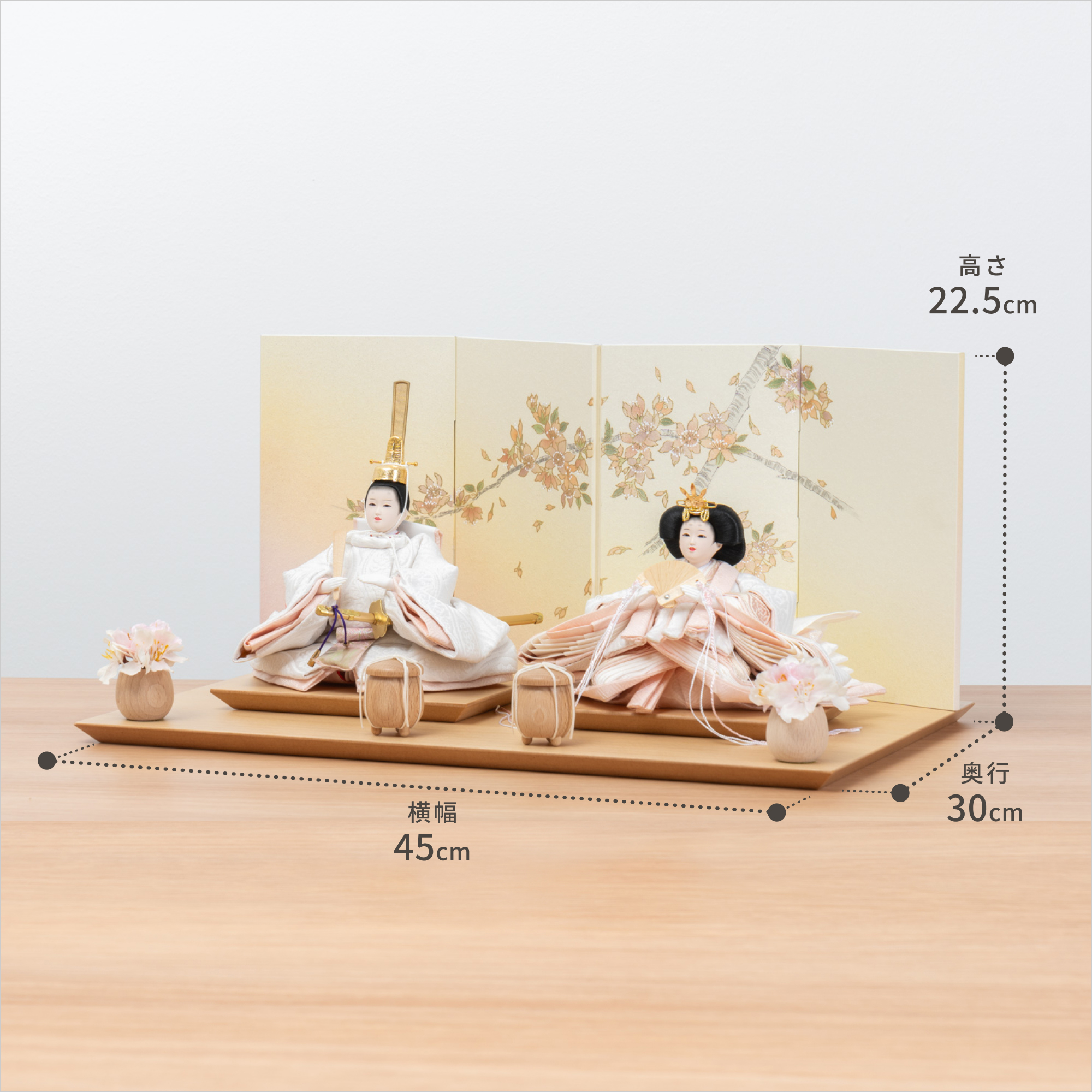 精巧な凛として美しい佇まいを天然木の優しいぬくもりが包み込む・・・まるで女の子の成長を温かく見守る家族の様に・・・そんなコンセプトから生まれた、親しみやすく、お子様と一緒に飾れる「ことの雛人形」です。コンパクトでちょうどいいサイズコンパクトでちょうどいいサイズ今どきのおうちに合わせたコンパクトなサイズに仕上げました。飾るスペースが狭くなりがちなマンションや子ども部屋にもぴったり。お部屋のイメージに調和するデザインお部屋のイメージに調和するデザイン天然木の素材を活かしたシンプルなデザインだから、お部屋の雰囲気にもピッタリ。お衣装へのこだわりお衣装へのこだわり柄は雲立涌柄といい、雲や蒸気が立ち昇る様で子供の運気上昇を願う縁起のいい文様です。手作りへのこだわり〜裂地(きれじ)の裁断手作りへのこだわり〜裂地(きれじ)の裁断和紙で衣裳の各種型紙を作り、へり部分にのみ糊をつけ、裂地裏面に貼り付けます。型紙に沿って裁断して衣裳部品を作っていきます。手作りへのこだわり〜縫製手作りへのこだわり〜縫製姫の十二単の唐衣(からぎぬ)・五衣(いつつぎぬ)・単衣(ひとえ)・裾、殿の着物・裾・中袖等、数多くの衣裳部品をミシン、または手縫いで細やかな部分まで縫い合わせ、折り込み仕上げていきます。手作りへのこだわり〜着付け・振付け手作りへのこだわり〜着付け・振付け仕上がった衣裳は両腕を後方に曲げて羽織らせるようにして着付けます。次にそれぞれの人形の形に振付けます。腕を曲げる角度や手の位置などで全体のバランスを取ります。手作りへのこだわり〜頭差し手作りへのこだわり〜頭差し頭さしは最終の人形検品を兼ねて行われます。包まれた顔紙を外し、汚れ等無いことを確認します。頭と衣紋の中心線が一直線になるように差し込みます。ことのお雛様ことのお雛様お雛様の顔は時代とともに人気のお顔があります。ことのお雛様のお顔は時代に左右されない普遍的なシンプルで可愛らしいお顔となっています。お子さまの感性を育む天然木へのこだわりお子さまの感性を育む天然木へのこだわり素材には、タモ、ブナといった天然木を使用。お子さまへの一生に一度の贈り物だから、木都は自然素材の天然木にこだわり続けています。※ 生産時期により使用する素材が一部変更になる場合がございます。熟練の職人による確かな手仕事熟練の職人による確かな手仕事伝統工芸の技術を受け継ぐ日本国内の熟練の職人が、一つひとつ丁寧に手づくりしています。おしゃれなギフト包装でお届けしますおしゃれなギフト包装でお届けします和の雰囲気を感じさせる越前和紙のギフト用ラッピングでお届け。料金がわかるものもお入れしていないので、そのまま贈り物として利用できます。商品レビュー記入でもれなくもらえる天然木のミニ名前札プレゼント商品レビュー記入でもれなくもらえる天然木のミニ名前札プレゼントミニサイズのお名前札 (通常販売価格1,980円) をプレゼント♪商品到着後、商品レビューをご記入の上、商品と同梱のチラシ記載のQRコードから応募フォームへ必要事項をご入力ください。店舗よりレビュー特典を発送いたします。※ お名前札の生年月日の表記は和暦となります。(例:令和七年)商品のご注文へ収納方法とセット内容お内裏様・お雛様・屏風・平台・人形小道具・貝桶×2・花飾り×2素材:ブナ重量:2,550g サイズ:W450mm × D300mm × H225mm梱包時:W465mm × D315mm × H205mm殿:約 W185mm × D165mm × H215mm姫:約 W220mm × D190mm × H125mm注意事項色合いなど実際のものと写真とでは多少の誤差が生じる場合がございます。また、手作りであり天然木を使用している為、多少の仕様の変化や風合いがひとつひとつ異なります。あらかじめご了承ください。部品には小さなものがございます。お子様がお口に入れないようにご注意ください。材質により木の刻印の濃淡に差が生じますが不良品ではございません。木製品である限り自然なこととご承知下さいませ。保管場所は変色やカビ、サビの原因になりますので湿気の少ない場所・直射日光の当たらない場所に保管してください。雄雛の正面にあります飾り帯のビニールは外さないでください。本商品に行燈は付属しておりません。別途お買い求めください。ご不明点がございましたら > お問い合わせページ からご相談ください。