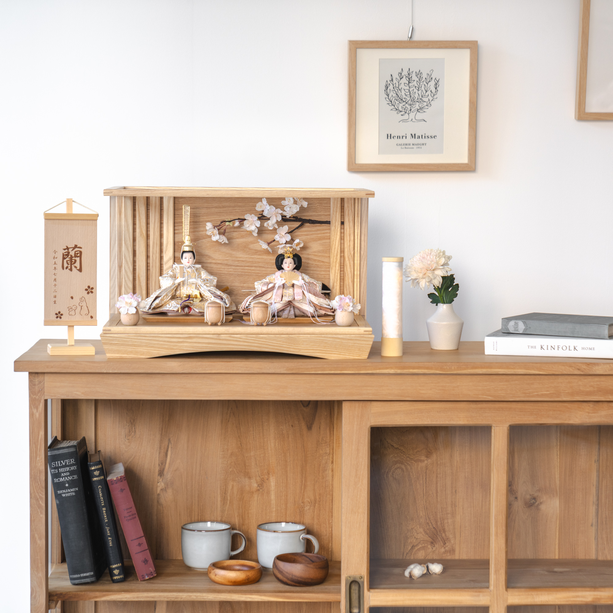 精巧な凛として美しい佇まいを天然木の優しいぬくもりが包み込む・・・まるで女の子の成長を温かく見守る家族の様に・・・そんなコンセプトから生まれた、親しみやすく、お子様と一緒に飾れる「ことの雛人形」です。コンパクトでちょうどいいサイズコンパクトでちょうどいいサイズ今どきのおうちに合わせたコンパクトなサイズに仕上げました。飾るスペースが狭くなりがちなマンションや子ども部屋にもぴったり。お部屋のイメージに調和するデザインお部屋のイメージに調和するデザイン天然木の素材を活かしたシンプルなデザインだから、お部屋の雰囲気にもピッタリ。お衣装へのこだわり 〜正絹 二重蔓牡丹文〜お衣装へのこだわり 〜正絹 二重蔓牡丹文〜日本の伝統的な文様の一つである、牡丹の花と唐草模様が組み合わさった「牡丹唐草」。牡丹には「不老不死」と「不老長寿」という意味が込められており、また、華やかで美しい牡丹の花は美と富の象徴とされています。そんな牡丹唐草の柄と小さいながらも光沢のある生地を合わせ、可愛らしさと高級感のある雛人形に仕上げました。手作りへのこだわり〜裂地(きれじ)の裁断手作りへのこだわり〜裂地(きれじ)の裁断和紙で衣裳の各種型紙を作り、へり部分にのみ糊をつけ、裂地裏面に貼り付けます。型紙に沿って裁断して衣裳部品を作っていきます。手作りへのこだわり〜縫製手作りへのこだわり〜縫製姫の十二単の唐衣(からぎぬ)・五衣(いつつぎぬ)・単衣(ひとえ)・裾、殿の着物・裾・中袖等、数多くの衣裳部品をミシン、または手縫いで細やかな部分まで縫い合わせ、折り込み仕上げていきます。手作りへのこだわり〜着付け・振付け手作りへのこだわり〜着付け・振付け仕上がった衣裳は両腕を後方に曲げて羽織らせるようにして着付けます。次にそれぞれの人形の形に振付けます。腕を曲げる角度や手の位置などで全体のバランスを取ります。手作りへのこだわり〜頭差し手作りへのこだわり〜頭差し頭さしは最終の人形検品を兼ねて行われます。包まれた顔紙を外し、汚れ等無いことを確認します。頭と衣紋の中心線が一直線になるように差し込みます。ことのお雛様ことのお雛様お雛様の顔は時代とともに人気のお顔があります。ことのお雛様のお顔は時代に左右されない普遍的なシンプルで可愛らしいお顔となっています。満開の枝桜が彩るケース満開の枝桜が彩るケース桜には縁起の良いことのはじまりや豊かさという意味があります。「お殿様とお雛様が桜の下で未来を誓う」そんなイメージから出来上がりました。ケース飾りでも手に取って本物の質感を感じてほしいケース飾りでも手に取って本物の質感を感じてほしい木都のケース飾りは、本物の素材や質感を感じながら親子で一緒に手に取って飾る体験をしてほしいから、あえて飾る手間を残しています。手間はかかりますが、伝統的な技法で一つひとつ手づくりしています。お子さまの感性を育む天然木へのこだわりお子さまの感性を育む天然木へのこだわり素材には、タモ、ブナといった天然木を使用。お子さまへの一生に一度の贈り物だから、木都は自然素材の天然木にこだわり続けています。※ 生産時期により使用する素材が一部変更になる場合がございます。熟練の職人による確かな手仕事熟練の職人による確かな手仕事伝統工芸の技術を受け継ぐ日本国内の熟練の職人が、一つひとつ丁寧に手づくりしています。おしゃれなギフト包装でお届けしますおしゃれなギフト包装でお届けします和の雰囲気を感じさせる越前和紙のギフト用ラッピングでお届け。料金がわかるものもお入れしていないので、そのまま贈り物として利用できます。商品レビュー記入でもれなくもらえる天然木のミニ名前札プレゼント商品レビュー記入でもれなくもらえる天然木のミニ名前札プレゼントミニサイズのお名前札 (通常販売価格1,980円) をプレゼント♪商品到着後、商品レビューをご記入の上、商品と同梱のチラシ記載のQRコードから応募フォームへ必要事項をご入力ください。店舗よりレビュー特典を発送いたします。※ お名前札の生年月日の表記は和暦となります。(例:令和七年)商品のご注文へ収納方法とセット内容お内裏様・お雛様・ケース・下台・人形小道具・貝桶×2・花飾り×2素材:タモ重量:3,600g (ケースのみ 2,830g)サイズ:W490mm × D295mm × H305mm梱包時:W550mm × D355mm × H480mm殿:約 W185mm × D165mm × H215mm姫:約 W220mm × D190mm × H125mm注意事項色合いなど実際のものと写真とでは多少の誤差が生じる場合がございます。また、手作りであり天然木を使用している為、多少の仕様の変化や風合いがひとつひとつ異なります。あらかじめご了承ください。部品には小さなものがございます。お子様がお口に入れないようにご注意ください。材質により木の刻印の濃淡に差が生じますが不良品ではございません。木製品である限り自然なこととご承知下さいませ。保管場所は変色やカビ、サビの原因にな