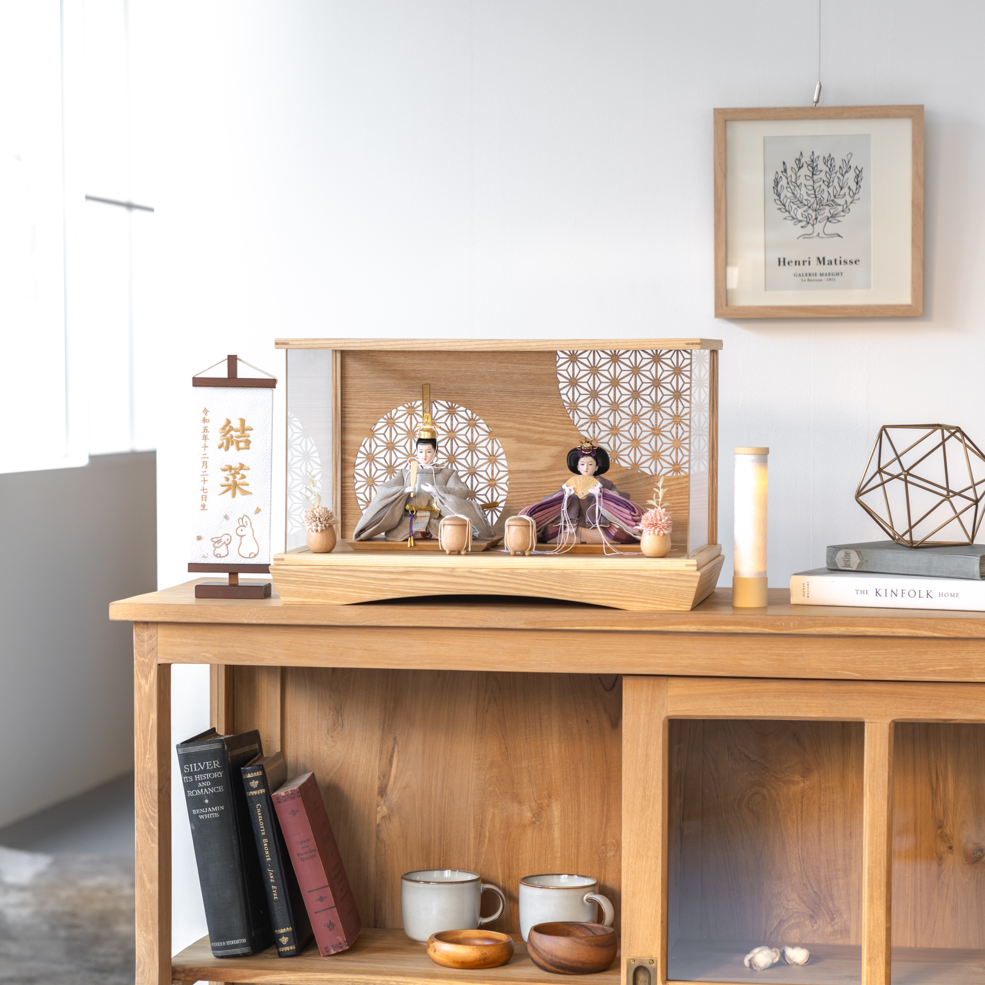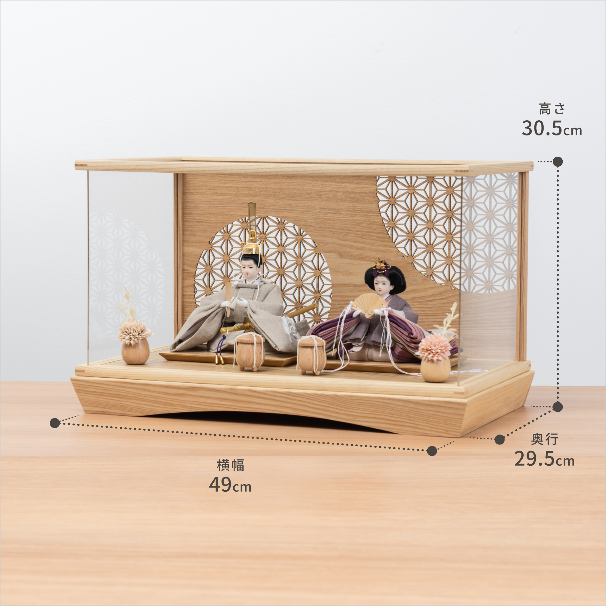 精巧な凛として美しい佇まいを天然木の優しいぬくもりが包み込む・・・まるで女の子の成長を温かく見守る家族の様に・・・そんなコンセプトから生まれた、親しみやすく、お子様と一緒に飾れる「ことの雛人形」です。コンパクトでちょうどいいサイズコンパクトでちょうどいいサイズ今どきのおうちに合わせたコンパクトなサイズに仕上げました。飾るスペースが狭くなりがちなマンションや子ども部屋にもぴったり。お部屋のイメージに調和するデザインお部屋のイメージに調和するデザイン天然木の素材を活かしたシンプルなデザインだから、お部屋の雰囲気にもピッタリ。お衣装へのこだわり(姫)お衣装へのこだわり(姫)姫の袖には野路菊とシクラメンが彩られていおり、身近にある親しみのある草花をモチーフしています。野路菊の花言葉は「真実」「高潔」「高貴」。その高貴な意味合いが、姫の優美さと純粋さを象徴しています。さらに、シクラメンの花言葉は「愛情」「絆」。寒さの中で美しい花を咲かせるため、勇気や希望を象徴する花です。お衣装へのこだわり(殿)お衣装へのこだわり(殿)殿の袖には、日本の原産種である野路菊と、春を告げる福寿草があしらわれています。福寿草の花言葉は「幸せを招く」「永久の幸福」。雪解けと共に春を知らせるように開花する花には、永遠の幸せを願う想いが込められています。手作りへのこだわり〜裂地(きれじ)の裁断手作りへのこだわり〜裂地(きれじ)の裁断和紙で衣裳の各種型紙を作り、へり部分にのみ糊をつけ、裂地裏面に貼り付けます。型紙に沿って裁断して衣裳部品を作っていきます。手作りへのこだわり〜縫製手作りへのこだわり〜縫製姫の十二単の唐衣(からぎぬ)・五衣(いつつぎぬ)・単衣(ひとえ)・裾、殿の着物・裾・中袖等、数多くの衣裳部品をミシン、または手縫いで細やかな部分まで縫い合わせ、折り込み仕上げていきます。手作りへのこだわり〜着付け・振付け手作りへのこだわり〜着付け・振付け仕上がった衣裳は両腕を後方に曲げて羽織らせるようにして着付けます。次にそれぞれの人形の形に振付けます。腕を曲げる角度や手の位置などで全体のバランスを取ります。手作りへのこだわり〜頭差し手作りへのこだわり〜頭差し頭さしは最終の人形検品を兼ねて行われます。包まれた顔紙を外し、汚れ等無いことを確認します。頭と衣紋の中心線が一直線になるように差し込みます。ことのお雛様ことのお雛様お雛様の顔は時代とともに人気のお顔があります。ことのお雛様のお顔は時代に左右されない普遍的なシンプルで可愛らしいお顔となっています。健やかな成長への願いを込めた 麻の葉文様健やかな成長への願いを込めた 麻の葉文様古来からの日本伝統の吉祥文様である麻の葉文様。麻の丈夫さ・成長の早さにあやかり、お子さまの健やかな成長への願いが込められています。ケース飾りでも手に取って本物の質感を感じてほしいケース飾りでも手に取って本物の質感を感じてほしい木都のケース飾りは、本物の素材や質感を感じながら親子で一緒に手に取って飾る体験をしてほしいから、あえて飾る手間を残しています。手間はかかりますが、伝統的な技法で一つひとつ手づくりしています。お子さまの感性を育む天然木へのこだわりお子さまの感性を育む天然木へのこだわり素材には、タモ、ブナといった天然木を使用。お子さまへの一生に一度の贈り物だから、木都は自然素材の天然木にこだわり続けています。※ 生産時期により使用する素材が一部変更になる場合がございます。熟練の職人による確かな手仕事熟練の職人による確かな手仕事伝統工芸の技術を受け継ぐ日本国内の熟練の職人が、一つひとつ丁寧に手づくりしています。おしゃれなギフト包装でお届けしますおしゃれなギフト包装でお届けします和の雰囲気を感じさせる越前和紙のギフト用ラッピングでお届け。料金がわかるものもお入れしていないので、そのまま贈り物として利用できます。商品レビュー記入でもれなくもらえる天然木のミニ名前札プレゼント商品レビュー記入でもれなくもらえる天然木のミニ名前札プレゼントミニサイズのお名前札 (通常販売価格1,980円) をプレゼント♪商品到着後、商品レビューをご記入の上、商品と同梱のチラシ記載のQRコードから応募フォームへ必要事項をご入力ください。店舗よりレビュー特典を発送いたします。※ お名前札の生年月日の表記は和暦となります。(例:令和七年)商品のご注文へ収納方法とセット内容お内裏様・お雛様・ケース・下台・人形小道具・貝桶×2・花飾り×2素材:タモ重量:3,260g (ケースのみ 2,530g)サイズ:W490mm × D295mm × H305mm梱包時:W550mm × D355mm × H480mm殿:約 W160mm × D140mm × H210mm姫:約 W180mm × D160mm × H120mm注意事項色合いなど実際のものと写真とでは多少の誤差が生じる場合がございます。また、手作りであり天然木を使用している為、多少の仕様の変化や風合いがひとつひとつ異なります。あらか