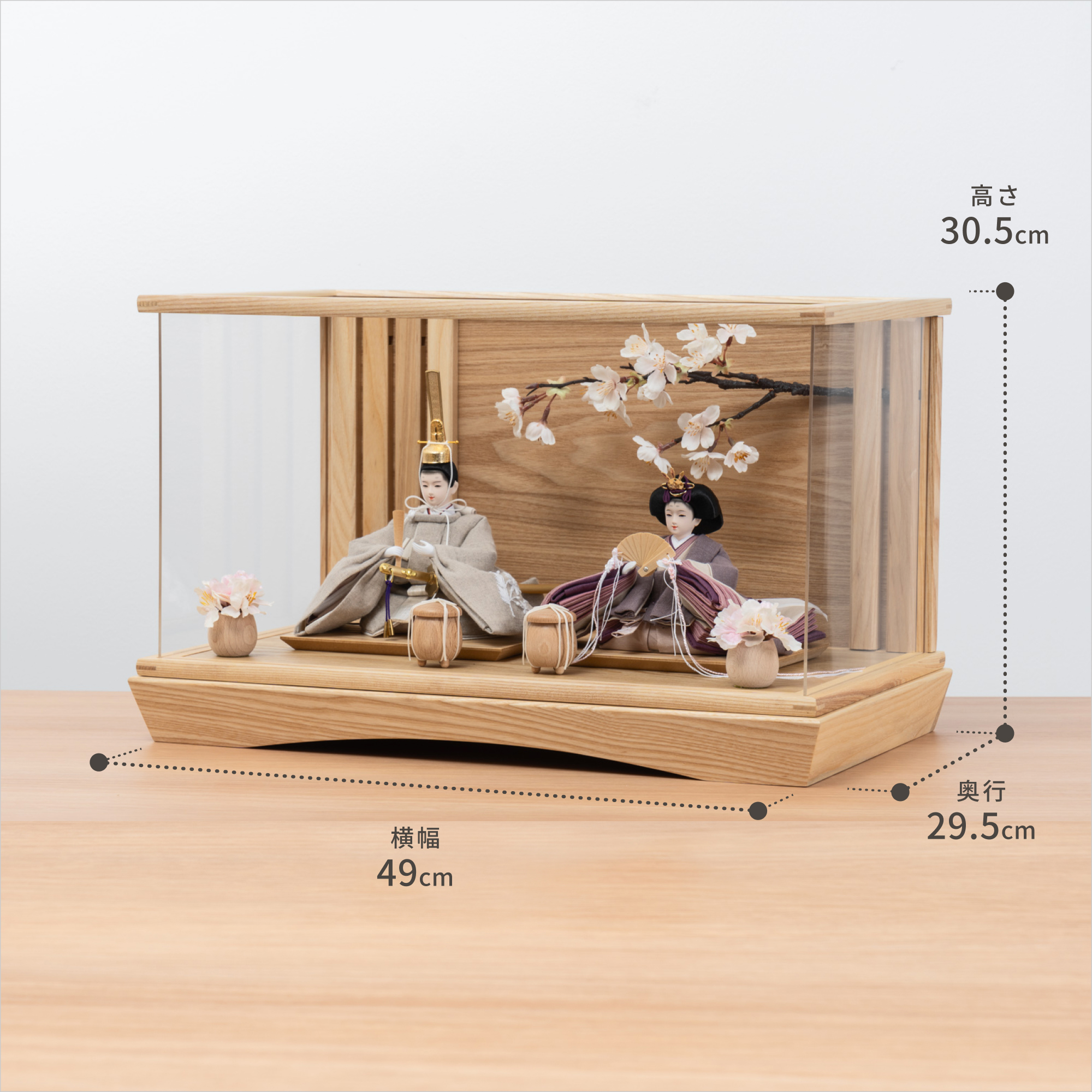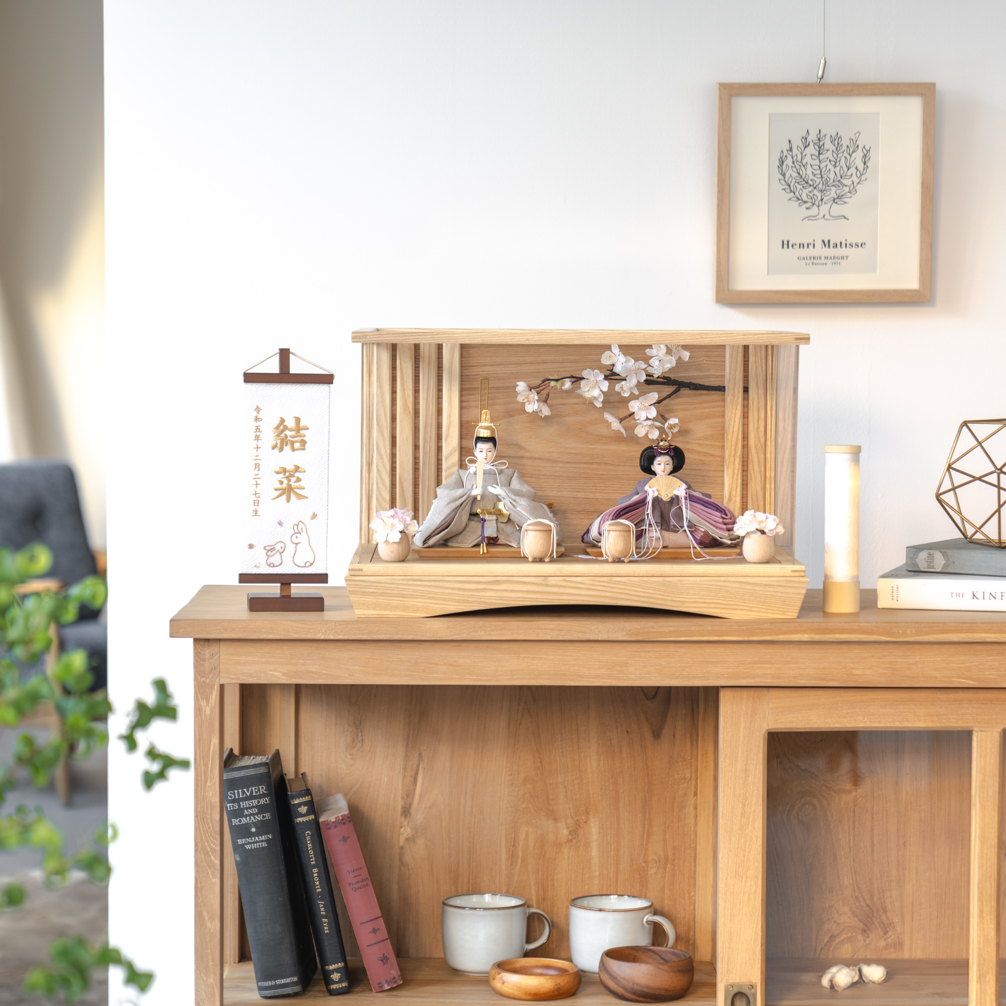 精巧な凛として美しい佇まいを天然木の優しいぬくもりが包み込む・・・まるで女の子の成長を温かく見守る家族の様に・・・そんなコンセプトから生まれた、親しみやすく、お子様と一緒に飾れる「ことの雛人形」です。コンパクトでちょうどいいサイズコンパクトでちょうどいいサイズ今どきのおうちに合わせたコンパクトなサイズに仕上げました。飾るスペースが狭くなりがちなマンションや子ども部屋にもぴったり。お部屋のイメージに調和するデザインお部屋のイメージに調和するデザイン天然木の素材を活かしたシンプルなデザインだから、お部屋の雰囲気にもピッタリ。お衣装へのこだわり(姫)お衣装へのこだわり(姫)姫の袖には野路菊とシクラメンが彩られていおり、身近にある親しみのある草花をモチーフしています。野路菊の花言葉は「真実」「高潔」「高貴」。その高貴な意味合いが、姫の優美さと純粋さを象徴しています。さらに、シクラメンの花言葉は「愛情」「絆」。寒さの中で美しい花を咲かせるため、勇気や希望を象徴する花です。お衣装へのこだわり(殿)お衣装へのこだわり(殿)殿の袖には、日本の原産種である野路菊と、春を告げる福寿草があしらわれています。福寿草の花言葉は「幸せを招く」「永久の幸福」。雪解けと共に春を知らせるように開花する花には、永遠の幸せを願う想いが込められています。手作りへのこだわり〜裂地(きれじ)の裁断手作りへのこだわり〜裂地(きれじ)の裁断和紙で衣裳の各種型紙を作り、へり部分にのみ糊をつけ、裂地裏面に貼り付けます。型紙に沿って裁断して衣裳部品を作っていきます。手作りへのこだわり〜縫製手作りへのこだわり〜縫製姫の十二単の唐衣(からぎぬ)・五衣(いつつぎぬ)・単衣(ひとえ)・裾、殿の着物・裾・中袖等、数多くの衣裳部品をミシン、または手縫いで細やかな部分まで縫い合わせ、折り込み仕上げていきます。手作りへのこだわり〜着付け・振付け手作りへのこだわり〜着付け・振付け仕上がった衣裳は両腕を後方に曲げて羽織らせるようにして着付けます。次にそれぞれの人形の形に振付けます。腕を曲げる角度や手の位置などで全体のバランスを取ります。手作りへのこだわり〜頭差し手作りへのこだわり〜頭差し頭さしは最終の人形検品を兼ねて行われます。包まれた顔紙を外し、汚れ等無いことを確認します。頭と衣紋の中心線が一直線になるように差し込みます。ことのお雛様ことのお雛様お雛様の顔は時代とともに人気のお顔があります。ことのお雛様のお顔は時代に左右されない普遍的なシンプルで可愛らしいお顔となっています。満開の枝桜が彩るケース満開の枝桜が彩るケース桜には縁起の良いことのはじまりや豊かさという意味があります。「お殿様とお雛様が桜の下で未来を誓う」そんなイメージから出来上がりました。ケース飾りでも手に取って本物の質感を感じてほしいケース飾りでも手に取って本物の質感を感じてほしい木都のケース飾りは、本物の素材や質感を感じながら親子で一緒に手に取って飾る体験をしてほしいから、あえて飾る手間を残しています。手間はかかりますが、伝統的な技法で一つひとつ手づくりしています。お子さまの感性を育む天然木へのこだわりお子さまの感性を育む天然木へのこだわり素材には、タモ、ブナといった天然木を使用。お子さまへの一生に一度の贈り物だから、木都は自然素材の天然木にこだわり続けています。※ 生産時期により使用する素材が一部変更になる場合がございます。熟練の職人による確かな手仕事熟練の職人による確かな手仕事伝統工芸の技術を受け継ぐ日本国内の熟練の職人が、一つひとつ丁寧に手づくりしています。おしゃれなギフト包装でお届けしますおしゃれなギフト包装でお届けします和の雰囲気を感じさせる越前和紙のギフト用ラッピングでお届け。料金がわかるものもお入れしていないので、そのまま贈り物として利用できます。商品レビュー記入でもれなくもらえる天然木のミニ名前札プレゼント商品レビュー記入でもれなくもらえる天然木のミニ名前札プレゼントミニサイズのお名前札 (通常販売価格1,980円) をプレゼント♪商品到着後、商品レビューをご記入の上、商品と同梱のチラシ記載のQRコードから応募フォームへ必要事項をご入力ください。店舗よりレビュー特典を発送いたします。※ お名前札の生年月日の表記は和暦となります。(例:令和七年)商品のご注文へ収納方法とセット内容お内裏様・お雛様・ケース・下台・人形小道具・前飾り・駿河行燈×2・花飾り×2素材:タモ重量:3,560g (ケースのみ 2,830g)サイズ:W490mm × D295mm × H305mm梱包時:W550mm × D355mm × H480mm殿:約 W160mm × D140mm × H210mm姫:約 W180mm × D160mm × H120mm注意事項色合いなど実際のものと写真とでは多少の誤差が生じる場合がございます。また、手作りであり天然木を使用している為、多少の仕様の変化や風合いがひとつひとつ異なります。あらかじめご了承ください