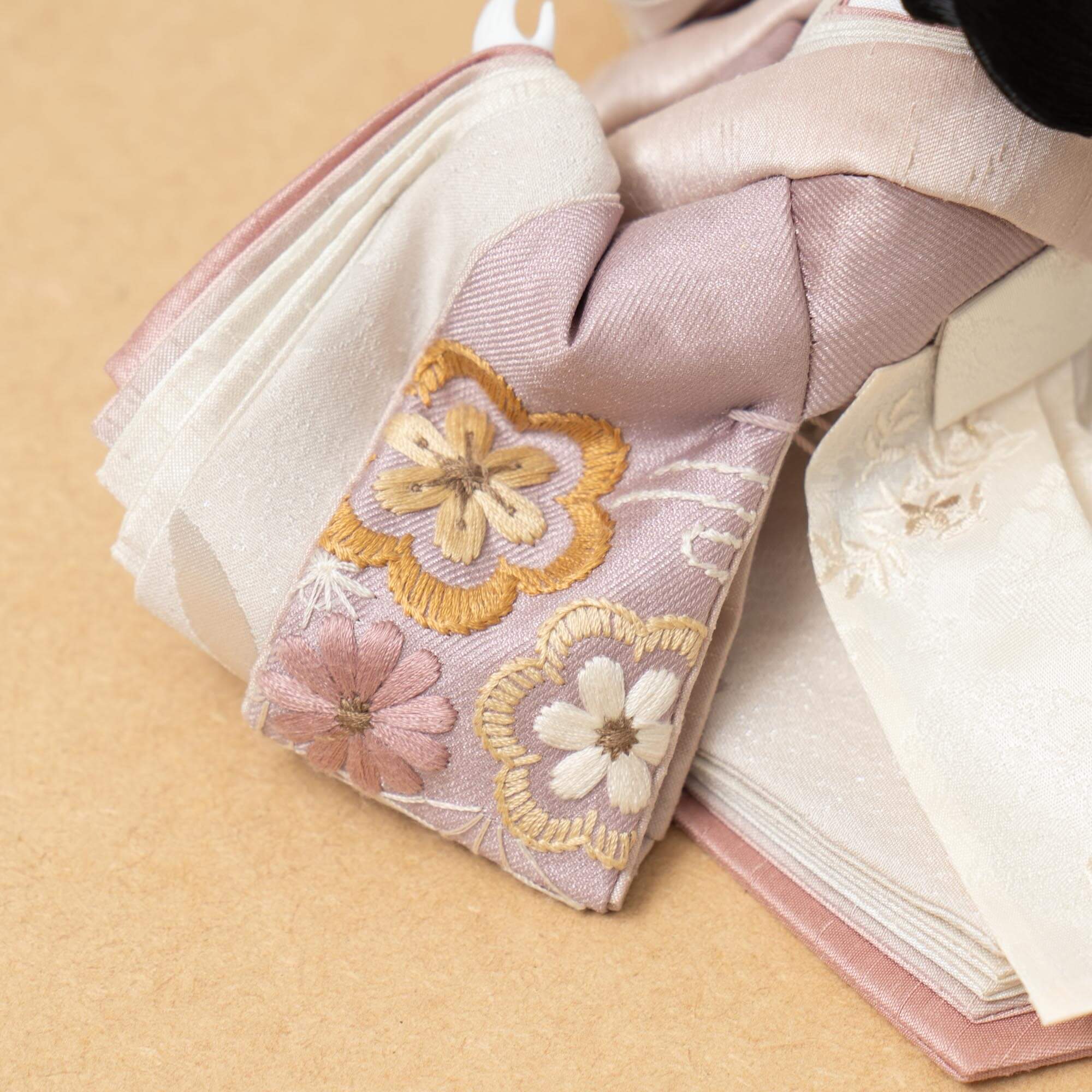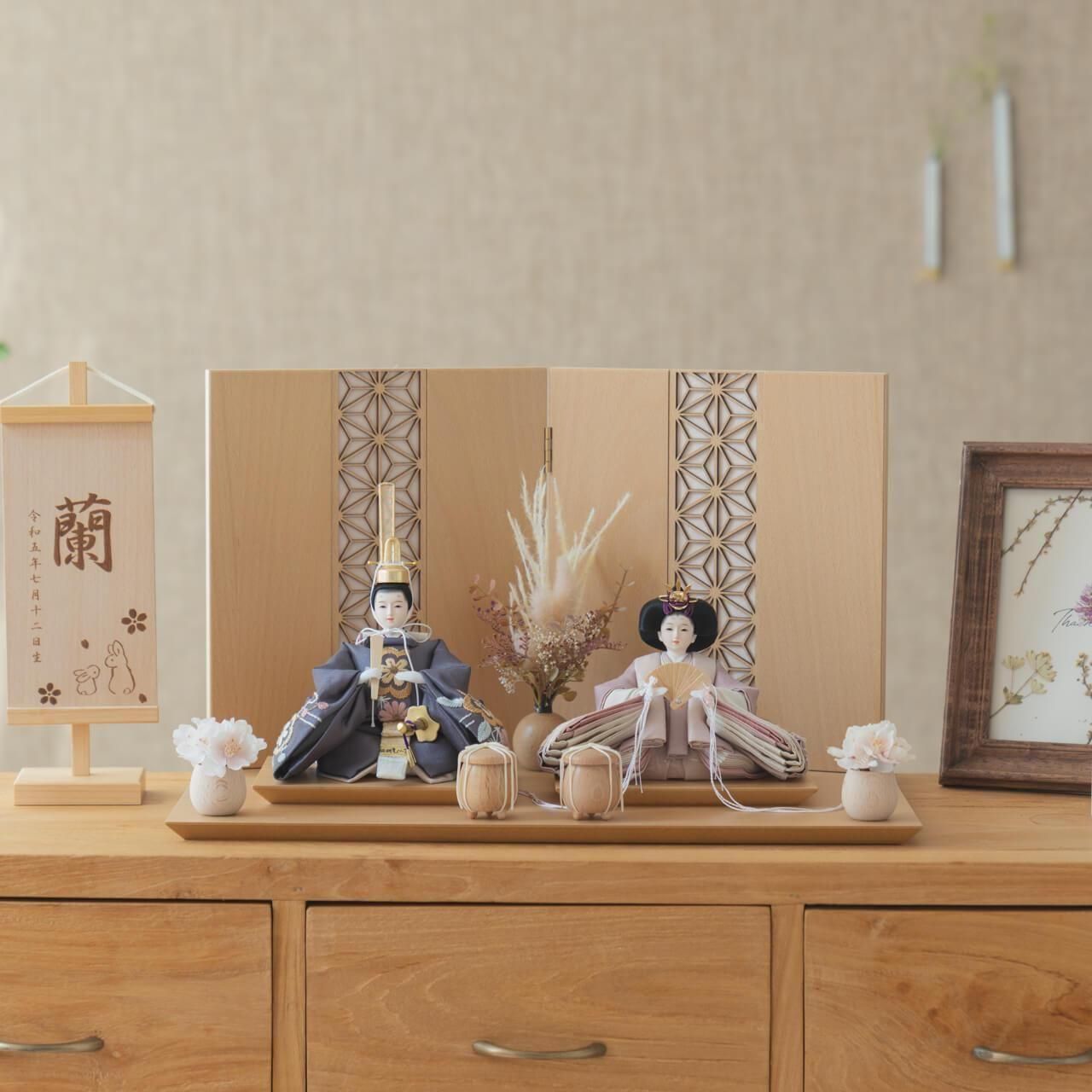 精巧な凛として美しい佇まいを天然木の優しいぬくもりが包み込む・・・まるで女の子の成長を温かく見守る家族の様に・・・そんなコンセプトから生まれた、親しみやすく、お子様と一緒に飾れる「ことの雛人形」です。コンパクトでちょうどいいサイズコンパクトでちょうどいいサイズ今どきのおうちに合わせたコンパクトなサイズに仕上げました。飾るスペースが狭くなりがちなマンションや子ども部屋にもぴったり。お部屋のイメージに調和するデザインお部屋のイメージに調和するデザイン天然木の素材を活かしたシンプルなデザインだから、お部屋の雰囲気にもピッタリ。お衣装へのこだわり(姫)お衣装へのこだわり(姫)お衣装には菊と麻の葉の刺繍を施しています。菊は、長寿や繁栄、高貴さを象徴する花であり、特に日本では天皇や皇室の象徴とされています。そのため、菊文様は格式が高いものとされ、特に公的な場や伝統的な場で使用されることが多いです。また、「不老長寿」や「不変の美」を象徴するものとして尊ばれました。お衣装へのこだわり(殿)お衣装へのこだわり(殿)麻の葉は、日本の伝統的な模様の一つです。麻の葉の形を幾何学的にデザインしたもので、成長と強さの象徴、魔除け、長寿や繁栄の象徴としても用いられています。手作りへのこだわり〜裂地(きれじ)の裁断手作りへのこだわり〜裂地(きれじ)の裁断和紙で衣裳の各種型紙を作り、へり部分にのみ糊をつけ、裂地裏面に貼り付けます。型紙に沿って裁断して衣裳部品を作っていきます。手作りへのこだわり〜縫製手作りへのこだわり〜縫製姫の十二単の唐衣(からぎぬ)・五衣(いつつぎぬ)・単衣(ひとえ)・裾、殿の着物・裾・中袖等、数多くの衣裳部品をミシン、または手縫いで細やかな部分まで縫い合わせ、折り込み仕上げていきます。手作りへのこだわり〜着付け・振付け手作りへのこだわり〜着付け・振付け仕上がった衣裳は両腕を後方に曲げて羽織らせるようにして着付けます。次にそれぞれの人形の形に振付けます。腕を曲げる角度や手の位置などで全体のバランスを取ります。手作りへのこだわり〜頭差し手作りへのこだわり〜頭差し頭さしは最終の人形検品を兼ねて行われます。包まれた顔紙を外し、汚れ等無いことを確認します。頭と衣紋の中心線が一直線になるように差し込みます。ことのお雛様ことのお雛様お雛様の顔は時代とともに人気のお顔があります。ことのお雛様のお顔は時代に左右されない普遍的なシンプルで可愛らしいお顔となっています。健やかな成長への願いを込めた 麻の葉文様健やかな成長への願いを込めた 麻の葉文様古来からの日本伝統の吉祥文様である麻の葉文様。麻の丈夫さ・成長の早さにあやかり、お子さまの健やかな成長への願いが込められています。お子さまの感性を育む天然木へのこだわりお子さまの感性を育む天然木へのこだわり素材には、タモ、ブナといった天然木を使用。お子さまへの一生に一度の贈り物だから、木都は自然素材の天然木にこだわり続けています。※ 生産時期により使用する素材が一部変更になる場合がございます。熟練の職人による確かな手仕事熟練の職人による確かな手仕事伝統工芸の技術を受け継ぐ日本国内の熟練の職人が、一つひとつ丁寧に手づくりしています。おしゃれなギフト包装でお届けしますおしゃれなギフト包装でお届けします和の雰囲気を感じさせる越前和紙のギフト用ラッピングでお届け。料金がわかるものもお入れしていないので、そのまま贈り物として利用できます。商品レビュー記入でもれなくもらえる天然木のミニ名前札プレゼント商品レビュー記入でもれなくもらえる天然木のミニ名前札プレゼントミニサイズのお名前札 (通常販売価格1,980円) をプレゼント♪商品到着後、商品レビューをご記入の上、商品と同梱のチラシ記載のQRコードから応募フォームへ必要事項をご入力ください。店舗よりレビュー特典を発送いたします。※ お名前札の生年月日の表記は和暦となります。(例:令和七年)商品のご注文へ収納方法とセット内容お内裏様・お雛様・屏風・平台・親王台・人形小道具・貝桶×2・花飾り×2・立花屏風は平台と同様に個別でダンボール箱におしまい下さい。親王台は屏風のダンボールに入れます。素材:ブナ重量:2,860g サイズ:W450mm × D300mm × H275mm梱包時:W465mm × D315mm × H205mm殿:約 W150mm × D120mm × H210mm姫:約 W180mm × D170mm × H130mm注意事項色合いなど実際のものと写真とでは多少の誤差が生じる場合がございます。また、手作りであり天然木を使用している為、多少の仕様の変化や風合いがひとつひとつ異なります。あらかじめご了承ください。部品には小さなものがございます。お子様がお口に入れないようにご注意ください。材質により木の刻印の濃淡に差が生じますが不良品ではございません。木製品である限り自然なこととご承知下さいませ。保管場所は変色やカビ、サビの原因になりますので湿気の少ない場所・直