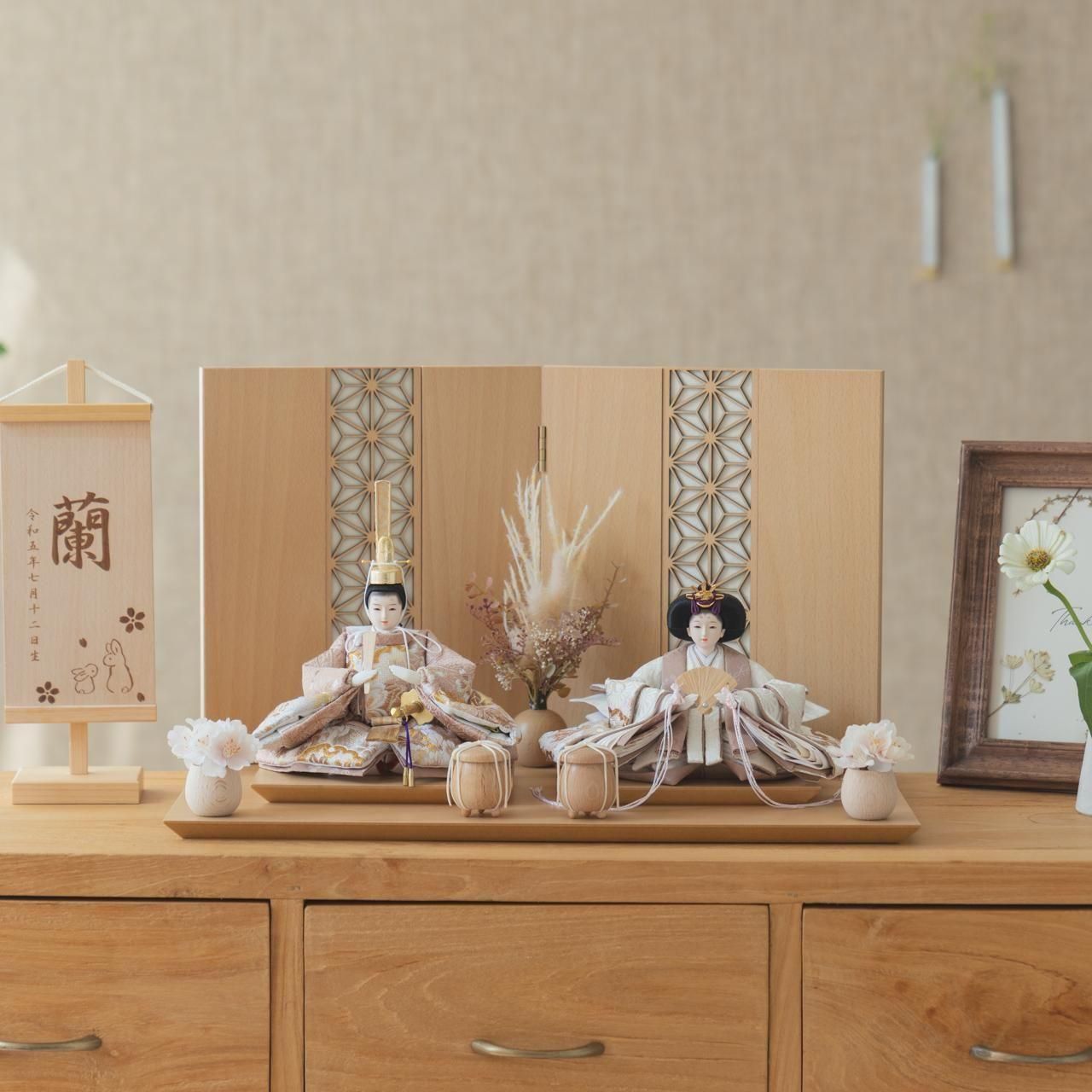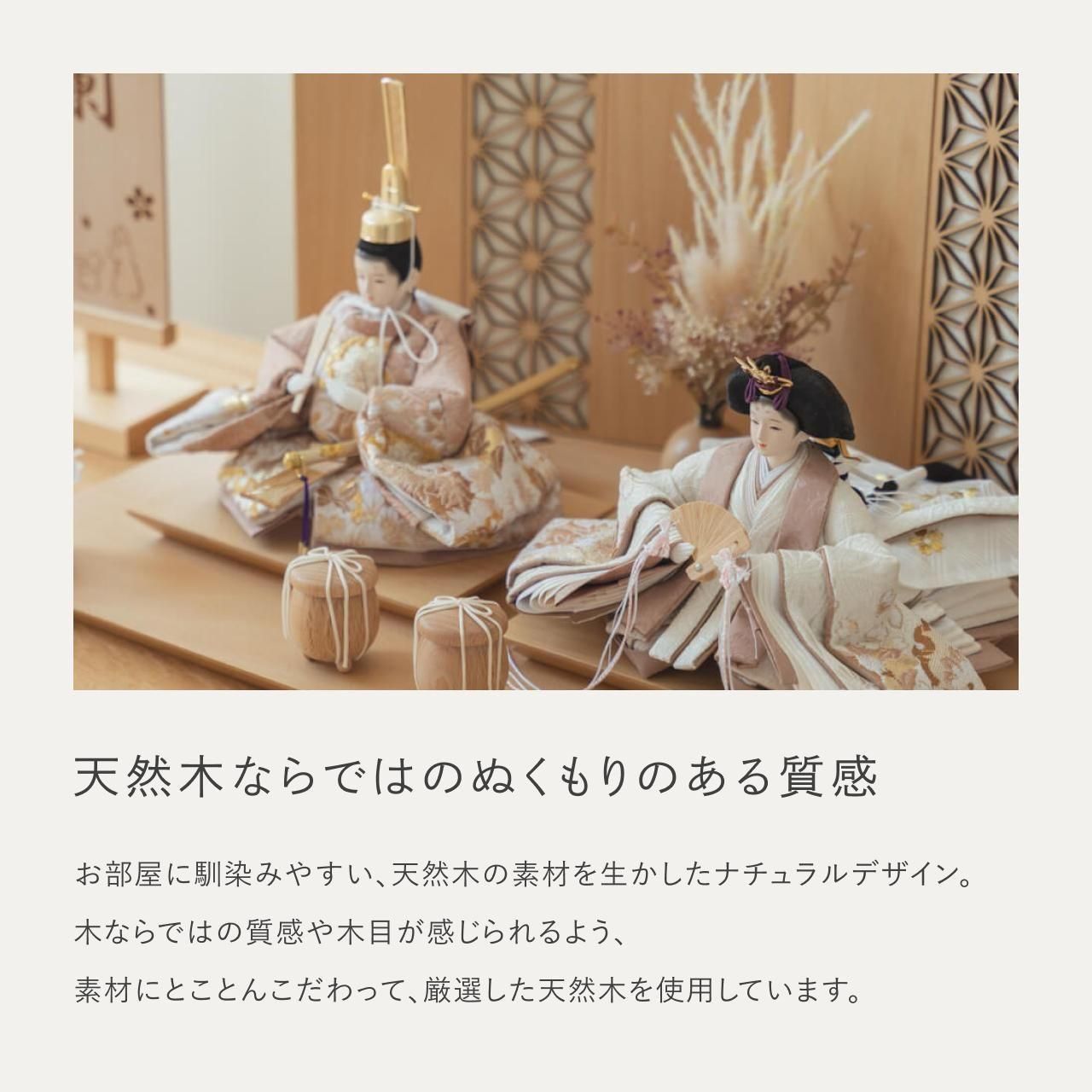精巧な凛として美しい佇まいを天然木の優しいぬくもりが包み込む・・・まるで女の子の成長を温かく見守る家族の様に・・・そんなコンセプトから生まれた、親しみやすく、お子様と一緒に飾れる「ことの雛人形」です。コンパクトでちょうどいいサイズコンパクトでちょうどいいサイズ今どきのおうちに合わせたコンパクトなサイズに仕上げました。飾るスペースが狭くなりがちなマンションや子ども部屋にもぴったり。お部屋のイメージに調和するデザインお部屋のイメージに調和するデザイン天然木の素材を活かしたシンプルなデザインだから、お部屋の雰囲気にもピッタリ。手作りへのこだわり〜裂地(きれじ)の裁断手作りへのこだわり〜裂地(きれじ)の裁断和紙で衣裳の各種型紙を作り、へり部分にのみ糊をつけ、裂地裏面に貼り付けます。型紙に沿って裁断して衣裳部品を作っていきます。手作りへのこだわり〜縫製手作りへのこだわり〜縫製姫の十二単の唐衣(からぎぬ)・五衣(いつつぎぬ)・単衣(ひとえ)・裾、殿の着物・裾・中袖等、数多くの衣裳部品をミシン、または手縫いで細やかな部分まで縫い合わせ、折り込み仕上げていきます。手作りへのこだわり〜着付け・振付け手作りへのこだわり〜着付け・振付け仕上がった衣裳は両腕を後方に曲げて羽織らせるようにして着付けます。次にそれぞれの人形の形に振付けます。腕を曲げる角度や手の位置などで全体のバランスを取ります。手作りへのこだわり〜頭差し手作りへのこだわり〜頭差し頭さしは最終の人形検品を兼ねて行われます。包まれた顔紙を外し、汚れ等無いことを確認します。頭と衣紋の中心線が一直線になるように差し込みます。ことのお雛様ことのお雛様お雛様の顔は時代とともに人気のお顔があります。ことのお雛様のお顔は時代に左右されない普遍的なシンプルで可愛らしいお顔となっています。健やかな成長への願いを込めた 麻の葉文様健やかな成長への願いを込めた 麻の葉文様古来からの日本伝統の吉祥文様である麻の葉文様。麻の丈夫さ・成長の早さにあやかり、お子さまの健やかな成長への願いが込められています。お子さまの感性を育む天然木へのこだわりお子さまの感性を育む天然木へのこだわり素材には、タモ、ブナといった天然木を使用。お子さまへの一生に一度の贈り物だから、木都は自然素材の天然木にこだわり続けています。※ 生産時期により使用する素材が一部変更になる場合がございます。熟練の職人による確かな手仕事熟練の職人による確かな手仕事伝統工芸の技術を受け継ぐ日本国内の熟練の職人が、一つひとつ丁寧に手づくりしています。おしゃれなギフト包装でお届けしますおしゃれなギフト包装でお届けします和の雰囲気を感じさせる越前和紙のギフト用ラッピングでお届け。料金がわかるものもお入れしていないので、そのまま贈り物として利用できます。商品レビュー記入でもれなくもらえる天然木のミニ名前札プレゼント商品レビュー記入でもれなくもらえる天然木のミニ名前札プレゼントミニサイズのお名前札 (通常販売価格1,980円) をプレゼント♪商品到着後、商品レビューをご記入の上、商品と同梱のチラシ記載のQRコードから応募フォームへ必要事項をご入力ください。店舗よりレビュー特典を発送いたします。※ お名前札の生年月日の表記は和暦となります。(例:令和七年)商品のご注文へ収納方法とセット内容お内裏様・お雛様・屏風・平台・親王台・人形小道具・貝桶×2・花飾り×2・立花屏風は平台と同様に個別でダンボール箱におしまい下さい。親王台は屏風のダンボールに入れます。素材:ブナ重量:2,960g サイズ:W450mm × D300mm × H275mm梱包時:W465mm × D315mm × H205mm殿:約 W160mm × D150mm × H210mm姫:約 W190mm × D170mm × H130mm注意事項色合いなど実際のものと写真とでは多少の誤差が生じる場合がございます。また、手作りであり天然木を使用している為、多少の仕様の変化や風合いがひとつひとつ異なります。あらかじめご了承ください。部品には小さなものがございます。お子様がお口に入れないようにご注意ください。材質により木の刻印の濃淡に差が生じますが不良品ではございません。木製品である限り自然なこととご承知下さいませ。保管場所は変色やカビ、サビの原因になりますので湿気の少ない場所・直射日光の当たらない場所に保管してください。雄雛の正面にあります飾り帯のビニールは外さないでください。本商品に行燈は付属しておりません。別途お買い求めください。ご不明点がございましたら > お問い合わせページ からご相談ください。