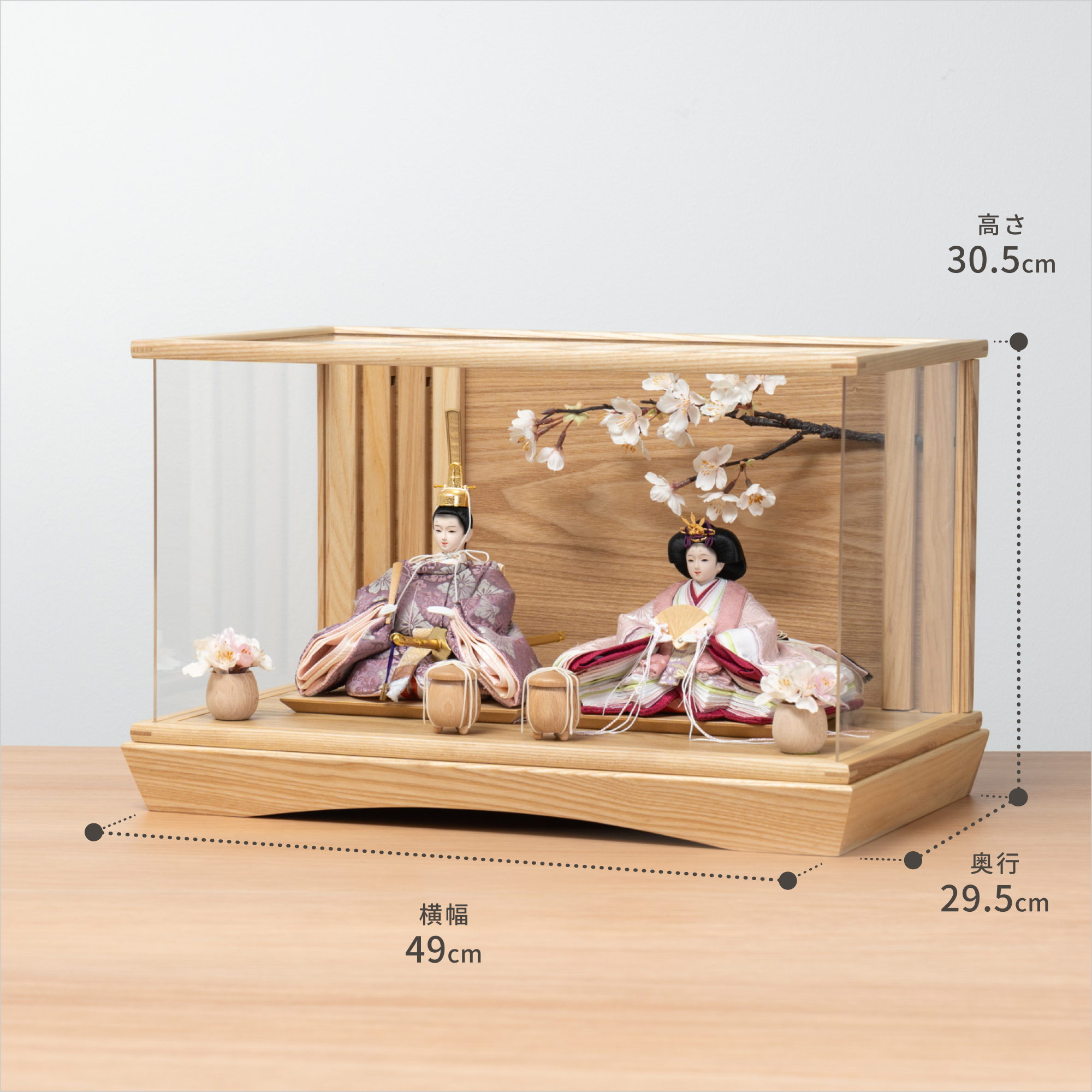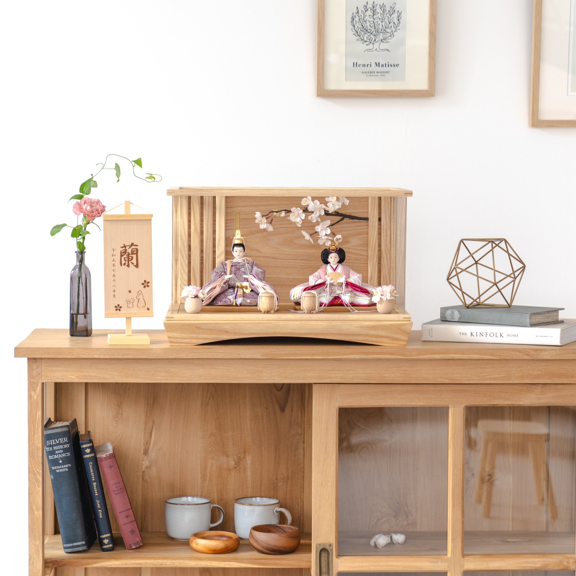 精巧な凛として美しい佇まいを天然木の優しいぬくもりが包み込む・・・まるで女の子の成長を温かく見守る家族の様に・・・そんなコンセプトから生まれた、親しみやすく、お子様と一緒に飾れる「ことの雛人形」です。コンパクトでちょうどいいサイズコンパクトでちょうどいいサイズ今どきのおうちに合わせたコンパクトなサイズに仕上げました。飾るスペースが狭くなりがちなマンションや子ども部屋にもぴったり。お部屋のイメージに調和するデザインお部屋のイメージに調和するデザイン天然木の素材を活かしたシンプルなデザインだから、お部屋の雰囲気にもピッタリ。お衣装へのこだわり(姫)お衣装へのこだわり(姫)小葵紋様は、平安時代に広く使用された伝統的な紋様です。天皇の下襲 (したがさね) や皇族の五衣 (いつつぎぬ) といった装束や調度品にも用いられました。この紋様は冬葵の花と葉を象ったもので、花の周りを4枚の葉が囲む連続模様が特徴です。お衣装へのこだわり(殿)お衣装へのこだわり(殿)葵 (あおい) は古くから「アフヒ」とも呼ばれており、「アフヒ」には「神をもてなす日」という意味が込められているとされています。葵の花には、長寿や繁栄、高貴さを象徴する花であり、子供の成長を願う想いが込められています。手作りへのこだわり〜裂地(きれじ)の裁断手作りへのこだわり〜裂地(きれじ)の裁断和紙で衣裳の各種型紙を作り、へり部分にのみ糊をつけ、裂地裏面に貼り付けます。型紙に沿って裁断して衣裳部品を作っていきます。手作りへのこだわり〜縫製手作りへのこだわり〜縫製姫の十二単の唐衣(からぎぬ)・五衣(いつつぎぬ)・単衣(ひとえ)・裾、殿の着物・裾・中袖等、数多くの衣裳部品をミシン、または手縫いで細やかな部分まで縫い合わせ、折り込み仕上げていきます。手作りへのこだわり〜着付け・振付け手作りへのこだわり〜着付け・振付け仕上がった衣裳は両腕を後方に曲げて羽織らせるようにして着付けます。次にそれぞれの人形の形に振付けます。腕を曲げる角度や手の位置などで全体のバランスを取ります。手作りへのこだわり〜頭差し手作りへのこだわり〜頭差し頭さしは最終の人形検品を兼ねて行われます。包まれた顔紙を外し、汚れ等無いことを確認します。頭と衣紋の中心線が一直線になるように差し込みます。ことのお雛様ことのお雛様お雛様の顔は時代とともに人気のお顔があります。ことのお雛様のお顔は時代に左右されない普遍的なシンプルで可愛らしいお顔となっています。満開の枝桜が彩るケース満開の枝桜が彩るケース桜には縁起の良いことのはじまりや豊かさという意味があります。「お殿様とお雛様が桜の下で未来を誓う」そんなイメージから出来上がりました。ケース飾りでも手に取って本物の質感を感じてほしいケース飾りでも手に取って本物の質感を感じてほしい木都のケース飾りは、本物の素材や質感を感じながら親子で一緒に手に取って飾る体験をしてほしいから、あえて飾る手間を残しています。手間はかかりますが、伝統的な技法で一つひとつ手づくりしています。お子さまの感性を育む天然木へのこだわりお子さまの感性を育む天然木へのこだわり素材には、タモ、ブナといった天然木を使用。お子さまへの一生に一度の贈り物だから、木都は自然素材の天然木にこだわり続けています。※ 生産時期により使用する素材が一部変更になる場合がございます。熟練の職人による確かな手仕事熟練の職人による確かな手仕事伝統工芸の技術を受け継ぐ日本国内の熟練の職人が、一つひとつ丁寧に手づくりしています。おしゃれなギフト包装でお届けしますおしゃれなギフト包装でお届けします和の雰囲気を感じさせる越前和紙のギフト用ラッピングでお届け。料金がわかるものもお入れしていないので、そのまま贈り物として利用できます。商品レビュー記入でもれなくもらえる天然木のミニ名前札プレゼント商品レビュー記入でもれなくもらえる天然木のミニ名前札プレゼントミニサイズのお名前札 (通常販売価格1,980円) をプレゼント♪商品到着後、商品レビューをご記入の上、商品と同梱のチラシ記載のQRコードから応募フォームへ必要事項をご入力ください。店舗よりレビュー特典を発送いたします。※ お名前札の生年月日の表記は和暦となります。(例:令和七年)商品のご注文へ収納方法とセット内容お内裏様・お雛様・ケース・下台・人形小道具・貝桶×2・花飾り×2・電源ケーブル素材:タモ重量:3,660g (ケースのみ 2,830g)サイズ:W490mm × D295mm × H305mm梱包時:W550mm × D355mm × H480mm殿:約 W160mm × D150mm × H210mm姫:約 W200mm × D170mm × H140mm注意事項色合いなど実際のものと写真とでは多少の誤差が生じる場合がございます。また、手作りであり天然木を使用している為、多少の仕様の変化や風合いがひとつひとつ異なります。あらかじめご了承ください。部品には小さなものがございます。お子様がお口に入れないようにご注意くだ