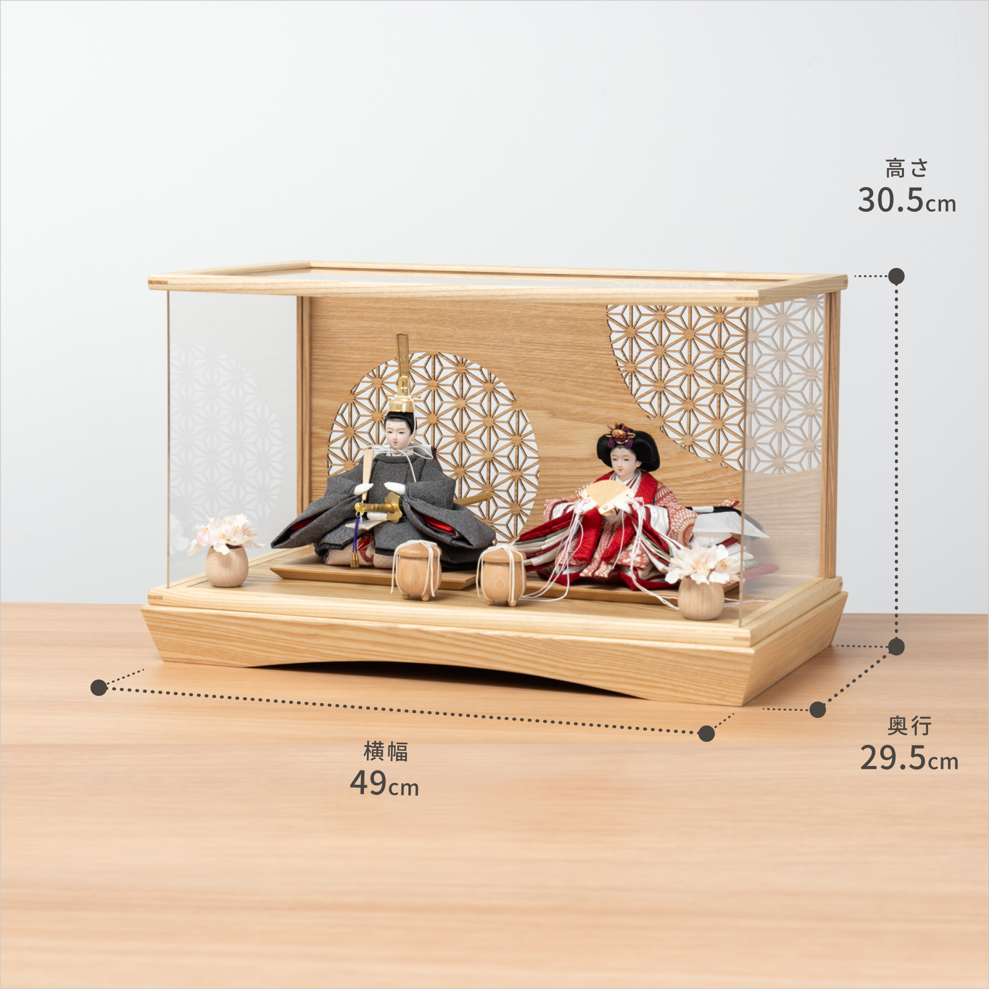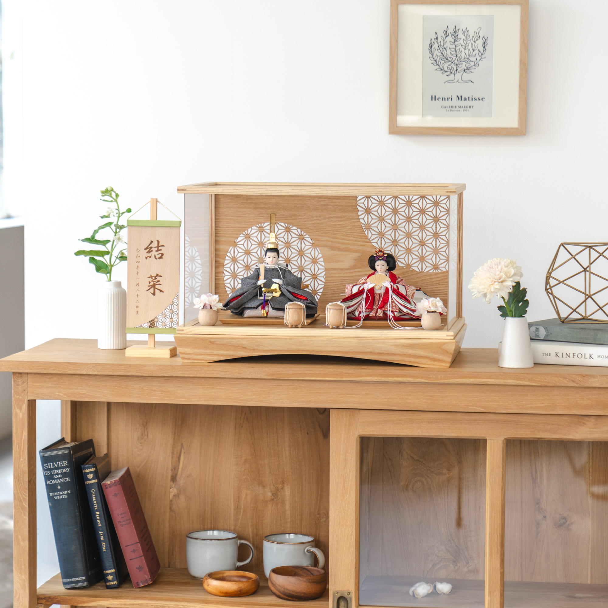 精巧な凛として美しい佇まいを天然木の優しいぬくもりが包み込む・・・まるで女の子の成長を温かく見守る家族の様に・・・そんなコンセプトから生まれた、親しみやすく、お子様と一緒に飾れる「ことの雛人形」です。コンパクトでちょうどいいサイズコンパクトでちょうどいいサイズ今どきのおうちに合わせたコンパクトなサイズに仕上げました。飾るスペースが狭くなりがちなマンションや子ども部屋にもぴったり。お部屋のイメージに調和するデザインお部屋のイメージに調和するデザイン天然木の素材を活かしたシンプルなデザインだから、お部屋の雰囲気にもピッタリ。お衣装へのこだわり (姫)お衣装へのこだわり (姫)人間国宝 芹沢銈介の技法が重要無形文化財に指定された際に初めて使用されたものです。その技法はまず、個性的な下絵がかかれ、絵模様が創案され型彫り、染色にいたる工程のほとんどを一人でこなすものとなります。型紙を用いて図柄以外の余白部分を切り落とし、切り取った部分に糊で防染することで染まらないようにして図柄を染め、染色後に防染糊を洗い流すという染色技法です。お衣装へのこだわり (殿)お衣装へのこだわり (殿)「草木染め」は天然の植物から取り出した染料を使って布や糸を染める染色方法です。草木染めで染めた布は、化学染料を使って染めた布にはない、優しく深みのある色に染まります手作りへのこだわり〜裂地(きれじ)の裁断手作りへのこだわり〜裂地(きれじ)の裁断和紙で衣裳の各種型紙を作り、へり部分にのみ糊をつけ、裂地裏面に貼り付けます。型紙に沿って裁断して衣裳部品を作っていきます。手作りへのこだわり〜縫製手作りへのこだわり〜縫製姫の十二単の唐衣(からぎぬ)・五衣(いつつぎぬ)・単衣(ひとえ)・裾、殿の着物・裾・中袖等、数多くの衣裳部品をミシン、または手縫いで細やかな部分まで縫い合わせ、折り込み仕上げていきます。手作りへのこだわり〜着付け・振付け手作りへのこだわり〜着付け・振付け仕上がった衣裳は両腕を後方に曲げて羽織らせるようにして着付けます。次にそれぞれの人形の形に振付けます。腕を曲げる角度や手の位置などで全体のバランスを取ります。手作りへのこだわり〜頭差し手作りへのこだわり〜頭差し頭さしは最終の人形検品を兼ねて行われます。包まれた顔紙を外し、汚れ等無いことを確認します。頭と衣紋の中心線が一直線になるように差し込みます。ことのお雛様ことのお雛様お雛様の顔は時代とともに人気のお顔があります。ことのお雛様のお顔は時代に左右されない普遍的なシンプルで可愛らしいお顔となっています。健やかな成長への願いを込めた 麻の葉文様健やかな成長への願いを込めた 麻の葉文様古来からの日本伝統の吉祥文様である麻の葉文様。麻の丈夫さ・成長の早さにあやかり、お子さまの健やかな成長への願いが込められています。ケース飾りでも手に取って本物の質感を感じてほしいケース飾りでも手に取って本物の質感を感じてほしい木都のケース飾りは、本物の素材や質感を感じながら親子で一緒に手に取って飾る体験をしてほしいから、あえて飾る手間を残しています。手間はかかりますが、伝統的な技法で一つひとつ手づくりしています。お子さまの感性を育む天然木へのこだわりお子さまの感性を育む天然木へのこだわり素材には、タモ、ブナといった天然木を使用。お子さまへの一生に一度の贈り物だから、木都は自然素材の天然木にこだわり続けています。※ 生産時期により使用する素材が一部変更になる場合がございます。熟練の職人による確かな手仕事熟練の職人による確かな手仕事伝統工芸の技術を受け継ぐ日本国内の熟練の職人が、一つひとつ丁寧に手づくりしています。おしゃれなギフト包装でお届けしますおしゃれなギフト包装でお届けします和の雰囲気を感じさせる越前和紙のギフト用ラッピングでお届け。料金がわかるものもお入れしていないので、そのまま贈り物として利用できます。商品レビュー記入でもれなくもらえる天然木のミニ名前札プレゼント商品レビュー記入でもれなくもらえる天然木のミニ名前札プレゼントミニサイズのお名前札 (通常販売価格1,980円) をプレゼント♪商品到着後、商品レビューをご記入の上、商品と同梱のチラシ記載のQRコードから応募フォームへ必要事項をご入力ください。店舗よりレビュー特典を発送いたします。※ お名前札の生年月日の表記は和暦となります。(例:令和七年)商品のご注文へ収納方法とセット内容お内裏様・お雛様・ケース・下台・人形小道具・貝桶×2・花飾り×2素材:ブナ重量:3,300g (ケースのみ 2,530g)サイズ:W490mm × D295mm × H305mm梱包時:W550mm × D355mm × H480mm殿:約 W170mm × D150mm × H210mm姫:約 W200mm × D180mm × H130mm注意事項色合いなど実際のものと写真とでは多少の誤差が生じる場合がございます。また、手作りであり天然木を使用している為、多少の仕様の変化や風合いがひとつひとつ異なりま