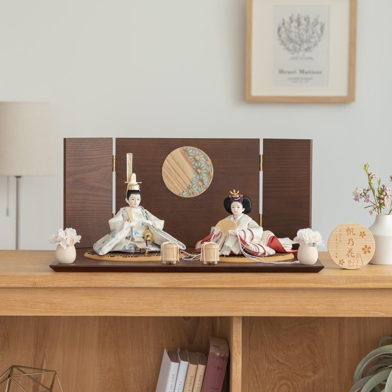 精巧な凛として美しい佇まいを天然木の優しいぬくもりが包み込む・・・まるで女の子の成長を温かく見守る家族の様に・・・そんなコンセプトから生まれた、親しみやすく、お子様と一緒に飾れる「ことの雛人形」です。コンパクトでちょうどいいサイズコンパクトでちょうどいいサイズ今どきのおうちに合わせたコンパクトなサイズに仕上げました。飾るスペースが狭くなりがちなマンションや子ども部屋にもぴったり。お部屋のイメージに調和するデザインお部屋のイメージに調和するデザイン天然木の素材を活かしたシンプルなデザインだから、お部屋の雰囲気にもピッタリ。雪輪流水紋様雪輪流水紋様白地の地紋には日本古来から愛され縁起の良い紋様して伝わる七宝紋様も施されております。流水柄は落ち着いた現代色で雛人形様に織り上げた別誂の西陣織となります。手作りへのこだわり〜裂地(きれじ)の裁断手作りへのこだわり〜裂地(きれじ)の裁断和紙で衣裳の各種型紙を作り、へり部分にのみ糊をつけ、裂地裏面に貼り付けます。型紙に沿って裁断して衣裳部品を作っていきます。手作りへのこだわり〜縫製手作りへのこだわり〜縫製姫の十二単の唐衣(からぎぬ)・五衣(いつつぎぬ)・単衣(ひとえ)・裾、殿の着物・裾・中袖等、数多くの衣裳部品をミシン、または手縫いで細やかな部分まで縫い合わせ、折り込み仕上げていきます。手作りへのこだわり〜着付け・振付け手作りへのこだわり〜着付け・振付け仕上がった衣裳は両腕を後方に曲げて羽織らせるようにして着付けます。次にそれぞれの人形の形に振付けます。腕を曲げる角度や手の位置などで全体のバランスを取ります。手作りへのこだわり〜頭差し手作りへのこだわり〜頭差し頭さしは最終の人形検品を兼ねて行われます。包まれた顔紙を外し、汚れ等無いことを確認します。頭と衣紋の中心線が一直線になるように差し込みます。ことのお雛様ことのお雛様お雛様の顔は時代とともに人気のお顔があります。ことのお雛様のお顔は時代に左右されない普遍的なシンプルで可愛らしいお顔となっています。日本の伝統柄 麻の葉日本の伝統柄 麻の葉模様は、麻の葉と呼ばれています。麻の丈夫さ・成長の早さにあやかり、子供の健やかな成長の願いが込められています。お子さまの感性を育む天然木へのこだわりお子さまの感性を育む天然木へのこだわり素材には、タモ、ブナといった天然木を使用。お子さまへの一生に一度の贈り物だから、木都は自然素材の天然木にこだわり続けています。※ 生産時期により使用する素材が一部変更になる場合がございます。熟練の職人による確かな手仕事熟練の職人による確かな手仕事伝統工芸の技術を受け継ぐ日本国内の熟練の職人が、一つひとつ丁寧に手づくりしています。おしゃれなギフト包装でお届けしますおしゃれなギフト包装でお届けします和の雰囲気を感じさせる越前和紙のギフト用ラッピングでお届け。料金がわかるものもお入れしていないので、そのまま贈り物として利用できます。商品レビュー記入でもれなくもらえる天然木のミニ名前札プレゼント商品レビュー記入でもれなくもらえる天然木のミニ名前札プレゼントミニサイズのお名前札 (通常販売価格1,980円) をプレゼント♪商品到着後、商品レビューをご記入の上、商品と同梱のチラシ記載のQRコードから応募フォームへ必要事項をご入力ください。店舗よりレビュー特典を発送いたします。※ お名前札の生年月日の表記は和暦となります。(例:令和七年)商品のご注文へ収納方法とセット内容お内裏様・お雛様・屏風・平台・親王台・人形小道具・貝桶×2・花飾り×2屏風は平台と同様に個別でダンボール箱におしまい下さい。親王台は屏風のダンボールに入れます。素材:タモ重量:2,500g サイズ:W485mm × D290mm × H215mm梱包時:W550mm × D355mm × H480mm殿:約 W155mm × D120mm × H200mm姫:約 W155mm × D175mm × H120mm注意事項色合いなど実際のものと写真とでは多少の誤差が生じる場合がございます。また、手作りであり天然木を使用している為、多少の仕様の変化や風合いがひとつひとつ異なります。あらかじめご了承ください。部品には小さなものがございます。お子様がお口に入れないようにご注意ください。材質により木の刻印の濃淡に差が生じますが不良品ではございません。木製品である限り自然なこととご承知下さいませ。保管場所は変色やカビ、サビの原因になりますので湿気の少ない場所・直射日光の当たらない場所に保管してください。雄雛の正面にあります飾り帯のビニールは外さないでください。本商品に行燈は付属しておりません。別途お買い求めください。受注生産品のため、時期によりお届け時期が前後する場合がございます。ご不明点がございましたら > お問い合わせページ からご相談ください。