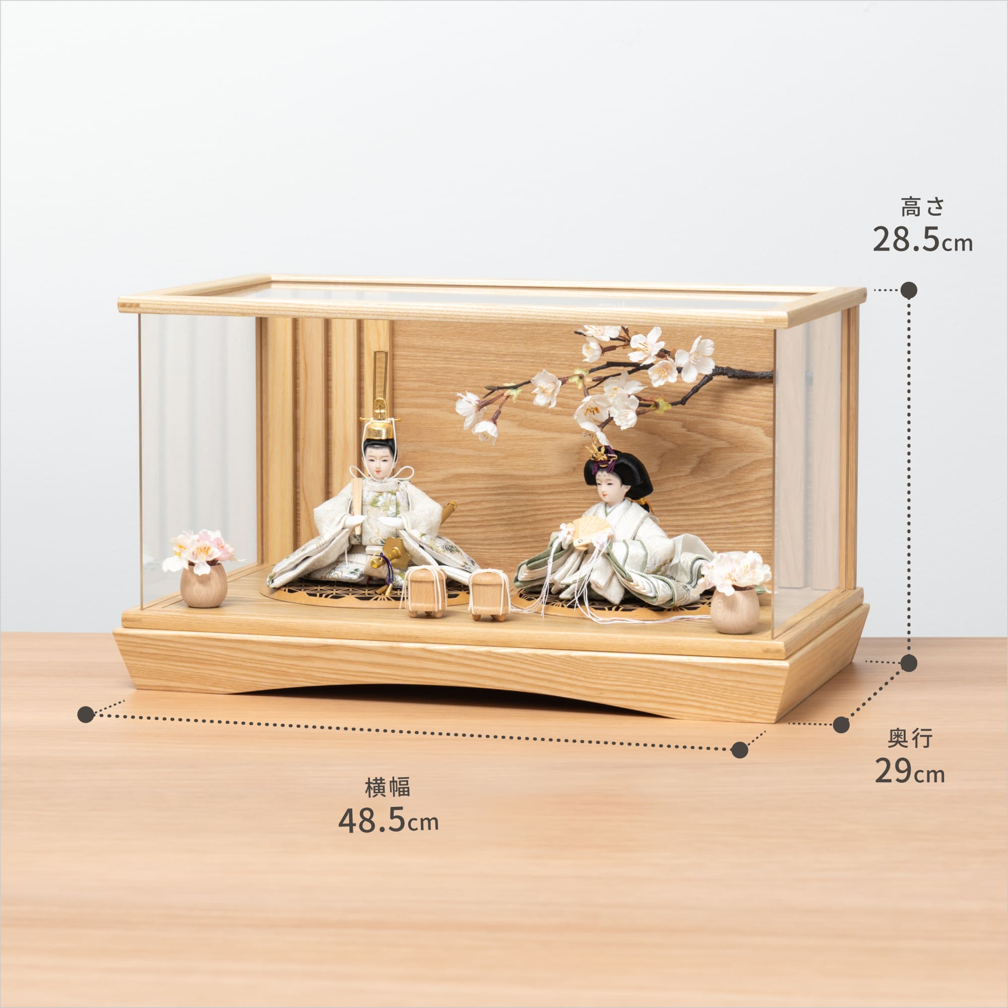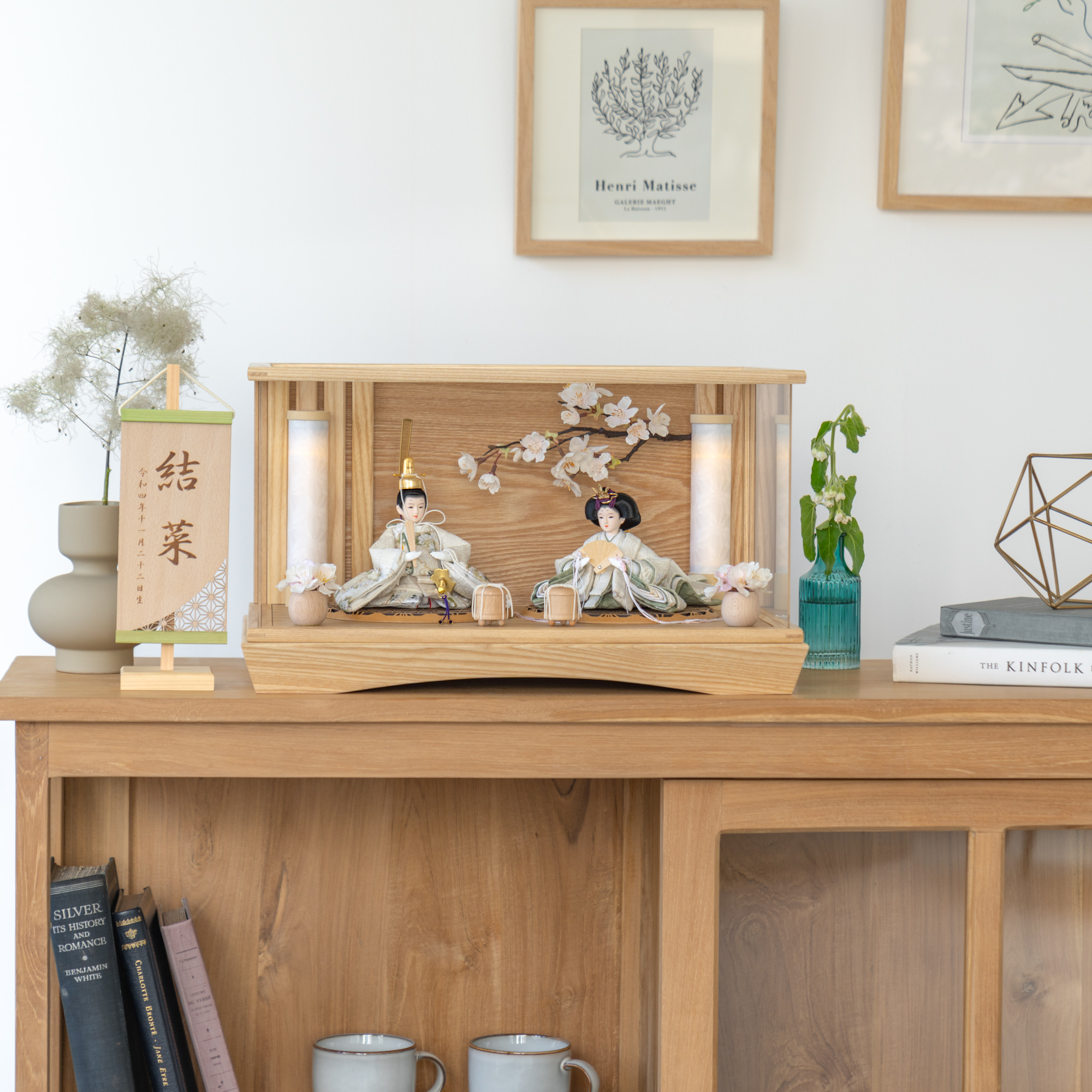 精巧な凛として美しい佇まいを天然木の優しいぬくもりが包み込む・・・まるで女の子の成長を温かく見守る家族の様に・・・そんなコンセプトから生まれた、親しみやすく、お子様と一緒に飾れる「ことの雛人形」です。コンパクトでちょうどいいサイズコンパクトでちょうどいいサイズ今どきのおうちに合わせたコンパクトなサイズに仕上げました。飾るスペースが狭くなりがちなマンションや子ども部屋にもぴったり。お部屋のイメージに調和するデザインお部屋のイメージに調和するデザイン天然木の素材を活かしたシンプルなデザインだから、お部屋の雰囲気にもピッタリ。雪輪流水紋様雪輪流水紋様白地の地紋には日本古来から愛され縁起の良い紋様して伝わる七宝紋様も施されております。流水柄は落ち着いた現代色で雛人形様に織り上げた別誂の西陣織となります。手作りへのこだわり〜裂地(きれじ)の裁断手作りへのこだわり〜裂地(きれじ)の裁断和紙で衣裳の各種型紙を作り、へり部分にのみ糊をつけ、裂地裏面に貼り付けます。型紙に沿って裁断して衣裳部品を作っていきます。手作りへのこだわり〜縫製手作りへのこだわり〜縫製姫の十二単の唐衣(からぎぬ)・五衣(いつつぎぬ)・単衣(ひとえ)・裾、殿の着物・裾・中袖等、数多くの衣裳部品をミシン、または手縫いで細やかな部分まで縫い合わせ、折り込み仕上げていきます。手作りへのこだわり〜着付け・振付け手作りへのこだわり〜着付け・振付け仕上がった衣裳は両腕を後方に曲げて羽織らせるようにして着付けます。次にそれぞれの人形の形に振付けます。腕を曲げる角度や手の位置などで全体のバランスを取ります。手作りへのこだわり〜頭差し手作りへのこだわり〜頭差し頭さしは最終の人形検品を兼ねて行われます。包まれた顔紙を外し、汚れ等無いことを確認します。頭と衣紋の中心線が一直線になるように差し込みます。ことのお雛様ことのお雛様お雛様の顔は時代とともに人気のお顔があります。ことのお雛様のお顔は時代に左右されない普遍的なシンプルで可愛らしいお顔となっています。満開の枝桜が彩るケース満開の枝桜が彩るケース桜には縁起の良いことのはじまりや豊かさという意味があります。「お殿様とお雛様が桜の下で未来を誓う」そんなイメージから出来上がりました。お子さまの感性を育む天然木へのこだわりお子さまの感性を育む天然木へのこだわり素材には、タモ、ブナといった天然木を使用。お子さまへの一生に一度の贈り物だから、木都は自然素材の天然木にこだわり続けています。※ 生産時期により使用する素材が一部変更になる場合がございます。熟練の職人による確かな手仕事熟練の職人による確かな手仕事伝統工芸の技術を受け継ぐ日本国内の熟練の職人が、一つひとつ丁寧に手づくりしています。おしゃれなギフト包装でお届けしますおしゃれなギフト包装でお届けします和の雰囲気を感じさせる越前和紙のギフト用ラッピングでお届け。料金がわかるものもお入れしていないので、そのまま贈り物として利用できます。商品レビュー記入でもれなくもらえる天然木のミニ名前札プレゼント商品レビュー記入でもれなくもらえる天然木のミニ名前札プレゼントミニサイズのお名前札 (通常販売価格1,980円) をプレゼント♪商品到着後、商品レビューをご記入の上、商品と同梱のチラシ記載のQRコードから応募フォームへ必要事項をご入力ください。店舗よりレビュー特典を発送いたします。※ お名前札の生年月日の表記は和暦となります。(例:令和七年)商品のご注文へ収納方法とセット内容お内裏様・お雛様・ケース・下台・親王台・人形小道具・貝桶×2・花飾り×2素材:タモ重量:3,230g (ケースのみ 2,780g)サイズ:W485mm × D290mm × H285mm梱包時:W550mm × D355mm × H480mm殿:約 W155mm × D120mm × H200mm姫:約 W155mm × D175mm × H120mm注意事項色合いなど実際のものと写真とでは多少の誤差が生じる場合がございます。また、手作りであり天然木を使用している為、多少の仕様の変化や風合いがひとつひとつ異なります。あらかじめご了承ください。部品には小さなものがございます。お子様がお口に入れないようにご注意ください。材質により木の刻印の濃淡に差が生じますが不良品ではございません。木製品である限り自然なこととご承知下さいませ。保管場所は変色やカビ、サビの原因になりますので湿気の少ない場所・直射日光の当たらない場所に保管してください。雄雛の正面にあります飾り帯のビニールは外さないでください。本商品に行燈は付属しておりません。別途お買い求めください。受注生産品のため、時期によりお届け時期が前後する場合がございます。ご不明点がございましたら > お問い合わせページ からご相談ください。