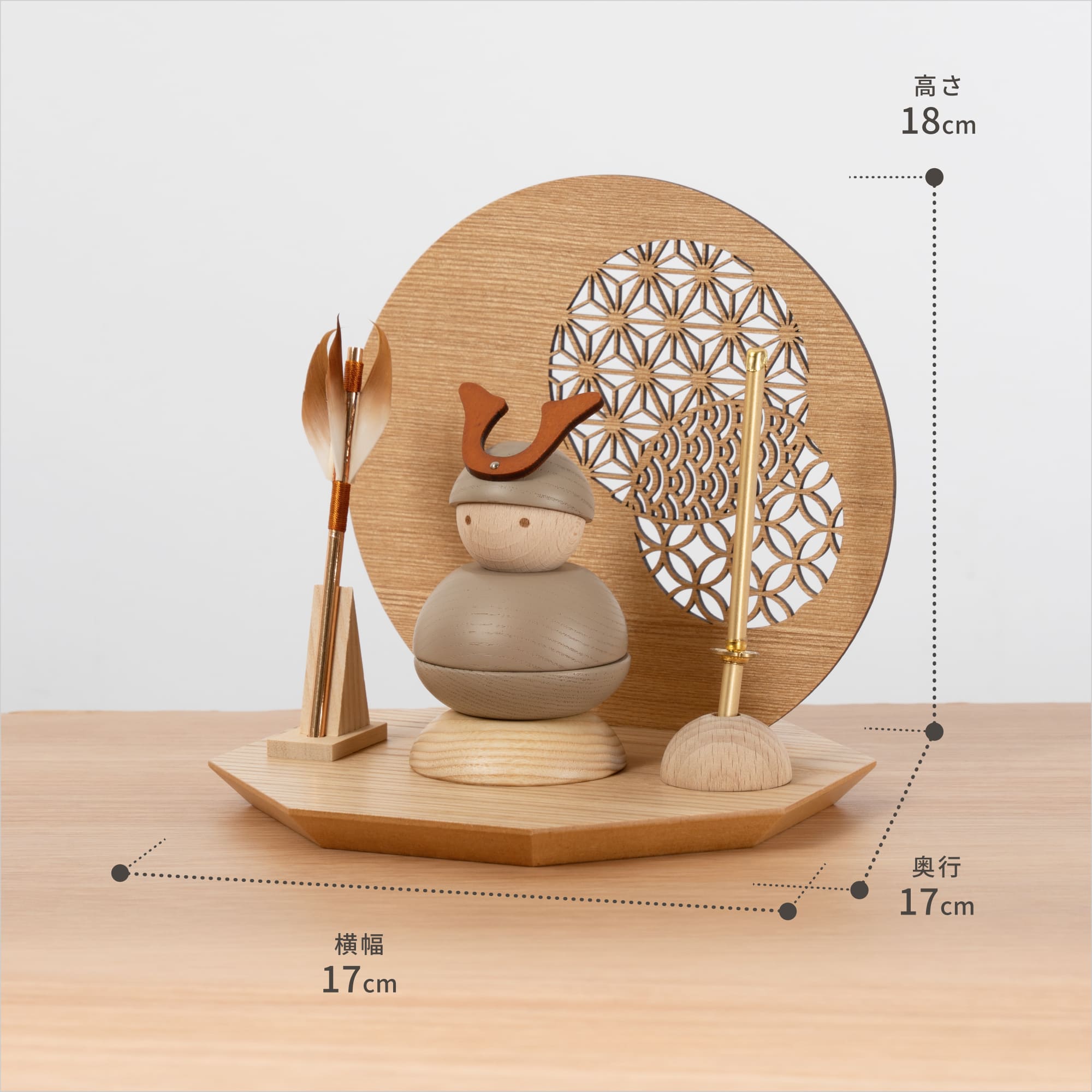 実際に手に取ると天然木の素材ならではの優しいぬくもりが伝わります。てづくり工房「木都」の職人が、伝統工芸の技術と天然木の素材を活かし、真心込めて1つ1つ丁寧につくりました。親しみやすく、お子様と一緒に飾れる積み木のような五月人形です。※ 細かい部品が含まれています。3歳未満のお子様は、保護者の方と一緒にお遊びください。コンパクトでちょうどいいサイズコンパクトでちょうどいいサイズ今どきのおうちに合わせたコンパクトなサイズに仕上げました。飾るスペースが狭くなりがちなマンションや子ども部屋にもぴったり。手にとって遊べる五月人形手にとって遊べる五月人形ことの木製鎧は、ちゃんと手にとって遊べる五月人形をコンセプトに設計されています。顔の角度や胴体の組み合わせなど自由自在。小さなお子様と遊びながら、健やかな成長を願う・・・そんな今しか体験できない「節句」をお過ごし下さい。お部屋のイメージに調和するデザインお部屋のイメージに調和するデザイン天然木の素材を活かしたシンプルなデザインだから、お部屋の雰囲気にもピッタリ。日本の伝統柄 吉祥文様日本の伝統柄 吉祥文様日本の伝統柄である七宝、麻の葉、青海波を組み合わせた縁起の良い吉祥柄です。円形が連鎖し続ける七宝模様には、円満や調和の意味が込められています。麻の葉模様は、その丈夫さと成長の早さにあやかり、子供の健やかな成長を願い、青海波は、穏やかな波がどこまでも続く様子を表して「未来永劫の平穏」を象徴しています。お子さまの感性を育む天然木へのこだわりお子さまの感性を育む天然木へのこだわり素材には、タモ、ブナといった天然木を使用。お子さまへの一生に一度の贈り物だから、木都は自然素材の天然木にこだわり続けています。※ 生産時期により使用する素材が一部変更になる場合がございます。熟練の職人による確かな手仕事熟練の職人による確かな手仕事伝統工芸の技術を受け継ぐ日本国内の熟練の職人が、一つひとつ丁寧に手づくりしています。おしゃれなギフト包装でお届けしますおしゃれなギフト包装でお届けします和の雰囲気を感じさせる越前和紙のギフト用ラッピングでお届け。料金がわかるものもお入れしていないので、そのまま贈り物として利用できます。商品レビュー記入でもれなくもらえる天然木のミニ名前札プレゼント商品レビュー記入でもれなくもらえる天然木のミニ名前札プレゼントミニサイズのお名前札 (通常販売価格1,980円) をプレゼント♪商品到着後、商品レビューをご記入の上、商品と同梱のチラシ記載のQRコードから応募フォームへ必要事項をご入力ください。店舗よりレビュー特典を発送いたします。※ お名前札の生年月日の表記は和暦となります。(例:令和七年)商品のご注文へ収納方法とセット内容兜(顔・首・胴体・胴体中・胴体下)・衝立・矢羽・刀・刀受・平台素材:タモ・ブナ重量:370gサイズ:W170mm × D170mm × H180mm梱包時:W215mm × D215mm × H80mm人形のみ:約 W60mm × D60mm × H110mm注意事項※色合いなど実際のものと写真とでは多少の誤差が生じる場合がございます。また、手作りであり天然木を使用している為、多少の仕様の変化や風合いがひとつひとつ異なります。あらかじめご了承ください。※部品には小さなものがございます。お子様がお口に入れないようにご注意ください。※観賞用ではございますが手にとって遊んでいただくことも可能です。※首は取り外し可能です。顔の角度をお好みで調整してお楽しみ下さい。※鍬形部は折れやすくなっております。強い衝撃を与えたり落としたりしないで下さい。※材質により目の刻印の濃淡に差が生じますが不良品ではございません。木製品である限り自然なこととご承知下さいませ。※保管場所は変色やカビ、サビの原因になりますので湿気の少ない場所・直射日光の当たらない場所に保管してください。※受注生産品のため、時期によりお届け時期が前後する場合がございます。ご不明点がございましたら > お問い合わせページ からご相談ください。