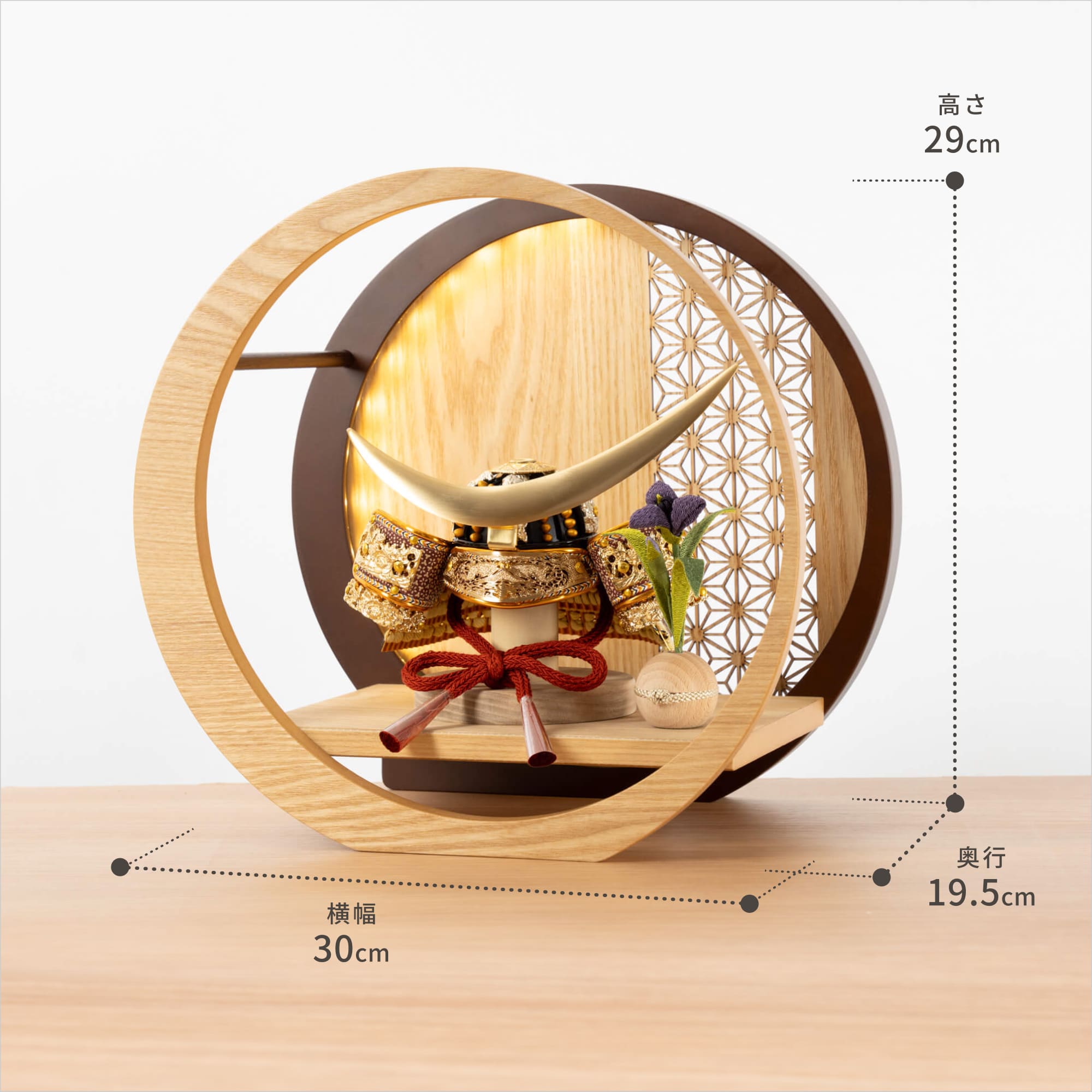 精巧な戦国兜の凛として強く美しい佇まいを天然木の優しいぬくもりが包み込む・・・まるで男の子の成長を温かく見守る家族の様に・・・そんなコンセプトから生まれた兜は、てづくり工房「木都」と甲冑工房「悠雅」のコラボレーションから生まれました。親しみやすく、お子様と一緒に飾れるKOTO×悠雅コラボ兜です。※ 細かい部品が含まれています。3歳未満のお子様は、保護者の方と一緒にお遊びください。選び抜いた素材と手間をかけた技法でつくる兜鉢選び抜いた素材と手間をかけた技法でつくる兜鉢KOTO×悠雅コラボ兜の兜鉢は、伝統的な本式の合せ鉢という技法でつくられています。本式の合せ鉢とは、戦国時代に頭部を守るために考案され、三角状の鉢部品を重ね合わせ、多数の星鋲をカシメる事で強度を高める技法です。選び抜いた素材と手間をかけた技法でつくる「庇」選び抜いた素材と手間をかけた技法でつくる「庇」兜の裏側にあたる庇は、甲州印伝革を使用し伝統的な技術で1つ1つ手作りで丁寧に作られています。選び抜いた素材と手間をかけた技法でつくる「小札」選び抜いた素材と手間をかけた技法でつくる「小札」小札は、細かい天然繊維である本物の絹糸を使用した正絹で結び合わせ繋げております。伝統的な兜をモダンに仕上げたシンプルなデザイン伝統的な兜をモダンに仕上げたシンプルなデザイン伝統的な製法で作られた兜に天然木の素材を活かしたシンプルなデザインの兜です。モダンでシンプルなデザインは、どんなお部屋の雰囲気にもピッタリ。コンパクトでちょうどいいサイズコンパクトでちょうどいいサイズ今どきのおうちに合わせたコンパクトなサイズに仕上げました。飾るスペースが狭くなりがちなマンションや子ども部屋にもぴったり。健やかな成長への願いを込めた麻の葉文様健やかな成長への願いを込めた麻の葉文様古来からの日本伝統の吉祥文様である麻の葉文様。麻の丈夫さ・成長の早さにあやかり、お子さまの健やかな成長への願いが込められています。兜の由来〜伊達正宗兜の由来〜伊達正宗妙見信仰という宗教は星や月、太陽などを神とあがめていました。伊達はその中でも月派で三日月にした理由は戦の邪魔にならないようにといわれています。お子さまの感性を育む天然木へのこだわりお子さまの感性を育む天然木へのこだわり素材には、タモ、ブナといった天然木を使用。お子さまへの一生に一度の贈り物だから、木都は自然素材の天然木にこだわり続けています。※ 生産時期により使用する素材が一部変更になる場合がございます。熟練の職人による確かな手仕事熟練の職人による確かな手仕事伝統工芸の技術を受け継ぐ日本国内の熟練の職人が、一つひとつ丁寧に手づくりしています。おしゃれなギフト包装でお届けしますおしゃれなギフト包装でお届けします和の雰囲気を感じさせる越前和紙のギフト用ラッピングでお届け。料金がわかるものもお入れしていないので、そのまま贈り物として利用できます。商品レビュー記入でもれなくもらえる天然木のミニ名前札プレゼント商品レビュー記入でもれなくもらえる天然木のミニ名前札プレゼントミニサイズのお名前札 (通常販売価格1,980円) をプレゼント♪商品到着後、商品レビューをご記入の上、商品と同梱のチラシ記載のQRコードから応募フォームへ必要事項をご入力ください。店舗よりレビュー特典を発送いたします。※ お名前札の生年月日の表記は和暦となります。(例:令和七年)商品のご注文へ収納方法とセット内容兜・鍬形・芯木・菖蒲・飾り台・電源ケーブル素材:タモ重量:1,300g サイズ:W300mm × D195mm × H290mm梱包時:W340mm × D240mm × H330mm兜のみ:約 W150mm × D110mm × H150mm収納方法鍬形は専用袋に入れ、兜は風呂敷に包みます。その他の部品は不織布に入れ収納してください。兜置きの下台とポールは組み立ててご利用ください。注意事項甲冑について飾り付ける際に必ず手袋をご使用ください。錆や変色などの予防にもなります。本品の上には絶対に乗らないでください。本品または本品の部品は装飾品です。他の目的に使用しないで下さい。部品には小さなものがございます。お子様がお口に入れないようにご注意いください。木製品について色合いなど実際のものと写真とでは多少の誤差が生じる場合がございます。また、手作りであり天然木を使用している為、多少の仕様の変化や風合いがひとつひとつ異なります。あらかじめご了承ください。部品には小さなものがございます。お子様がお口に入れないようにご注意いください。菖蒲には針金が入っております。お好みで角度を調整して下さい。材質により刻印の濃淡に差が生じますが不良品ではございません。木製品である限り自然なこととご承知下さいませ。保管場所は変色やカビ、サビの原因になりますので湿気の少ない場所・直射日光の当たらない場所に保管してください。ご不明点がございましたら > お問い合わせページ からご