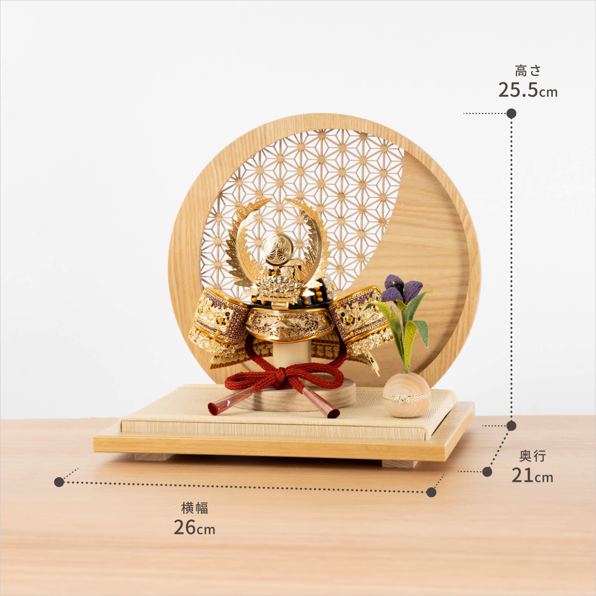精巧な戦国兜の凛として強く美しい佇まいを天然木の優しいぬくもりが包み込む・・・まるで男の子の成長を温かく見守る家族の様に・・・そんなコンセプトから生まれた兜は、てづくり工房「木都」と甲冑工房「悠雅」のコラボレーションから生まれました。親しみやすく、お子様と一緒に飾れるKOTO×悠雅コラボ兜です。※ 細かい部品が含まれています。3歳未満のお子様は、保護者の方と一緒にお遊びください。選び抜いた素材と手間をかけた技法でつくる兜鉢選び抜いた素材と手間をかけた技法でつくる兜鉢KOTO×悠雅コラボ兜の兜鉢は、伝統的な本式の合せ鉢という技法でつくられています。本式の合せ鉢とは、戦国時代に頭部を守るために考案され、三角状の鉢部品を重ね合わせ、多数の星鋲をカシメる事で強度を高める技法です。選び抜いた素材と手間をかけた技法でつくる「庇」選び抜いた素材と手間をかけた技法でつくる「庇」兜の裏側にあたる庇は、甲州印伝革を使用し伝統的な技術で1つ1つ手作りで丁寧に作られています。選び抜いた素材と手間をかけた技法でつくる「小札」選び抜いた素材と手間をかけた技法でつくる「小札」小札は、細かい天然繊維である本物の絹糸を使用した正絹で結び合わせ繋げております。伝統的な兜をモダンに仕上げたシンプルなデザイン伝統的な兜をモダンに仕上げたシンプルなデザイン伝統的な製法で作られた兜に天然木の素材を活かしたシンプルなデザインの兜です。モダンでシンプルなデザインは、どんなお部屋の雰囲気にもピッタリ。コンパクトでちょうどいいサイズコンパクトでちょうどいいサイズ今どきのおうちに合わせたコンパクトなサイズに仕上げました。飾るスペースが狭くなりがちなマンションや子ども部屋にもぴったり。健やかな成長への願いを込めた麻の葉文様健やかな成長への願いを込めた麻の葉文様古来からの日本伝統の吉祥文様である麻の葉文様。麻の丈夫さ・成長の早さにあやかり、お子さまの健やかな成長への願いが込められています。兜の由来〜徳川家康兜の由来〜徳川家康家康の兜飾りはシダをあしらっています。シダは常緑樹で枯れないので繁栄と長寿の意味がこめられています。一本一本織機で織る日本古来の伝統製法と加工一本一本織機で織る日本古来の伝統製法と加工日本独自の伝統文化である「畳」一本一本織機で織る「伝統的な製法」と「引目」「目積」などの「伝統的な織柄」に徹底した日本古来の伝統製法で加工されています。天然イ草の風合いを活かしながら、高い耐久性や安全性のある「美草」を使用しています。お子さまの感性を育む天然木へのこだわりお子さまの感性を育む天然木へのこだわり素材には、タモ、ブナといった天然木を使用。お子さまへの一生に一度の贈り物だから、木都は自然素材の天然木にこだわり続けています。※ 生産時期により使用する素材が一部変更になる場合がございます。熟練の職人による確かな手仕事熟練の職人による確かな手仕事伝統工芸の技術を受け継ぐ日本国内の熟練の職人が、一つひとつ丁寧に手づくりしています。おしゃれなギフト包装でお届けしますおしゃれなギフト包装でお届けします和の雰囲気を感じさせる越前和紙のギフト用ラッピングでお届け。料金がわかるものもお入れしていないので、そのまま贈り物として利用できます。商品レビュー記入でもれなくもらえる天然木のミニ名前札プレゼント商品レビュー記入でもれなくもらえる天然木のミニ名前札プレゼントミニサイズのお名前札 (通常販売価格1,980円) をプレゼント♪商品到着後、商品レビューをご記入の上、商品と同梱のチラシ記載のQRコードから応募フォームへ必要事項をご入力ください。店舗よりレビュー特典を発送いたします。※ お名前札の生年月日の表記は和暦となります。(例:令和七年)商品のご注文へ収納方法とセット内容兜・鍬形・芯木・菖蒲・衝立・平台素材:タモ重量:1,220g サイズ:W260mm × D210mm × H255mm梱包時:W310mm × D280mm × H170mm兜のみ:約 W150mm × D110mm × H150mm収納方法鍬形は専用袋に入れ、兜は風呂敷に包みます。その他の部品は不織布に入れ収納してください。兜置きの下台とポールは組み立ててご利用ください。注意事項甲冑について飾り付ける際に必ず手袋をご使用ください。錆や変色などの予防にもなります。本品の上には絶対に乗らないでください。本品または本品の部品は装飾品です。他の目的に使用しないで下さい。部品には小さなものがございます。お子様がお口に入れないようにご注意いください。木製品について色合いなど実際のものと写真とでは多少の誤差が生じる場合がございます。また、手作りであり天然木を使用している為、多少の仕様の変化や風合いがひとつひとつ異なります。あらかじめご了承ください。部品には小さなものがございます。お子様がお口に入れないようにご注意いください。菖蒲には針金が入っております。お好みで角度を調整して下さい。