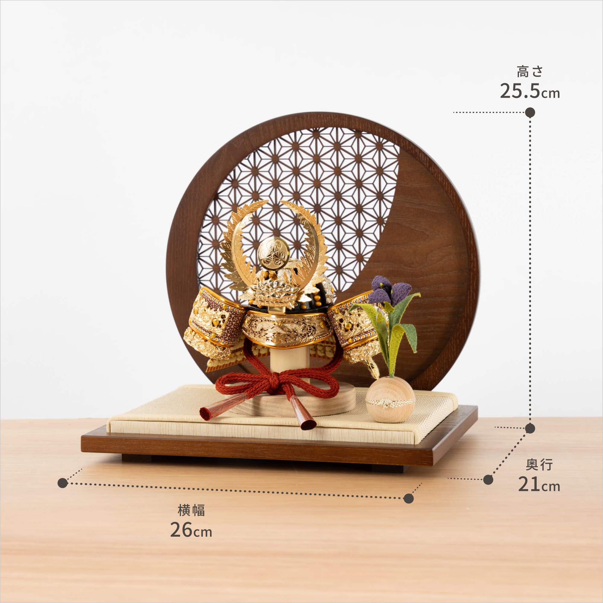 精巧な戦国兜の凛として強く美しい佇まいを天然木の優しいぬくもりが包み込む・・・まるで男の子の成長を温かく見守る家族の様に・・・そんなコンセプトから生まれた兜は、てづくり工房「木都」と甲冑工房「悠雅」のコラボレーションから生まれました。親しみやすく、お子様と一緒に飾れるKOTO×悠雅コラボ兜です。※ 細かい部品が含まれています。3歳未満のお子様は、保護者の方と一緒にお遊びください。選び抜いた素材と手間をかけた技法でつくる兜鉢選び抜いた素材と手間をかけた技法でつくる兜鉢KOTO×悠雅コラボ兜の兜鉢は、伝統的な本式の合せ鉢という技法でつくられています。本式の合せ鉢とは、戦国時代に頭部を守るために考案され、三角状の鉢部品を重ね合わせ、多数の星鋲をカシメる事で強度を高める技法です。選び抜いた素材と手間をかけた技法でつくる「庇」選び抜いた素材と手間をかけた技法でつくる「庇」兜の裏側にあたる庇は、甲州印伝革を使用し伝統的な技術で1つ1つ手作りで丁寧に作られています。選び抜いた素材と手間をかけた技法でつくる「小札」選び抜いた素材と手間をかけた技法でつくる「小札」小札は、細かい天然繊維である本物の絹糸を使用した正絹で結び合わせ繋げております。伝統的な兜をモダンに仕上げたシンプルなデザイン伝統的な兜をモダンに仕上げたシンプルなデザイン伝統的な製法で作られた兜に天然木の素材を活かしたシンプルなデザインの兜です。モダンでシンプルなデザインは、どんなお部屋の雰囲気にもピッタリ。コンパクトでちょうどいいサイズコンパクトでちょうどいいサイズ今どきのおうちに合わせたコンパクトなサイズに仕上げました。飾るスペースが狭くなりがちなマンションや子ども部屋にもぴったり。健やかな成長への願いを込めた麻の葉文様健やかな成長への願いを込めた麻の葉文様古来からの日本伝統の吉祥文様である麻の葉文様。麻の丈夫さ・成長の早さにあやかり、お子さまの健やかな成長への願いが込められています。兜の由来〜徳川家康兜の由来〜徳川家康家康の兜飾りはシダをあしらっています。シダは常緑樹で枯れないので繁栄と長寿の意味がこめられています。一本一本織機で織る日本古来の伝統製法と加工一本一本織機で織る日本古来の伝統製法と加工日本独自の伝統文化である「畳」一本一本織機で織る「伝統的な製法」と「引目」「目積」などの「伝統的な織柄」に徹底した日本古来の伝統製法で加工されています。天然イ草の風合いを活かしながら、高い耐久性や安全性のある「美草」を使用しています。お子さまの感性を育む天然木へのこだわりお子さまの感性を育む天然木へのこだわり素材には、タモ、ブナといった天然木を使用。お子さまへの一生に一度の贈り物だから、木都は自然素材の天然木にこだわり続けています。※ 生産時期により使用する素材が一部変更になる場合がございます。熟練の職人による確かな手仕事熟練の職人による確かな手仕事伝統工芸の技術を受け継ぐ日本国内の熟練の職人が、一つひとつ丁寧に手づくりしています。おしゃれなギフト包装でお届けしますおしゃれなギフト包装でお届けします和の雰囲気を感じさせる越前和紙のギフト用ラッピングでお届け。料金がわかるものもお入れしていないので、そのまま贈り物として利用できます。商品レビュー記入でもれなくもらえる天然木のミニ名前札プレゼント商品レビュー記入でもれなくもらえる天然木のミニ名前札プレゼントミニサイズのお名前札 (通常販売価格1,980円) をプレゼント♪商品到着後、商品レビューをご記入の上、商品と同梱のチラシ記載のQRコードから応募フォームへ必要事項をご入力ください。店舗よりレビュー特典を発送いたします。※ お名前札の生年月日の表記は和暦となります。(例:令和七年)商品のご注文へ収納方法とセット内容兜・鍬形・芯木・菖蒲・衝立・平台素材:タモ重量:1,220g サイズ:W260mm × D210mm × H255mm梱包時:W310mm × D280mm × H170mm兜のみ:約 W150mm × D110mm × H150mm収納方法鍬形は専用袋に入れ、兜は風呂敷に包みます。その他の部品は不織布に入れ収納してください。兜置きの下台とポールは組み立ててご利用ください。注意事項甲冑について飾り付ける際に必ず手袋をご使用ください。錆や変色などの予防にもなります。本品の上には絶対に乗らないでください。本品または本品の部品は装飾品です。他の目的に使用しないで下さい。部品には小さなものがございます。お子様がお口に入れないようにご注意いください。木製品について色合いなど実際のものと写真とでは多少の誤差が生じる場合がございます。また、手作りであり天然木を使用している為、多少の仕様の変化や風合いがひとつひとつ異なります。あらかじめご了承ください。部品には小さなものがございます。お子様がお口に入れないようにご注意いください。菖蒲には針金が入っております。お好みで角度を調整して下さい。