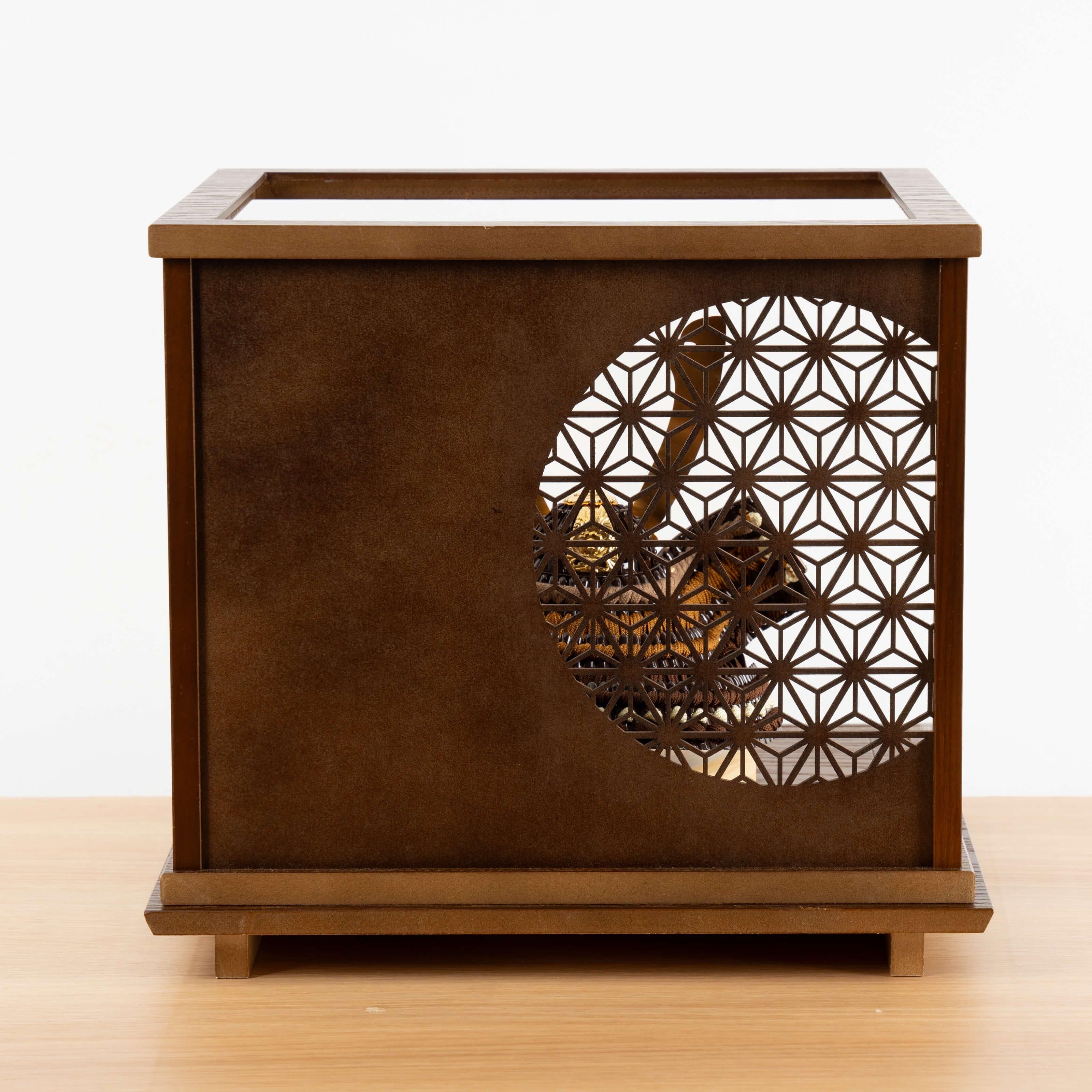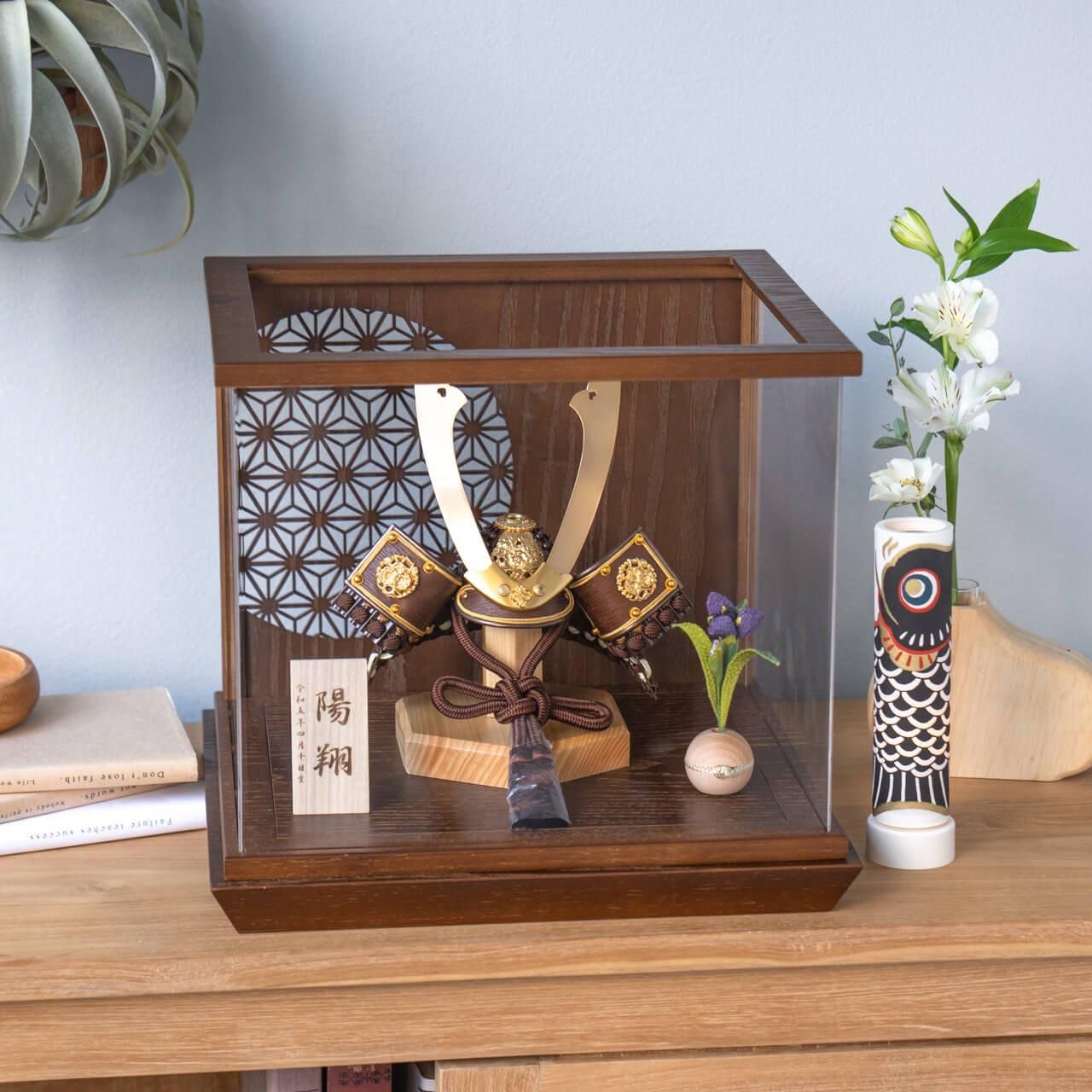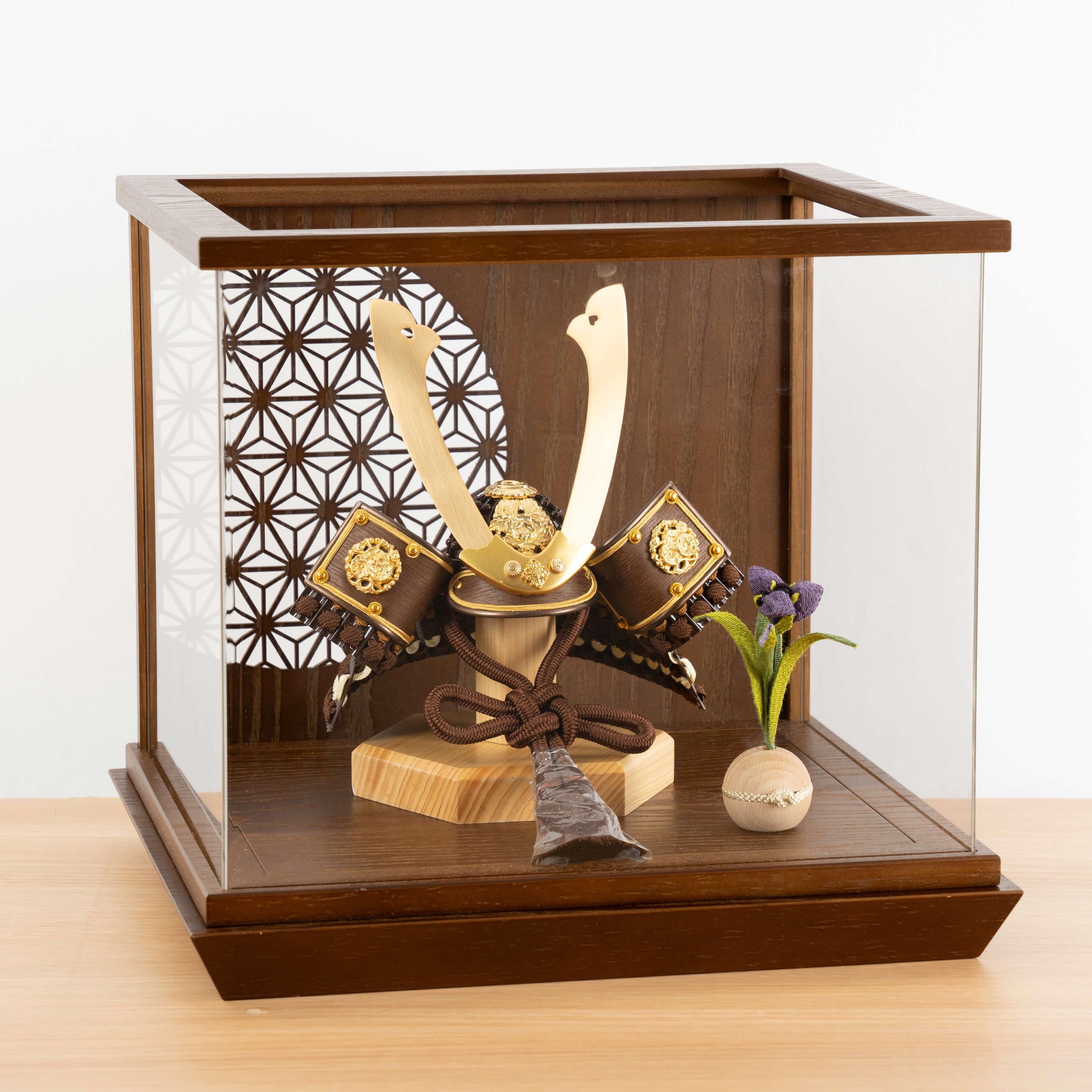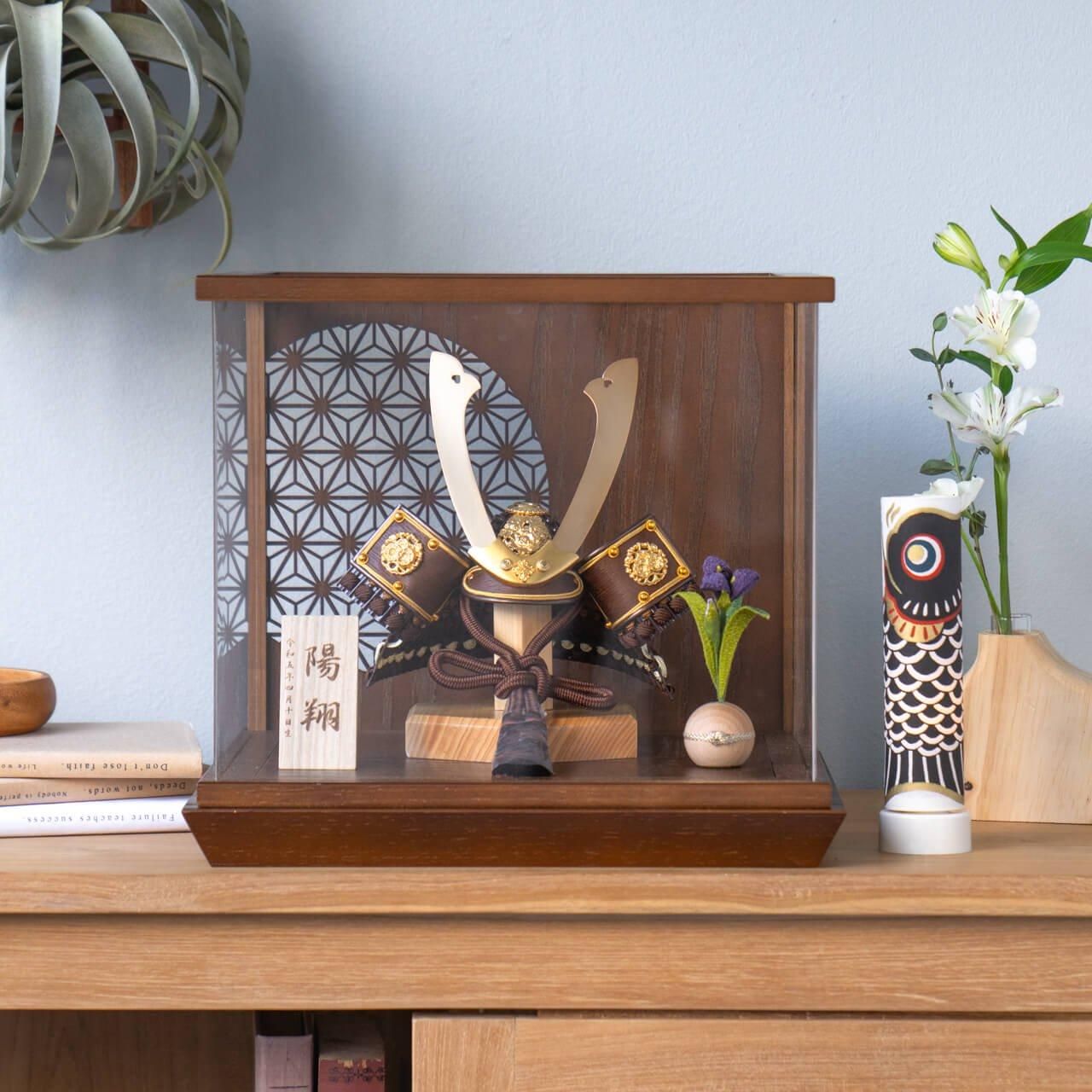 通常ケースタイプの商品は「取り付け型」と言われ飾る手間を省くために設置箇所が固定されています。本兜は、あえて飾る手間を残し本物の素材や質感をお子様とご一緒に手にとって飾る体験をしてもらいたい為、設置箇所は固定されておりません。