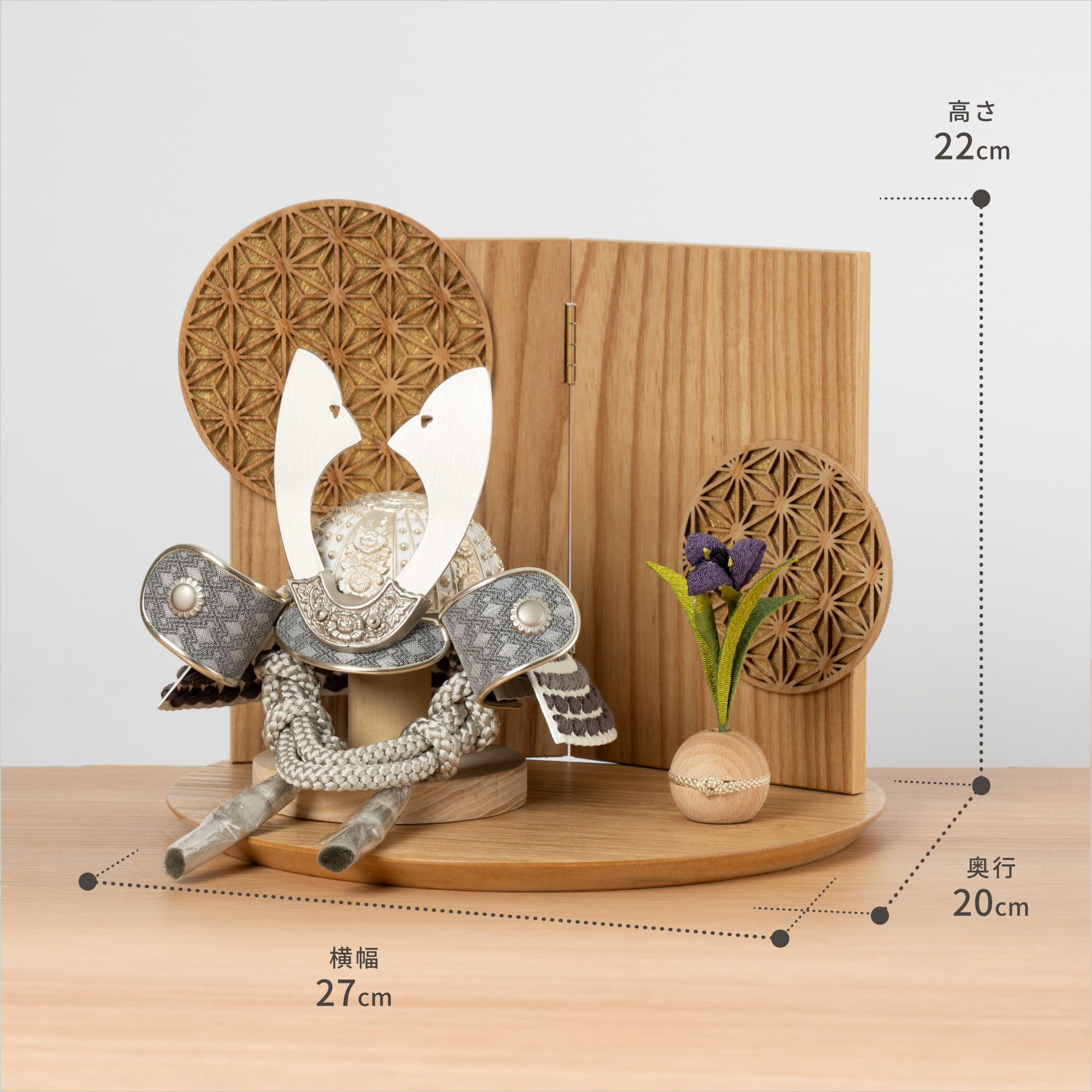 実際に手に取ると天然木の素材ならではの優しいぬくもりが伝わります。てづくり工房「木都」の職人が、伝統工芸の技術と天然木の素材を活かし、真心込めて1つ1つ丁寧につくりました。親しみやすく、お子様と一緒に飾れる「ことのおぼこ兜」です。※ 細かい部品が含まれています。3歳未満のお子様は、保護者の方と一緒にお遊びください。コンパクトでちょうどいいサイズコンパクトでちょうどいいサイズ今どきのおうちに合わせたコンパクトなサイズに仕上げました。飾るスペースが狭くなりがちなマンションや子ども部屋にもぴったり。伝統的な兜をモダンに仕上げたシンプルなデザイン伝統的な兜をモダンに仕上げたシンプルなデザイン伝統的な製法で作られた兜に天然木の素材を活かしたシンプルなデザインの兜です。モダンでシンプルなデザインは、どんなお部屋の雰囲気にもピッタリ。丸みを帯びた親しみやすいフォルム丸みを帯びた親しみやすいフォルム吹き返しやまびさし、鍬形にいたるまで、全体的に丸みを帯びた形状に仕上げました。伝統的な兜でありながら、親しみやすさを感じる兜です。選び抜いた素材と手間をかけた技法でつくる兜鉢選び抜いた素材と手間をかけた技法でつくる兜鉢ことのおぼこ兜の兜鉢は、伝統的な本式の合せ鉢という技法でつくられています。本式の合せ鉢とは、戦国時代に頭部を守るために考案され、三角状の鉢部品を重ね合わせ、多数の星鋲をカシメる事で強度を高める技法です。健やかな成長への願いを込めた麻の葉文様健やかな成長への願いを込めた麻の葉文様古来からの日本伝統の吉祥文様である麻の葉文様。麻の丈夫さ・成長の早さにあやかり、お子さまの健やかな成長への願いが込められています。お子さまの感性を育む天然木へのこだわりお子さまの感性を育む天然木へのこだわり素材には、タモ、ブナといった天然木を使用。お子さまへの一生に一度の贈り物だから、木都は自然素材の天然木にこだわり続けています。※ 生産時期により使用する素材が一部変更になる場合がございます。熟練の職人による確かな手仕事熟練の職人による確かな手仕事伝統工芸の技術を受け継ぐ日本国内の熟練の職人が、一つひとつ丁寧に手づくりしています。おしゃれなギフト包装でお届けしますおしゃれなギフト包装でお届けします和の雰囲気を感じさせる越前和紙のギフト用ラッピングでお届け。料金がわかるものもお入れしていないので、そのまま贈り物として利用できます。商品レビュー記入でもれなくもらえる天然木のミニ名前札プレゼント商品レビュー記入でもれなくもらえる天然木のミニ名前札プレゼントミニサイズのお名前札 (通常販売価格1,980円) をプレゼント♪商品到着後、商品レビューをご記入の上、商品と同梱のチラシ記載のQRコードから応募フォームへ必要事項をご入力ください。店舗よりレビュー特典を発送いたします。※ お名前札の生年月日の表記は和暦となります。(例:令和七年)商品のご注文へ収納方法とセット内容兜・鍬形・芯木・菖蒲・屏風・平台素材:タモ重量:1,340g サイズ:W270mm × D200mm × H220mm兜のみ:約 W180mm × D140mm × H130mm注意事項甲冑について飾り付ける際に必ず手袋をご使用ください。錆や変色などの予防にもなります。本品の上には絶対に乗らないでください。本品または本品の部品は装飾品です。他の目的に使用しないで下さい。部品には小さなものがございます。お子様がお口に入れないようにご注意いください。木製品について色合いなど実際のものと写真とでは多少の誤差が生じる場合がございます。また、手作りであり天然木を使用している為、多少の仕様の変化や風合いがひとつひとつ異なります。あらかじめご了承ください。部品には小さなものがございます。お子様がお口に入れないようにご注意いください。菖蒲には針金が入っております。お好みで角度を調整して下さい。材質により刻印の濃淡に差が生じますが不良品ではございません。木製品である限り自然なこととご承知下さいませ。保管場所は変色やカビ、サビの原因になりますので湿気の少ない場所・直射日光の当たらない場所に保管してください。ご不明点がございましたら > お問い合わせページ からご相談ください。