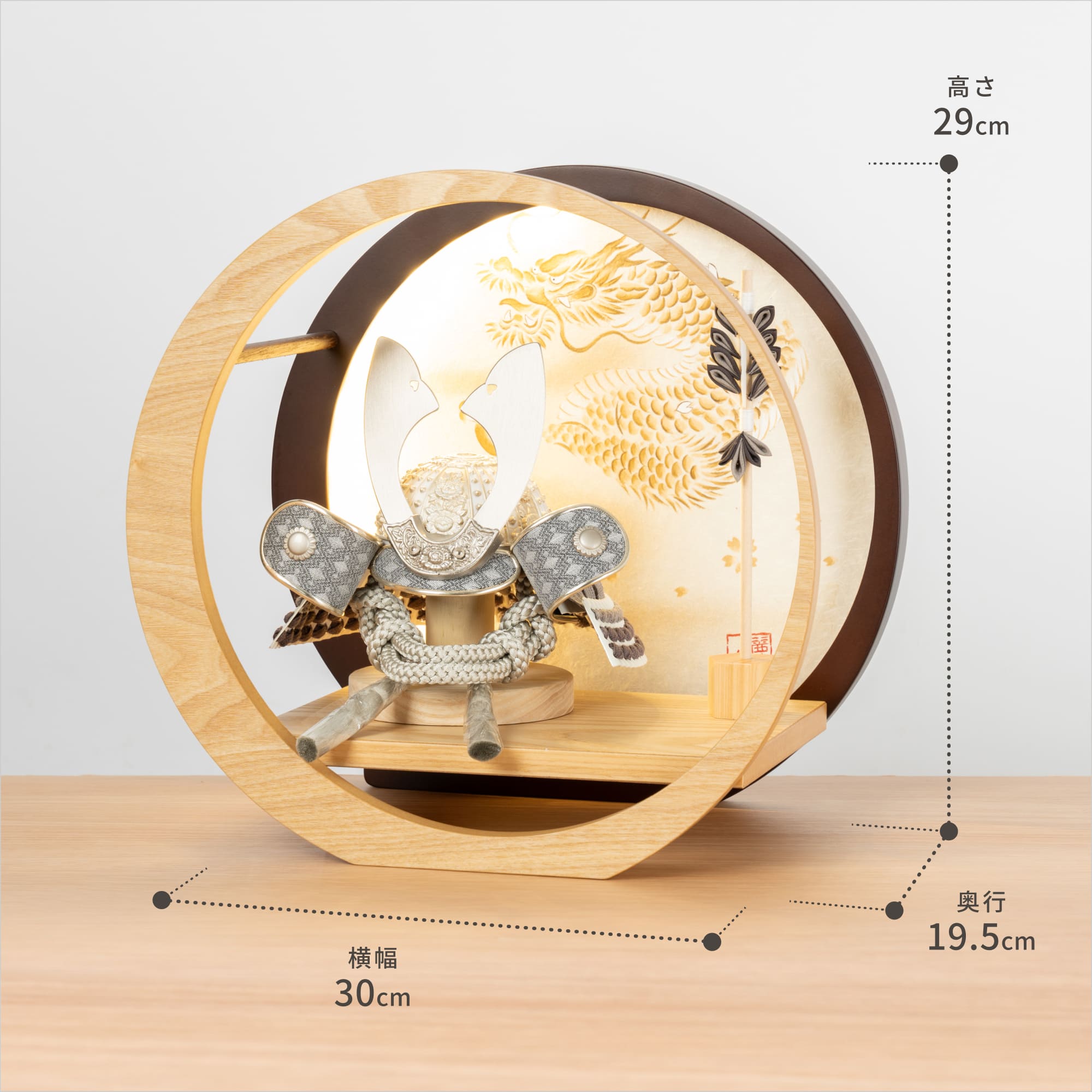 実際に手に取ると天然木の素材ならではの優しいぬくもりが伝わります。てづくり工房「木都」の職人が、伝統工芸の技術と天然木の素材を活かし、真心込めて1つ1つ丁寧につくりました。親しみやすく、お子様と一緒に飾れる「ことのおぼこ兜」です。※ 細かい部品が含まれています。3歳未満のお子様は、保護者の方と一緒にお遊びください。コンパクトでちょうどいいサイズコンパクトでちょうどいいサイズ今どきのおうちに合わせたコンパクトなサイズに仕上げました。飾るスペースが狭くなりがちなマンションや子ども部屋にもぴったり。伝統的な兜をモダンに仕上げたシンプルなデザイン伝統的な兜をモダンに仕上げたシンプルなデザイン伝統的な製法で作られた兜に天然木の素材を活かしたシンプルなデザインの兜です。モダンでシンプルなデザインは、どんなお部屋の雰囲気にもピッタリ。丸みを帯びた親しみやすいフォルム丸みを帯びた親しみやすいフォルム吹き返しやまびさし、鍬形にいたるまで、全体的に丸みを帯びた形状に仕上げました。伝統的な兜でありながら、親しみやすさを感じる兜です。選び抜いた素材と手間をかけた技法でつくる兜鉢選び抜いた素材と手間をかけた技法でつくる兜鉢ことのおぼこ兜の兜鉢は、伝統的な本式の合せ鉢という技法でつくられています。本式の合せ鉢とは、戦国時代に頭部を守るために考案され、三角状の鉢部品を重ね合わせ、多数の星鋲をカシメる事で強度を高める技法です。子供の健やかな成長を願う 龍子供の健やかな成長を願う 龍龍には悪いものを払いのけ幸運をもたらす力があるとされており、子供の健やかな成長への願いが込められています。また、出世や繁栄の象徴でもあり、子供の将来の成功を願う勇ましい装飾として親しまれています。お子さまの感性を育む天然木へのこだわりお子さまの感性を育む天然木へのこだわり素材には、タモ、ブナといった天然木を使用。お子さまへの一生に一度の贈り物だから、木都は自然素材の天然木にこだわり続けています。※ 生産時期により使用する素材が一部変更になる場合がございます。熟練の職人による確かな手仕事熟練の職人による確かな手仕事伝統工芸の技術を受け継ぐ日本国内の熟練の職人が、一つひとつ丁寧に手づくりしています。おしゃれなギフト包装でお届けしますおしゃれなギフト包装でお届けします和の雰囲気を感じさせる越前和紙のギフト用ラッピングでお届け。料金がわかるものもお入れしていないので、そのまま贈り物として利用できます。商品レビュー記入でもれなくもらえる天然木のミニ名前札プレゼント商品レビュー記入でもれなくもらえる天然木のミニ名前札プレゼントミニサイズのお名前札 (通常販売価格1,980円) をプレゼント♪商品到着後、商品レビューをご記入の上、商品と同梱のチラシ記載のQRコードから応募フォームへ必要事項をご入力ください。店舗よりレビュー特典を発送いたします。※ お名前札の生年月日の表記は和暦となります。(例:令和七年)商品のご注文へ収納方法とセット内容兜・鍬形・芯木・矢羽根・飾り台・電源ケーブル素材:タモ重量:1,470g サイズ:W300mm × D195mm × H290mm梱包時:W340mm × D240mm × H330mm兜のみ:約 W180mm × D140mm × H130mm注意事項甲冑について飾り付ける際に必ず手袋をご使用ください。錆や変色などの予防にもなります。本品の上には絶対に乗らないでください。本品または本品の部品は装飾品です。他の目的に使用しないで下さい。部品には小さなものがございます。お子様がお口に入れないようにご注意いください。木製品について色合いなど実際のものと写真とでは多少の誤差が生じる場合がございます。また、手作りであり天然木を使用している為、多少の仕様の変化や風合いがひとつひとつ異なります。あらかじめご了承ください。部品には小さなものがございます。お子様がお口に入れないようにご注意いください。菖蒲には針金が入っております。お好みで角度を調整して下さい。材質により刻印の濃淡に差が生じますが不良品ではございません。木製品である限り自然なこととご承知下さいませ。保管場所は変色やカビ、サビの原因になりますので湿気の少ない場所・直射日光の当たらない場所に保管してください。ご不明点がございましたら > お問い合わせページ からご相談ください。