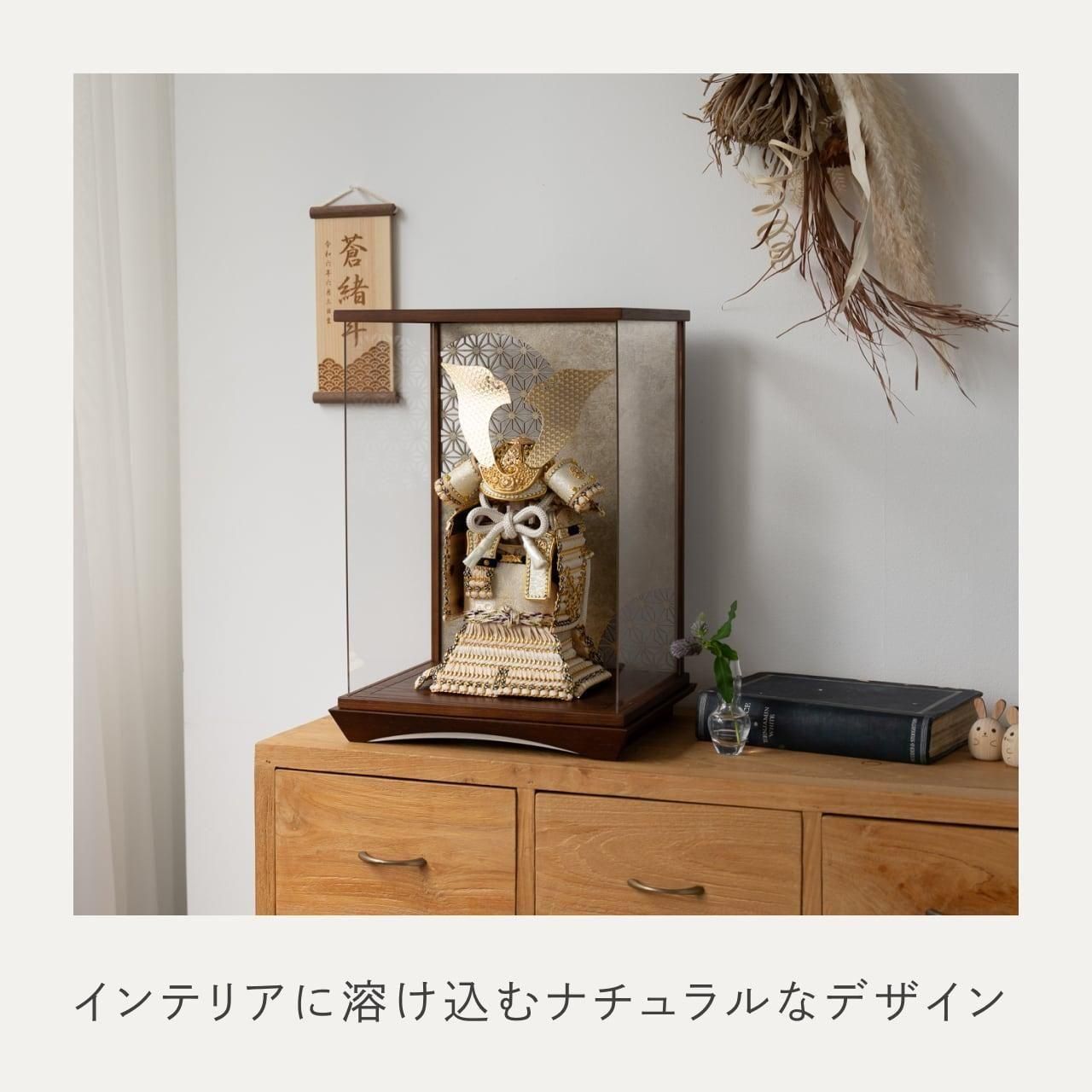 ケースでも手にとって欲しいこだわりの兜通常ケースタイプの商品は「取り付け型」と言われ飾る手間を省くために設置箇所が固定されています。本兜は、あえて飾る手間を残し本物の素材や質感をお子様とご一緒に手にとって飾る体験をしてもらいたい為、設置箇所は固定されておりません。また、上部、前、左右にはガラスではなくアクリル板が設置されていますので、万が一の際も安心です。
