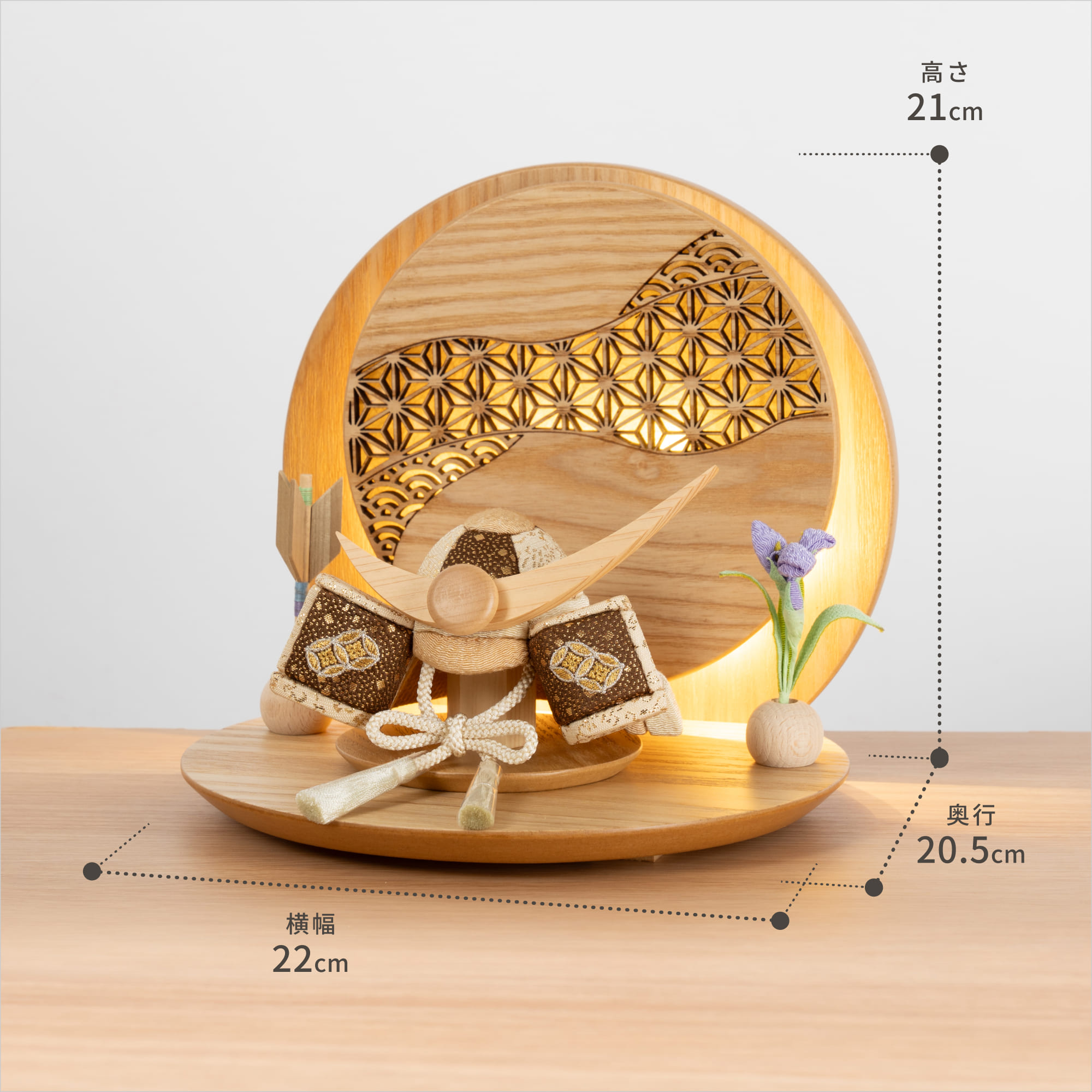 実際に手に取ると天然木の素材ならではの優しいぬくもりが伝わります。てづくり工房「木都」の職人が、伝統工芸の技術と天然木の素材を活かし、真心込めて1つ1つ丁寧につくりました。親しみやすく、お子様と一緒に飾れる 「ことの木目込かぶと」です。※ 細かい部品が含まれています。3歳未満のお子様は、保護者の方と一緒にお遊びください。 コンパクトでちょうどいいサイズコンパクトでちょうどいいサイズ今どきのおうちに合わせたコンパクトなサイズに仕上げました。飾るスペースが狭くなりがちなマンションや子ども部屋にもぴったり。お衣装へのこだわりお衣装へのこだわり有職裂地を使用しています。有職とは「有職故事」という宮廷の決まり事に準拠した色彩や文様で、それらで造った衣装を有職衣装と呼びます。お部屋のイメージに調和するデザインお部屋のイメージに調和するデザイン天然木の素材を活かしたシンプルなデザインだから、お部屋の雰囲気にもピッタリ。富士山の麓でとれた桧富士山の麓でとれた桧鍬形の素材には、富士山麓の無垢のヒノキを使用しています。健やかな成長への願いを込めた麻の葉文様健やかな成長への願いを込めた麻の葉文様古来からの日本伝統の吉祥文様である麻の葉文様。麻の丈夫さ・成長の早さにあやかり、お子さまの健やかな成長への願いが込められています。お子さまの感性を育む天然木へのこだわりお子さまの感性を育む天然木へのこだわり素材には、桧、タモといった天然木を使用。お子さまへの一生に一度の贈り物だから、木都は自然素材の天然木にこだわり続けています。※ 生産時期により使用する素材が一部変更になる場合がございます。熟練の職人による確かな手仕事熟練の職人による確かな手仕事伝統工芸の技術を受け継ぐ日本国内の熟練の職人が、一つひとつ丁寧に手づくりしています。おしゃれなギフト包装でお届けしますおしゃれなギフト包装でお届けします和の雰囲気を感じさせる越前和紙のギフト用ラッピングでお届け。料金がわかるものもお入れしていないので、そのまま贈り物として利用できます。商品レビュー記入でもれなくもらえる天然木のミニ名前札プレゼント商品レビュー記入でもれなくもらえる天然木のミニ名前札プレゼントミニサイズのお名前札 (通常販売価格1,980円) をプレゼント♪商品到着後、商品レビューをご記入の上、商品と同梱のチラシ記載のQRコードから応募フォームへ必要事項をご入力ください。店舗よりレビュー特典を発送いたします。※ お名前札の生年月日の表記は和暦となります。(例:令和七年)商品のご注文へ収納方法とセット内容兜・鍬形・芯木・菖蒲・矢羽根・衝立・平台・電源ケーブル素材:桧・タモ重量:1,080g サイズ:W220mm × D205mm × H210mm梱包時:W290mm × D290mm × H160mm兜のみ:約 W130mm × D125mm × H110mm注意事項色合いなど実際のものと写真とでは多少の誤差が生じる場合がございます。また、手作りであり天然木を使用している為、多少の仕様の変化や風合いがひとつひとつ異なります。あらかじめご了承ください。部品には小さなものがございます。お子様がお口に入れないようにご注意ください。観賞用ではございますが手にとって遊んでいただくことも可能です。鍬形部は折れやすくなっております。強い衝撃を与えたり落としたりしないで下さい。材質により目の刻印の濃淡に差が生じますが不良品ではございません。木製品である限り自然なこととご承知下さいませ。保管場所は変色やカビ、サビの原因になりますので湿気の少ない場所・直射日光の当たらない場所に保管してください。ご不明点がございましたら > お問い合わせページ からご相談ください。