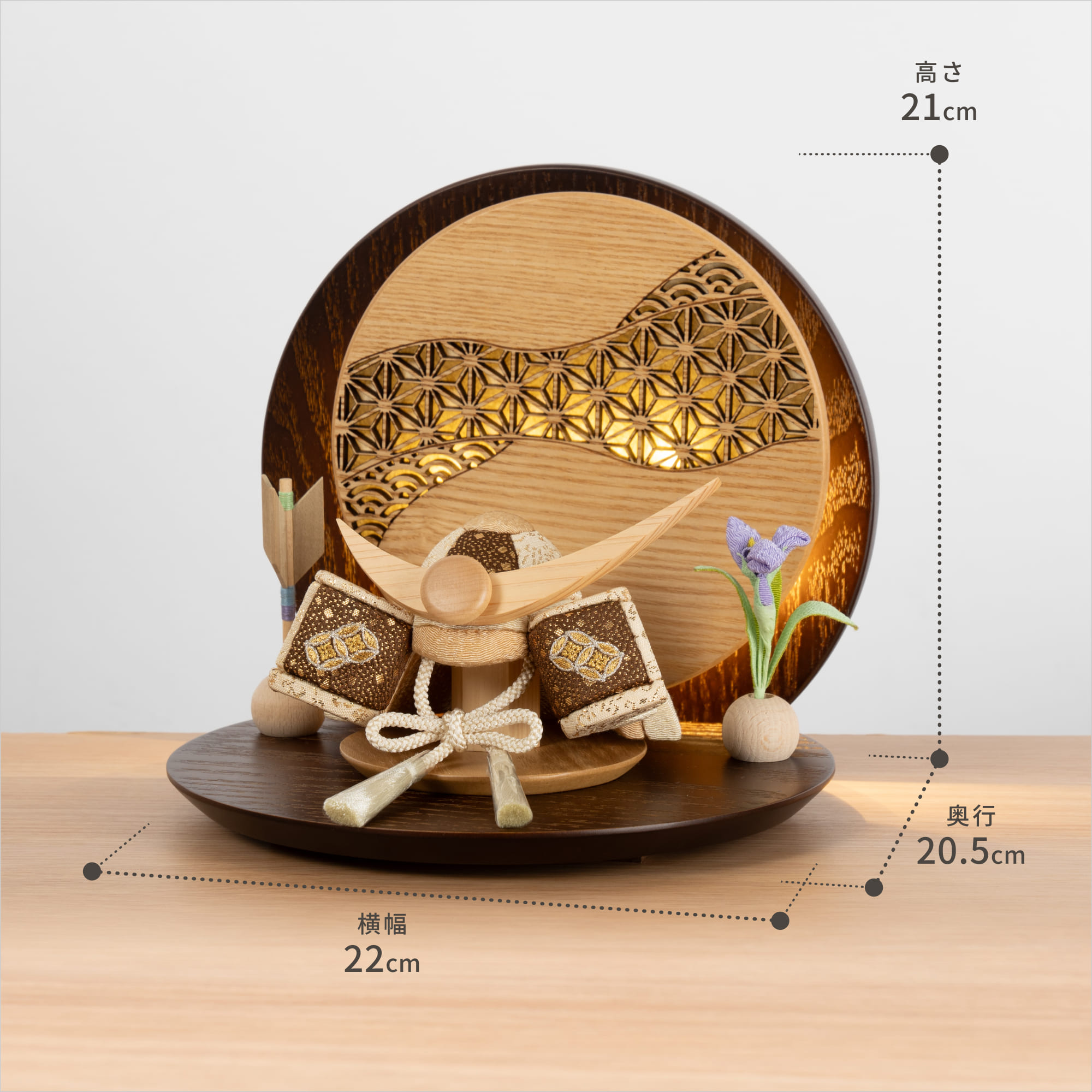 実際に手に取ると天然木の素材ならではの優しいぬくもりが伝わります。てづくり工房「木都」の職人が、伝統工芸の技術と天然木の素材を活かし、真心込めて1つ1つ丁寧につくりました。親しみやすく、お子様と一緒に飾れる 「ことの木目込かぶと」です。※ 細かい部品が含まれています。3歳未満のお子様は、保護者の方と一緒にお遊びください。 コンパクトでちょうどいいサイズコンパクトでちょうどいいサイズ今どきのおうちに合わせたコンパクトなサイズに仕上げました。飾るスペースが狭くなりがちなマンションや子ども部屋にもぴったり。お衣装へのこだわりお衣装へのこだわり有職裂地を使用しています。有職とは「有職故事」という宮廷の決まり事に準拠した色彩や文様で、それらで造った衣装を有職衣装と呼びます。お部屋のイメージに調和するデザインお部屋のイメージに調和するデザイン天然木の素材を活かしたシンプルなデザインだから、お部屋の雰囲気にもピッタリ。富士山の麓でとれた桧富士山の麓でとれた桧鍬形の素材には、富士山麓の無垢のヒノキを使用しています。健やかな成長への願いを込めた麻の葉文様健やかな成長への願いを込めた麻の葉文様古来からの日本伝統の吉祥文様である麻の葉文様。麻の丈夫さ・成長の早さにあやかり、お子さまの健やかな成長への願いが込められています。お子さまの感性を育む天然木へのこだわりお子さまの感性を育む天然木へのこだわり素材には、桧、タモといった天然木を使用。お子さまへの一生に一度の贈り物だから、木都は自然素材の天然木にこだわり続けています。※ 生産時期により使用する素材が一部変更になる場合がございます。熟練の職人による確かな手仕事熟練の職人による確かな手仕事伝統工芸の技術を受け継ぐ日本国内の熟練の職人が、一つひとつ丁寧に手づくりしています。おしゃれなギフト包装でお届けしますおしゃれなギフト包装でお届けします和の雰囲気を感じさせる越前和紙のギフト用ラッピングでお届け。料金がわかるものもお入れしていないので、そのまま贈り物として利用できます。商品レビュー記入でもれなくもらえる天然木のミニ名前札プレゼント商品レビュー記入でもれなくもらえる天然木のミニ名前札プレゼントミニサイズのお名前札 (通常販売価格1,980円) をプレゼント♪商品到着後、商品レビューをご記入の上、商品と同梱のチラシ記載のQRコードから応募フォームへ必要事項をご入力ください。店舗よりレビュー特典を発送いたします。※ お名前札の生年月日の表記は和暦となります。(例:令和七年)商品のご注文へ収納方法とセット内容兜・鍬形・芯木・菖蒲・矢羽根・衝立・平台・電源ケーブル素材:桧・タモ重量:1,080g サイズ:W220mm × D205mm × H210mm梱包時:W290mm × D290mm × H160mm兜のみ:約 W130mm × D125mm × H110mm注意事項色合いなど実際のものと写真とでは多少の誤差が生じる場合がございます。また、手作りであり天然木を使用している為、多少の仕様の変化や風合いがひとつひとつ異なります。あらかじめご了承ください。部品には小さなものがございます。お子様がお口に入れないようにご注意ください。観賞用ではございますが手にとって遊んでいただくことも可能です。鍬形部は折れやすくなっております。強い衝撃を与えたり落としたりしないで下さい。材質により目の刻印の濃淡に差が生じますが不良品ではございません。木製品である限り自然なこととご承知下さいませ。保管場所は変色やカビ、サビの原因になりますので湿気の少ない場所・直射日光の当たらない場所に保管してください。ご不明点がございましたら > お問い合わせページ からご相談ください。