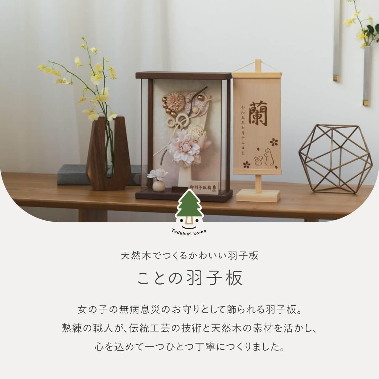 女の子の無病息災のお守りとして飾られる羽子板。熟練の職人が、伝統工芸の技術と天然木の素材を活かし、心を込めて一つひとつ丁寧につくりました。コンパクトでちょうどいいサイズコンパクトでちょうどいいサイズ今どきのおうちに合わせたコンパクトなサイズに仕上げました。飾るスペースが狭くなりがちなマンションや子ども部屋にもぴったり。インテリアに溶け込むナチュラルなデザインインテリアに溶け込むナチュラルなデザイン天然木の素材を活かしたシンプルなデザインだから、お部屋の雰囲気にもピッタリ。平置きと壁掛けの2通りで飾れる平置きと壁掛けの2通りで飾れるケースの背面には紐が付属しております。そのまま置いても、壁に掛けても飾れる2WAY仕様です。取り外せる前面アクリル板取り外せる前面アクリル板お客さまの声をもとにケース前面のアクリル板を取り外し可能なデザインにリニューアル。天然木ならではのぬくもりがより伝わるようになりました。最高品質の越前和紙最高品質の越前和紙ケースの背面には福井県越前市の伝統工芸品『越前和紙』を採用。受け継がれる美しい質感と優れた耐久性が魅力です。お子さまの感性を育む天然木へのこだわりお子さまの感性を育む天然木へのこだわり素材には、タモ、ブナといった天然木を使用。お子さまへの一生に一度の贈り物だから、木都は自然素材の天然木にこだわり続けています。※ 生産時期により使用する素材が一部変更になる場合がございます。天然木が織りなす唯一無二の風合い天然木が織りなす唯一無二の風合い様々な種類の木材を組み合わせることで、それぞれの良さを活かした羽子板に仕上げました。タモ均一で美しい木目が特徴。弾力性と強度を持ち合わせており、耐久性があります。ブナ耐久性が高く長寿のため、家具によく用いられます。明るい色調でインテリアによく馴染みます。桧ひのき特有の香りにはリラックス効果や抗菌、防虫作用があります。湿気にも強く、耐久性に優れています。桐優れた抗菌・防腐効果をもつ成分を含み、高級家具に多く用いられています。上品さのある柔らかな光沢が特徴。熟練の職人による確かな手仕事熟練の職人による確かな手仕事伝統工芸の技術を受け継ぐ日本国内の熟練の職人が、一つひとつ丁寧に手づくりしています。おしゃれなギフト包装でお届けしますおしゃれなギフト包装でお届けします和の雰囲気を感じさせる越前和紙のギフト用ラッピングでお届け。料金がわかるものもお入れしていないので、そのまま贈り物として利用できます。収納方法とセット内容羽子板素材:桐重量:660gサイズ:W180mm × D90mm × H260mm梱包時:W195mm × D100mm × H280mm※ 本商品に名前旗は付属しておりません。別途お買い求めください。注意事項色合いなど実際のものと写真とでは多少の誤差が生じる場合がございます。また、手作りであり天然木を使用している為、多少の仕様の変化や風合いがひとつひとつ異なります。あらかじめご了承ください。材質により木の刻印の濃淡に差が生じますが不良品ではございません。木製品である限り自然なこととご承知下さいませ。保管場所は変色やカビ、サビの原因になりますので湿気の少ない場所・直射日光の当たらない場所に保管してください。本商品に名前旗は付属しておりません。別途お買い求めください。ご不明点がございましたら > お問い合わせページ からご相談ください。 型番 0125 ことの羽子板 すず Bケース ¥26,800税込 送料無料(一部離島を除く) 行燈別売 ¥11,000 あわせて購入 名前旗 雛人形や五月人形とご一緒に コンパクトサイズの雛人形や五月人形と一緒に飾るのにぴったりな名前旗です。5つのカラーと3種類のデザインをお好みでお選びいただけます。 商品情報へ 行燈付き商品の場合は行燈に名入れいたします。ご注文の際は備考欄にお名前・フリガナ・生年月日をご記入ください。空欄の場合は柄のみでお作りさせて頂きます。 個 カートに追加 特定商取引法に基づく表記(返品等) レビューを見る 0 レビューを投稿 関連記事 { "pid": "188118534" }