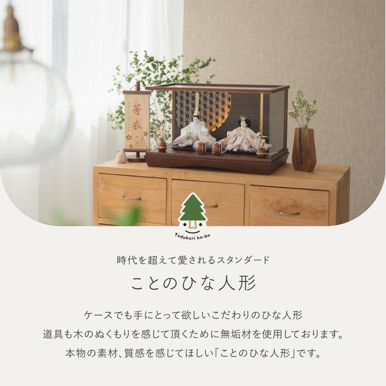 精巧な凛として美しい佇まいを天然木の優しいぬくもりが包み込む・・・まるで女の子の成長を温かく見守る家族の様に・・・そんなコンセプトから生まれた、親しみやすく、お子様と一緒に飾れる「ことの雛人形」です。コンパクトでちょうどいいサイズコンパクトでちょうどいいサイズ今どきのおうちに合わせたコンパクトなサイズに仕上げました。飾るスペースが狭くなりがちなマンションや子ども部屋にもぴったり。お部屋のイメージに調和するデザインお部屋のイメージに調和するデザイン天然木の素材を活かしたシンプルなデザインだから、お部屋の雰囲気にもピッタリ。お衣装へのこだわりお衣装へのこだわり柄は雲立涌柄といい、雲や蒸気が立ち昇る様で子供の運気上昇を願う縁起のいい文様です。手作りへのこだわり〜裂地(きれじ)の裁断手作りへのこだわり〜裂地(きれじ)の裁断和紙で衣裳の各種型紙を作り、へり部分にのみ糊をつけ、裂地裏面に貼り付けます。型紙に沿って裁断して衣裳部品を作っていきます。手作りへのこだわり〜縫製手作りへのこだわり〜縫製姫の十二単の唐衣(からぎぬ)・五衣(いつつぎぬ)・単衣(ひとえ)・裾、殿の着物・裾・中袖等、数多くの衣裳部品をミシン、または手縫いで細やかな部分まで縫い合わせ、折り込み仕上げていきます。手作りへのこだわり〜着付け・振付け手作りへのこだわり〜着付け・振付け仕上がった衣裳は両腕を後方に曲げて羽織らせるようにして着付けます。次にそれぞれの人形の形に振付けます。腕を曲げる角度や手の位置などで全体のバランスを取ります。手作りへのこだわり〜頭差し手作りへのこだわり〜頭差し頭さしは最終の人形検品を兼ねて行われます。包まれた顔紙を外し、汚れ等無いことを確認します。頭と衣紋の中心線が一直線になるように差し込みます。ことのお雛様ことのお雛様お雛様の顔は時代とともに人気のお顔があります。ことのお雛様のお顔は時代に左右されない普遍的なシンプルで可愛らしいお顔となっています。健やかな成長への願いを込めた 麻の葉文様健やかな成長への願いを込めた 麻の葉文様古来からの日本伝統の吉祥文様である麻の葉文様。麻の丈夫さ・成長の早さにあやかり、お子さまの健やかな成長への願いが込められています。ケース飾りでも手に取って本物の質感を感じてほしいケース飾りでも手に取って本物の質感を感じてほしい木都のケース飾りは、本物の素材や質感を感じながら親子で一緒に手に取って飾る体験をしてほしいから、あえて飾る手間を残しています。手間はかかりますが、伝統的な技法で一つひとつ手づくりしています。お子さまの感性を育む天然木へのこだわりお子さまの感性を育む天然木へのこだわり素材には、タモ、ブナといった天然木を使用。お子さまへの一生に一度の贈り物だから、木都は自然素材の天然木にこだわり続けています。※ 生産時期により使用する素材が一部変更になる場合がございます。熟練の職人による確かな手仕事熟練の職人による確かな手仕事伝統工芸の技術を受け継ぐ日本国内の熟練の職人が、一つひとつ丁寧に手づくりしています。おしゃれなギフト包装でお届けしますおしゃれなギフト包装でお届けします和の雰囲気を感じさせる越前和紙のギフト用ラッピングでお届け。料金がわかるものもお入れしていないので、そのまま贈り物として利用できます。商品レビュー記入でもれなくもらえる天然木のミニ名前札プレゼント商品レビュー記入でもれなくもらえる天然木のミニ名前札プレゼントミニサイズのお名前札 (通常販売価格1,980円) をプレゼント♪商品到着後、商品レビューをご記入の上、商品と同梱のチラシ記載のQRコードから応募フォームへ必要事項をご入力ください。店舗よりレビュー特典を発送いたします。※ お名前札の生年月日の表記は和暦となります。(例:令和七年)商品のご注文へ収納方法とセット内容お内裏様・お雛様・ケース・下台・人形小道具・貝桶×2・花飾り×2・電源ケーブル素材:タモサイズ:W490mm × D295mm × H305mm梱包時:W550mm × D355mm × H480mm殿:約 W185mm × D165mm × H215mm姫:約 W220mm × D190mm × H125mm注意事項色合いなど実際のものと写真とでは多少の誤差が生じる場合がございます。また、手作りであり天然木を使用している為、多少の仕様の変化や風合いがひとつひとつ異なります。あらかじめご了承ください。部品には小さなものがございます。お子様がお口に入れないようにご注意ください。材質により木の刻印の濃淡に差が生じますが不良品ではございません。木製品である限り自然なこととご承知下さいませ。保管場所は変色やカビ、サビの原因になりますので湿気の少ない場所・直射日光の当たらない場所に保管してください。雄雛の正面にあります飾り帯のビニールは外さないでください。本商品に行燈は付属しておりません。別途お買い求めください。ご不明点がございましたら > お問い合わせページ からご相談くだ