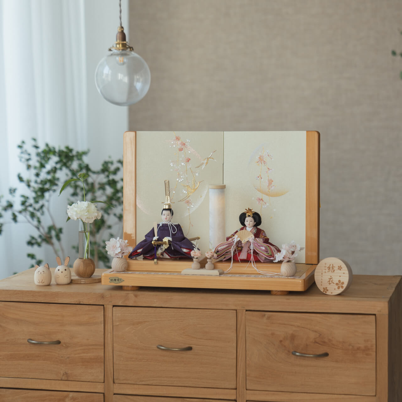 精巧な凛として美しい佇まいを天然木の優しいぬくもりが包み込む・・・まるで女の子の成長を温かく見守る家族の様に・・・そんなコンセプトから生まれた、親しみやすく、お子様と一緒に飾れる「ことの雛人形」です。コンパクトでちょうどいいサイズコンパクトでちょうどいいサイズ今どきのおうちに合わせたコンパクトなサイズに仕上げました。飾るスペースが狭くなりがちなマンションや子ども部屋にもぴったり。お部屋のイメージに調和するデザインお部屋のイメージに調和するデザイン天然木の素材を活かしたシンプルなデザインだから、お部屋の雰囲気にもピッタリ。お衣装へのこだわり(姫) 〜正絹〜お衣装へのこだわり(姫) 〜正絹〜縦糸(紫)の濃さによって様々な風合いの色が出ます。正倉院文様にある華文を現代風にアレンジし、落ち着いたエンジ色で織りました。お衣装へのこだわり(殿)〜正絹麹塵染〜お衣装へのこだわり(殿)〜正絹麹塵染〜公家のみに着用が許された色です。刈安草と紫革の染め色で桐竹鳳凰紋柄は天皇の位袍のみに使用されました。手作りへのこだわり〜裂地(きれじ)の裁断手作りへのこだわり〜裂地(きれじ)の裁断和紙で衣裳の各種型紙を作り、へり部分にのみ糊をつけ、裂地裏面に貼り付けます。型紙に沿って裁断して衣裳部品を作っていきます。手作りへのこだわり〜縫製手作りへのこだわり〜縫製姫の十二単の唐衣(からぎぬ)・五衣(いつつぎぬ)・単衣(ひとえ)・裾、殿の着物・裾・中袖等、数多くの衣裳部品をミシン、または手縫いで細やかな部分まで縫い合わせ、折り込み仕上げていきます。手作りへのこだわり〜着付け・振付け手作りへのこだわり〜着付け・振付け仕上がった衣裳は両腕を後方に曲げて羽織らせるようにして着付けます。次にそれぞれの人形の形に振付けます。腕を曲げる角度や手の位置などで全体のバランスを取ります。手作りへのこだわり〜頭差し手作りへのこだわり〜頭差し頭さしは最終の人形検品を兼ねて行われます。包まれた顔紙を外し、汚れ等無いことを確認します。頭と衣紋の中心線が一直線になるように差し込みます。ことのお雛様ことのお雛様お雛様の顔は時代とともに人気のお顔があります。ことのお雛様のお顔は時代に左右されない普遍的なシンプルで可愛らしいお顔となっています。お子さまの感性を育む天然木へのこだわりお子さまの感性を育む天然木へのこだわり素材には、富士山麓の無垢のヒノキやタモ、ブナといった天然木を使用。お子さまへの一生に一度の贈り物だから、木都は自然素材の天然木にこだわり続けています。※ 生産時期により使用する素材が一部変更になる場合がございます。熟練の職人による確かな手仕事熟練の職人による確かな手仕事伝統工芸の技術を受け継ぐ日本国内の熟練の職人が、一つひとつ丁寧に手づくりしています。おしゃれなギフト包装でお届けしますおしゃれなギフト包装でお届けします和の雰囲気を感じさせる越前和紙のギフト用ラッピングでお届け。料金がわかるものもお入れしていないので、そのまま贈り物として利用できます。商品レビュー記入でもれなくもらえる天然木のミニ名前札プレゼント商品レビュー記入でもれなくもらえる天然木のミニ名前札プレゼントミニサイズのお名前札 (通常販売価格1,980円) をプレゼント♪商品到着後、商品レビューをご記入の上、商品と同梱のチラシ記載のQRコードから応募フォームへ必要事項をご入力ください。店舗よりレビュー特典を発送いたします。※ お名前札の生年月日の表記は和暦となります。(例:令和七年)商品のご注文へ収納方法とセット内容お内裏様・お雛様・屏風・平台・親王台・人形小道具・前飾り・花飾り×2・行燈屏風は平台と同様に個別でダンボール箱におしまい下さい。親王台は屏風のダンボールに入れます。素材:ヒノキサイズ:W450mm × D300mm × H340mm梱包時:W465mm × D335mm × H235mm殿:約 W150mm × D130mm × H200mm姫:約 W160mm × D160mm × H130mm注意事項色合いなど実際のものと写真とでは多少の誤差が生じる場合がございます。また、手作りであり天然木を使用している為、多少の仕様の変化や風合いがひとつひとつ異なります。あらかじめご了承ください。部品には小さなものがございます。お子様がお口に入れないようにご注意ください。材質により木の刻印の濃淡に差が生じますが不良品ではございません。木製品である限り自然なこととご承知下さいませ。保管場所は変色やカビ、サビの原因になりますので湿気の少ない場所・直射日光の当たらない場所に保管してください。雄雛の正面にあります飾り帯のビニールは外さないでください。本商品に行燈は付属しておりません。別途お買い求めください。ご不明点がございましたら > お問い合わせページ からご相談ください。