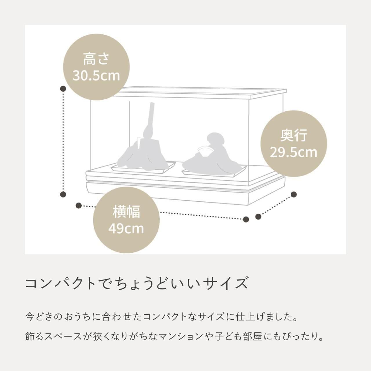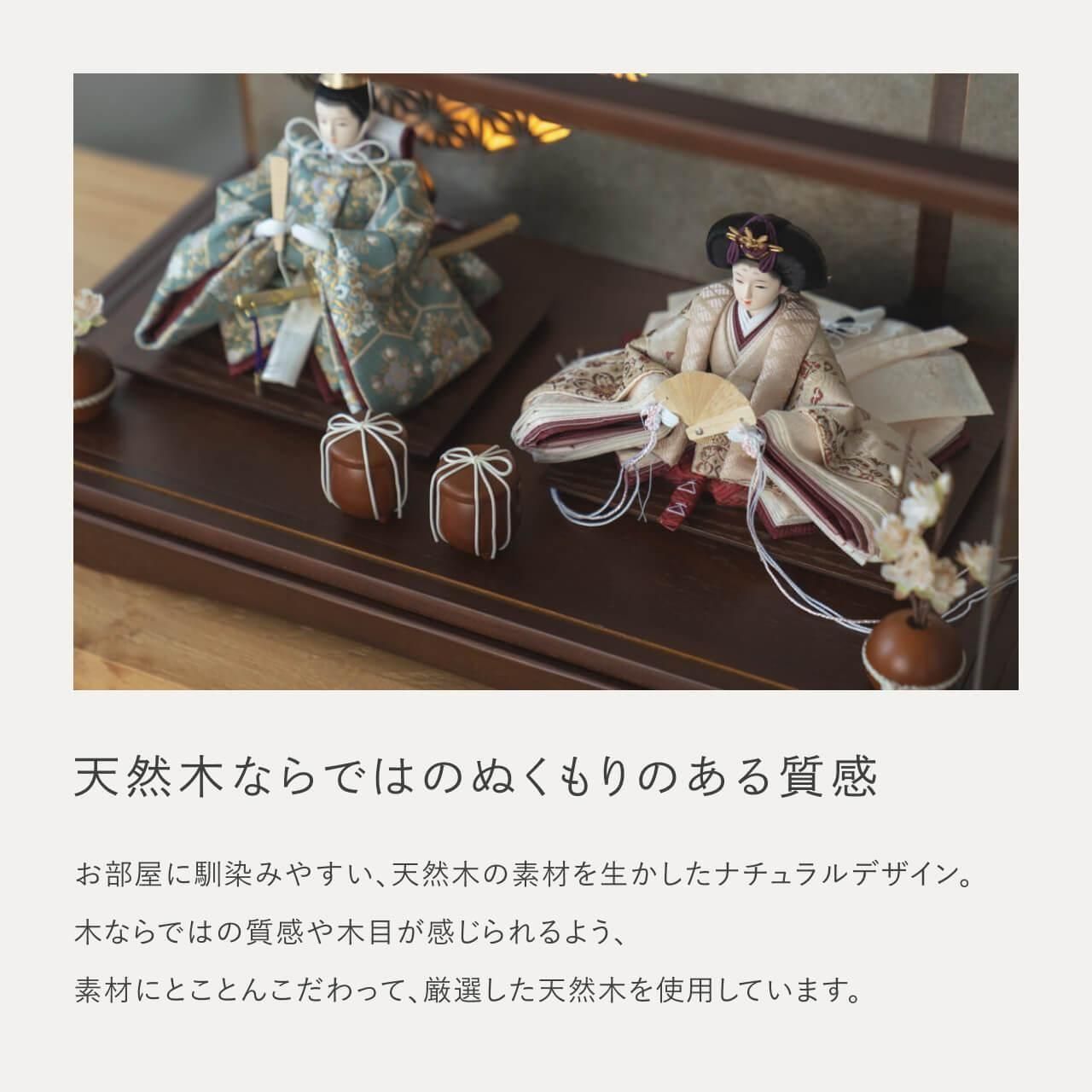 精巧な凛として美しい佇まいを天然木の優しいぬくもりが包み込む・・・まるで女の子の成長を温かく見守る家族の様に・・・そんなコンセプトから生まれた、親しみやすく、お子様と一緒に飾れる「ことの雛人形」です。コンパクトでちょうどいいサイズコンパクトでちょうどいいサイズ今どきのおうちに合わせたコンパクトなサイズに仕上げました。飾るスペースが狭くなりがちなマンションや子ども部屋にもぴったり。お部屋のイメージに調和するデザインお部屋のイメージに調和するデザイン天然木の素材を活かしたシンプルなデザインだから、お部屋の雰囲気にもピッタリ。手作りへのこだわり〜裂地(きれじ)の裁断手作りへのこだわり〜裂地(きれじ)の裁断和紙で衣裳の各種型紙を作り、へり部分にのみ糊をつけ、裂地裏面に貼り付けます。型紙に沿って裁断して衣裳部品を作っていきます。手作りへのこだわり〜縫製手作りへのこだわり〜縫製姫の十二単の唐衣(からぎぬ)・五衣(いつつぎぬ)・単衣(ひとえ)・裾、殿の着物・裾・中袖等、数多くの衣裳部品をミシン、または手縫いで細やかな部分まで縫い合わせ、折り込み仕上げていきます。手作りへのこだわり〜着付け・振付け手作りへのこだわり〜着付け・振付け仕上がった衣裳は両腕を後方に曲げて羽織らせるようにして着付けます。次にそれぞれの人形の形に振付けます。腕を曲げる角度や手の位置などで全体のバランスを取ります。手作りへのこだわり〜頭差し手作りへのこだわり〜頭差し頭さしは最終の人形検品を兼ねて行われます。包まれた顔紙を外し、汚れ等無いことを確認します。頭と衣紋の中心線が一直線になるように差し込みます。ことのお雛様ことのお雛様お雛様の顔は時代とともに人気のお顔があります。ことのお雛様のお顔は時代に左右されない普遍的なシンプルで可愛らしいお顔となっています。健やかな成長への願いを込めた 麻の葉文様健やかな成長への願いを込めた 麻の葉文様古来からの日本伝統の吉祥文様である麻の葉文様。麻の丈夫さ・成長の早さにあやかり、お子さまの健やかな成長への願いが込められています。ケース飾りでも手に取って本物の質感を感じてほしいケース飾りでも手に取って本物の質感を感じてほしい木都のケース飾りは、本物の素材や質感を感じながら親子で一緒に手に取って飾る体験をしてほしいから、あえて飾る手間を残しています。手間はかかりますが、伝統的な技法で一つひとつ手づくりしています。お子さまの感性を育む天然木へのこだわりお子さまの感性を育む天然木へのこだわり素材には、タモ、ブナといった天然木を使用。お子さまへの一生に一度の贈り物だから、木都は自然素材の天然木にこだわり続けています。※ 生産時期により使用する素材が一部変更になる場合がございます。熟練の職人による確かな手仕事熟練の職人による確かな手仕事伝統工芸の技術を受け継ぐ日本国内の熟練の職人が、一つひとつ丁寧に手づくりしています。おしゃれなギフト包装でお届けしますおしゃれなギフト包装でお届けします和の雰囲気を感じさせる越前和紙のギフト用ラッピングでお届け。料金がわかるものもお入れしていないので、そのまま贈り物として利用できます。商品レビュー記入でもれなくもらえる天然木のミニ名前札プレゼント商品レビュー記入でもれなくもらえる天然木のミニ名前札プレゼントミニサイズのお名前札 (通常販売価格1,980円) をプレゼント♪商品到着後、商品レビューをご記入の上、商品と同梱のチラシ記載のQRコードから応募フォームへ必要事項をご入力ください。店舗よりレビュー特典を発送いたします。※ お名前札の生年月日の表記は和暦となります。(例:令和七年)商品のご注文へ収納方法とセット内容お内裏様・お雛様・ケース・下台・人形小道具・貝桶×2・花飾り×2・電源ケーブル素材:タモサイズ:W490mm × D295mm × H305mm梱包時:W550mm × D355mm × H480mm殿:W155mm × D120mm × H200mm姫:W180mm × D160mm × H120mm注意事項色合いなど実際のものと写真とでは多少の誤差が生じる場合がございます。また、手作りであり天然木を使用している為、多少の仕様の変化や風合いがひとつひとつ異なります。あらかじめご了承ください。部品には小さなものがございます。お子様がお口に入れないようにご注意ください。材質により木の刻印の濃淡に差が生じますが不良品ではございません。木製品である限り自然なこととご承知下さいませ。保管場所は変色やカビ、サビの原因になりますので湿気の少ない場所・直射日光の当たらない場所に保管してください。雄雛の正面にあります飾り帯のビニールは外さないでください。本商品に行燈は付属しておりません。別途お買い求めください。ご不明点がございましたら > お問い合わせページ からご相談ください。