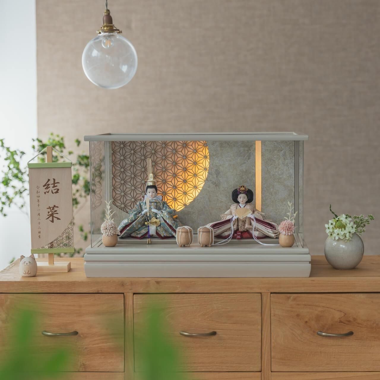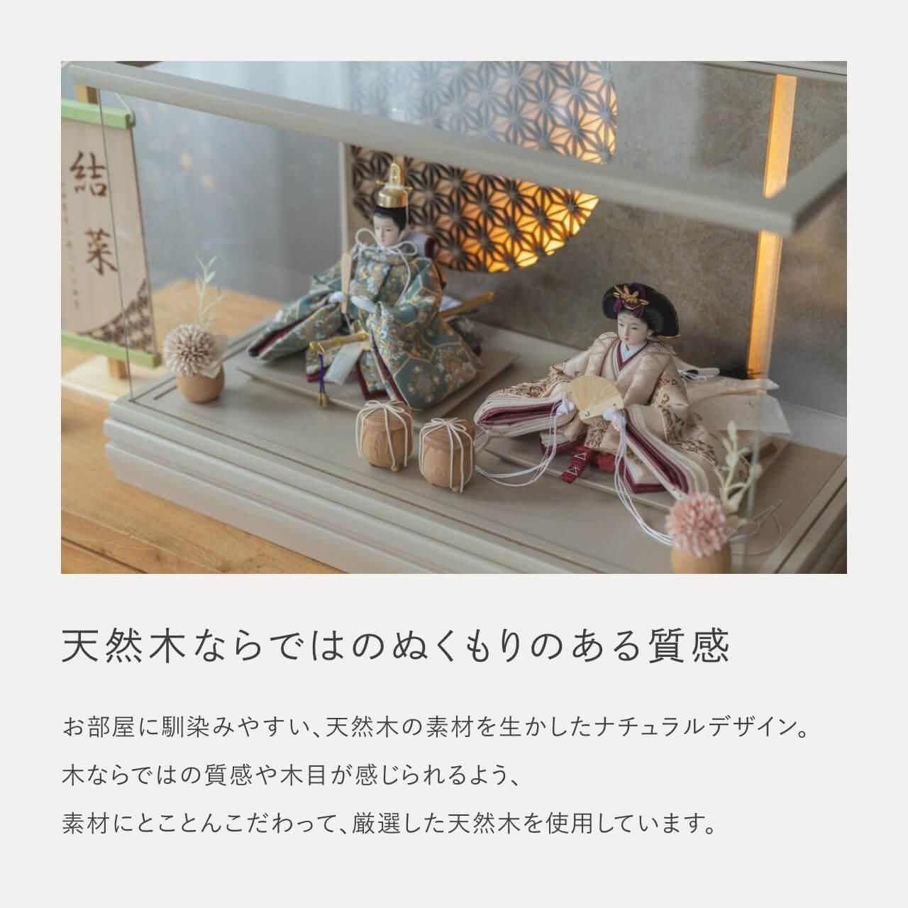 精巧な凛として美しい佇まいを天然木の優しいぬくもりが包み込む・・・まるで女の子の成長を温かく見守る家族の様に・・・そんなコンセプトから生まれた、親しみやすく、お子様と一緒に飾れる「ことの雛人形」です。コンパクトでちょうどいいサイズコンパクトでちょうどいいサイズ今どきのおうちに合わせたコンパクトなサイズに仕上げました。飾るスペースが狭くなりがちなマンションや子ども部屋にもぴったり。お部屋のイメージに調和するデザインお部屋のイメージに調和するデザイン天然木の素材を活かしたシンプルなデザインだから、お部屋の雰囲気にもピッタリ。手作りへのこだわり〜裂地(きれじ)の裁断手作りへのこだわり〜裂地(きれじ)の裁断和紙で衣裳の各種型紙を作り、へり部分にのみ糊をつけ、裂地裏面に貼り付けます。型紙に沿って裁断して衣裳部品を作っていきます。手作りへのこだわり〜縫製手作りへのこだわり〜縫製姫の十二単の唐衣(からぎぬ)・五衣(いつつぎぬ)・単衣(ひとえ)・裾、殿の着物・裾・中袖等、数多くの衣裳部品をミシン、または手縫いで細やかな部分まで縫い合わせ、折り込み仕上げていきます。手作りへのこだわり〜着付け・振付け手作りへのこだわり〜着付け・振付け仕上がった衣裳は両腕を後方に曲げて羽織らせるようにして着付けます。次にそれぞれの人形の形に振付けます。腕を曲げる角度や手の位置などで全体のバランスを取ります。手作りへのこだわり〜頭差し手作りへのこだわり〜頭差し頭さしは最終の人形検品を兼ねて行われます。包まれた顔紙を外し、汚れ等無いことを確認します。頭と衣紋の中心線が一直線になるように差し込みます。ことのお雛様ことのお雛様お雛様の顔は時代とともに人気のお顔があります。ことのお雛様のお顔は時代に左右されない普遍的なシンプルで可愛らしいお顔となっています。健やかな成長への願いを込めた 麻の葉文様健やかな成長への願いを込めた 麻の葉文様古来からの日本伝統の吉祥文様である麻の葉文様。麻の丈夫さ・成長の早さにあやかり、お子さまの健やかな成長への願いが込められています。ケース飾りでも手に取って本物の質感を感じてほしいケース飾りでも手に取って本物の質感を感じてほしい木都のケース飾りは、本物の素材や質感を感じながら親子で一緒に手に取って飾る体験をしてほしいから、あえて飾る手間を残しています。手間はかかりますが、伝統的な技法で一つひとつ手づくりしています。お子さまの感性を育む天然木へのこだわりお子さまの感性を育む天然木へのこだわり素材には、タモ、ブナといった天然木を使用。お子さまへの一生に一度の贈り物だから、木都は自然素材の天然木にこだわり続けています。※ 生産時期により使用する素材が一部変更になる場合がございます。熟練の職人による確かな手仕事熟練の職人による確かな手仕事伝統工芸の技術を受け継ぐ日本国内の熟練の職人が、一つひとつ丁寧に手づくりしています。おしゃれなギフト包装でお届けしますおしゃれなギフト包装でお届けします和の雰囲気を感じさせる越前和紙のギフト用ラッピングでお届け。料金がわかるものもお入れしていないので、そのまま贈り物として利用できます。商品レビュー記入でもれなくもらえる天然木のミニ名前札プレゼント商品レビュー記入でもれなくもらえる天然木のミニ名前札プレゼントミニサイズのお名前札 (通常販売価格1,980円) をプレゼント♪商品到着後、商品レビューをご記入の上、商品と同梱のチラシ記載のQRコードから応募フォームへ必要事項をご入力ください。店舗よりレビュー特典を発送いたします。※ お名前札の生年月日の表記は和暦となります。(例:令和七年)商品のご注文へ収納方法とセット内容お内裏様・お雛様・ケース・下台・人形小道具・貝桶×2・花飾り×2・電源ケーブル素材:タモサイズ:W490mm × D295mm × H305mm梱包時:W550mm × D355mm × H480mm殿:W155mm × D120mm × H200mm姫:W180mm × D160mm × H120mm注意事項色合いなど実際のものと写真とでは多少の誤差が生じる場合がございます。また、手作りであり天然木を使用している為、多少の仕様の変化や風合いがひとつひとつ異なります。あらかじめご了承ください。部品には小さなものがございます。お子様がお口に入れないようにご注意ください。材質により木の刻印の濃淡に差が生じますが不良品ではございません。木製品である限り自然なこととご承知下さいませ。保管場所は変色やカビ、サビの原因になりますので湿気の少ない場所・直射日光の当たらない場所に保管してください。雄雛の正面にあります飾り帯のビニールは外さないでください。本商品に行燈は付属しておりません。別途お買い求めください。ご不明点がございましたら > お問い合わせページ からご相談ください。