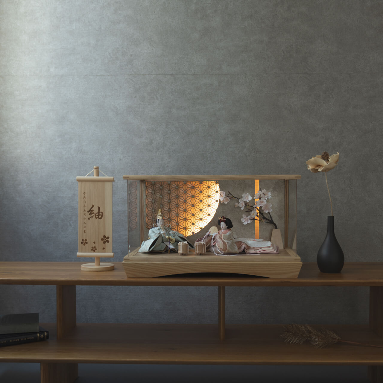 平安という言葉は平安京に由来しており、「穏やか」「安泰」といった願いが込められております。ことの平安ひなとは、お子様の成長や未来が穏やかで無事であるよう祈りを込めたお雛様です。そんな雛人形をてづくり工房「木都」の職人が、伝統工芸の技術と天然木の素材を活かし、真心込めて1つ1つ丁寧につくりました。コンパクトでちょうどいいサイズコンパクトでちょうどいいサイズ今どきのおうちに合わせたコンパクトなサイズに仕上げました。飾るスペースが狭くなりがちなマンションや子ども部屋にもぴったり。お部屋のイメージに調和するデザインお部屋のイメージに調和するデザイン天然木の素材を活かしたシンプルなデザインだから、お部屋の雰囲気にもピッタリ。お衣装へのこだわり 〜小菊唐草小葵文〜お衣装へのこだわり 〜小菊唐草小葵文〜衣装には、不老長寿を象徴する菊と、途切れることなく蔓を伸ばすことから子孫繁栄の意味をもつ唐草に、好機好転を表す「葵」の紋様を組み込んだ、縁起の良い小菊唐草小葵文が描かれています。一般的な親王の形とは違い、お姫様の着物の裾を長くし、平安絵巻のような流れる動きをつけました。横向きに飾ることで、衣装と裾重ねの色の美しさを同時に楽しんでいただけます。上質な糸から織られた正絹西陣織と和紙を使用し、しなやかさを保ちつつ着物の形が崩れないよう工夫しました。手作りへのこだわり 〜裂地(きれじ)の裁断手作りへのこだわり 〜裂地(きれじ)の裁断和紙で衣裳の各種型紙を作り、へり部分にのみ糊をつけ、裂地裏面に貼り付けます。型紙に沿って裁断して衣裳部品を作っていきます。手作りへのこだわり 〜縫製手作りへのこだわり 〜縫製姫の十二単の唐衣(からぎぬ)・五衣(いつつぎぬ)・単衣(ひとえ)・裾、殿の着物・裾・中袖等、数多くの衣裳部品をミシン、または手縫いで細やかな部分まで縫い合わせ、折り込み仕上げていきます。手作りへのこだわり 〜着付け・振付け手作りへのこだわり 〜着付け・振付け仕上がった衣裳は両腕を後方に曲げて羽織らせるようにして着付けます。次にそれぞれの人形の形に振付けます。腕を曲げる角度や手の位置などで全体のバランスを取ります。手作りへのこだわり 〜頭差し手作りへのこだわり 〜頭差し頭さしは最終の人形検品を兼ねて行われます。包まれた顔紙を外し、汚れ等無いことを確認します。頭と衣紋の中心線が一直線になるように差し込みます。ことのお雛様ことのお雛様お雛様の顔は時代とともに人気のお顔があります。ことのお雛様のお顔は時代に左右されない普遍的なシンプルで可愛らしいお顔となっています。健やかな成長への願いを込めた 麻の葉文様健やかな成長への願いを込めた 麻の葉文様古来からの日本伝統の吉祥文様である麻の葉文様。麻の丈夫さ・成長の早さにあやかり、お子さまの健やかな成長への願いが込められています。ケース飾りでも手に取って本物の質感を感じてほしいケース飾りでも手に取って本物の質感を感じてほしい木都のケース飾りは、本物の素材や質感を感じながら親子で一緒に手に取って飾る体験をしてほしいから、あえて飾る手間を残しています。手間はかかりますが、伝統的な技法で一つひとつ手づくりしています。お子さまの感性を育む天然木へのこだわりお子さまの感性を育む天然木へのこだわり素材には、タモ、ブナといった天然木を使用。お子さまへの一生に一度の贈り物だから、木都は自然素材の天然木にこだわり続けています。※ 生産時期により使用する素材が一部変更になる場合がございます。熟練の職人による確かな手仕事熟練の職人による確かな手仕事伝統工芸の技術を受け継ぐ日本国内の熟練の職人が、一つひとつ丁寧に手づくりしています。おしゃれなギフト包装でお届けしますおしゃれなギフト包装でお届けします和の雰囲気を感じさせる越前和紙のギフト用ラッピングでお届け。料金がわかるものもお入れしていないので、そのまま贈り物として利用できます。商品レビュー記入でもれなくもらえる天然木のミニ名前札プレゼント商品レビュー記入でもれなくもらえる天然木のミニ名前札プレゼントミニサイズのお名前札 (通常販売価格1,980円) をプレゼント♪商品到着後、商品レビューをご記入の上、商品と同梱のチラシ記載のQRコードから応募フォームへ必要事項をご入力ください。店舗よりレビュー特典を発送いたします。※ お名前札の生年月日の表記は和暦となります。(例:令和七年)商品のご注文へ収納方法とセット内容お内裏様・お雛様・ケース・下台・人形小道具・貝桶×2・桜飾り・電源ケーブル素材:タモサイズ:W485mm × D290mm × H285mm梱包時:W550mm × D355mm × H480mm殿:約 W155mm × D160mm × H165mm姫:約 W140mm × D440mm × H110mm注意事項色合いなど実際のものと写真とでは多少の誤差が生じる場合がございます。また、手作りであり天然木を使用している為、多少の仕様の変化や風合いがひとつひとつ異なりま