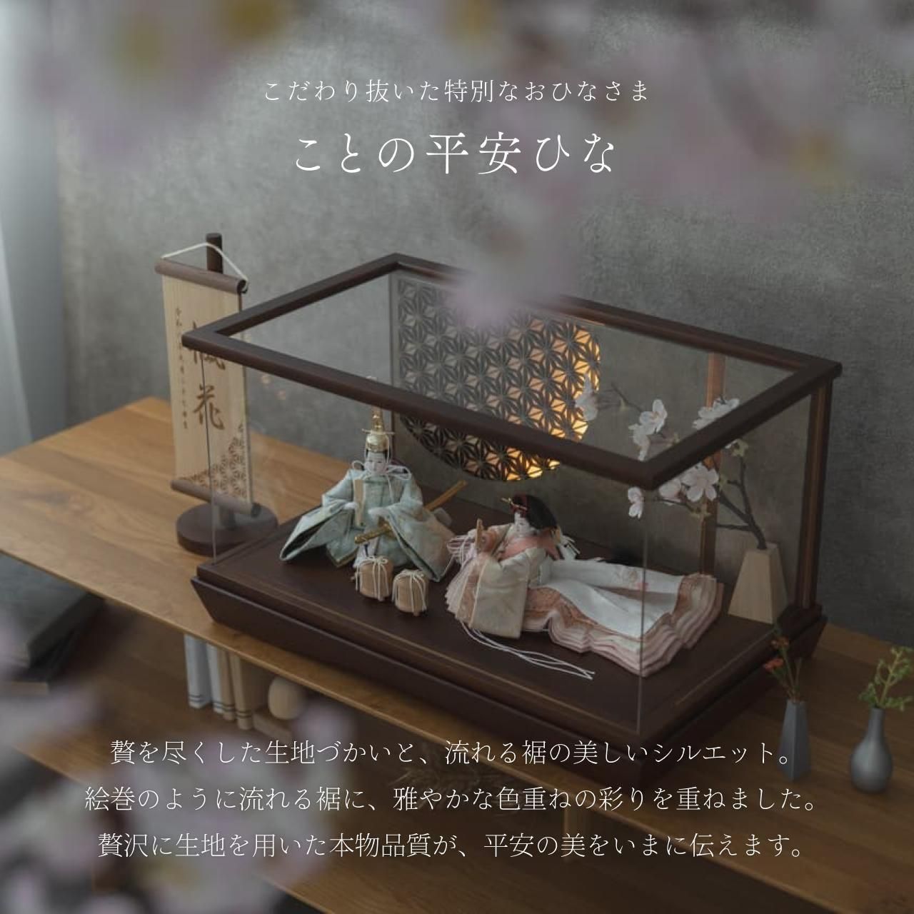 平安という言葉は平安京に由来しており、「穏やか」「安泰」といった願いが込められております。ことの平安ひなとは、お子様の成長や未来が穏やかで無事であるよう祈りを込めたお雛様です。そんな雛人形をてづくり工房「木都」の職人が、伝統工芸の技術と天然木の素材を活かし、真心込めて1つ1つ丁寧につくりました。コンパクトでちょうどいいサイズコンパクトでちょうどいいサイズ今どきのおうちに合わせたコンパクトなサイズに仕上げました。飾るスペースが狭くなりがちなマンションや子ども部屋にもぴったり。お部屋のイメージに調和するデザインお部屋のイメージに調和するデザイン天然木の素材を活かしたシンプルなデザインだから、お部屋の雰囲気にもピッタリ。お衣装へのこだわり 〜小菊唐草小葵文〜お衣装へのこだわり 〜小菊唐草小葵文〜衣装には、不老長寿を象徴する菊と、途切れることなく蔓を伸ばすことから子孫繁栄の意味をもつ唐草に、好機好転を表す「葵」の紋様を組み込んだ、縁起の良い小菊唐草小葵文が描かれています。一般的な親王の形とは違い、お姫様の着物の裾を長くし、平安絵巻のような流れる動きをつけました。横向きに飾ることで、衣装と裾重ねの色の美しさを同時に楽しんでいただけます。上質な糸から織られた正絹西陣織と和紙を使用し、しなやかさを保ちつつ着物の形が崩れないよう工夫しました。手作りへのこだわり 〜裂地(きれじ)の裁断手作りへのこだわり 〜裂地(きれじ)の裁断和紙で衣裳の各種型紙を作り、へり部分にのみ糊をつけ、裂地裏面に貼り付けます。型紙に沿って裁断して衣裳部品を作っていきます。手作りへのこだわり 〜縫製手作りへのこだわり 〜縫製姫の十二単の唐衣(からぎぬ)・五衣(いつつぎぬ)・単衣(ひとえ)・裾、殿の着物・裾・中袖等、数多くの衣裳部品をミシン、または手縫いで細やかな部分まで縫い合わせ、折り込み仕上げていきます。手作りへのこだわり 〜着付け・振付け手作りへのこだわり 〜着付け・振付け仕上がった衣裳は両腕を後方に曲げて羽織らせるようにして着付けます。次にそれぞれの人形の形に振付けます。腕を曲げる角度や手の位置などで全体のバランスを取ります。手作りへのこだわり 〜頭差し手作りへのこだわり 〜頭差し頭さしは最終の人形検品を兼ねて行われます。包まれた顔紙を外し、汚れ等無いことを確認します。頭と衣紋の中心線が一直線になるように差し込みます。ことのお雛様ことのお雛様お雛様の顔は時代とともに人気のお顔があります。ことのお雛様のお顔は時代に左右されない普遍的なシンプルで可愛らしいお顔となっています。健やかな成長への願いを込めた 麻の葉文様健やかな成長への願いを込めた 麻の葉文様古来からの日本伝統の吉祥文様である麻の葉文様。麻の丈夫さ・成長の早さにあやかり、お子さまの健やかな成長への願いが込められています。ケース飾りでも手に取って本物の質感を感じてほしいケース飾りでも手に取って本物の質感を感じてほしい木都のケース飾りは、本物の素材や質感を感じながら親子で一緒に手に取って飾る体験をしてほしいから、あえて飾る手間を残しています。手間はかかりますが、伝統的な技法で一つひとつ手づくりしています。お子さまの感性を育む天然木へのこだわりお子さまの感性を育む天然木へのこだわり素材には、タモ、ブナといった天然木を使用。お子さまへの一生に一度の贈り物だから、木都は自然素材の天然木にこだわり続けています。※ 生産時期により使用する素材が一部変更になる場合がございます。熟練の職人による確かな手仕事熟練の職人による確かな手仕事伝統工芸の技術を受け継ぐ日本国内の熟練の職人が、一つひとつ丁寧に手づくりしています。おしゃれなギフト包装でお届けしますおしゃれなギフト包装でお届けします和の雰囲気を感じさせる越前和紙のギフト用ラッピングでお届け。料金がわかるものもお入れしていないので、そのまま贈り物として利用できます。商品レビュー記入でもれなくもらえる天然木のミニ名前札プレゼント商品レビュー記入でもれなくもらえる天然木のミニ名前札プレゼントミニサイズのお名前札 (通常販売価格1,980円) をプレゼント♪商品到着後、商品レビューをご記入の上、商品と同梱のチラシ記載のQRコードから応募フォームへ必要事項をご入力ください。店舗よりレビュー特典を発送いたします。※ お名前札の生年月日の表記は和暦となります。(例:令和七年)商品のご注文へ収納方法とセット内容お内裏様・お雛様・ケース・下台・人形小道具・貝桶×2・桜飾り・電源ケーブル素材:タモサイズ:W485mm × D290mm × H285mm梱包時:W550mm × D355mm × H480mm殿:約 W155mm × D160mm × H165mm姫:約 W140mm × D440mm × H110mm注意事項色合いなど実際のものと写真とでは多少の誤差が生じる場合がございます。また、手作りであり天然木を使用している為、多少の仕様の変化や風合いがひとつひとつ異なりま
