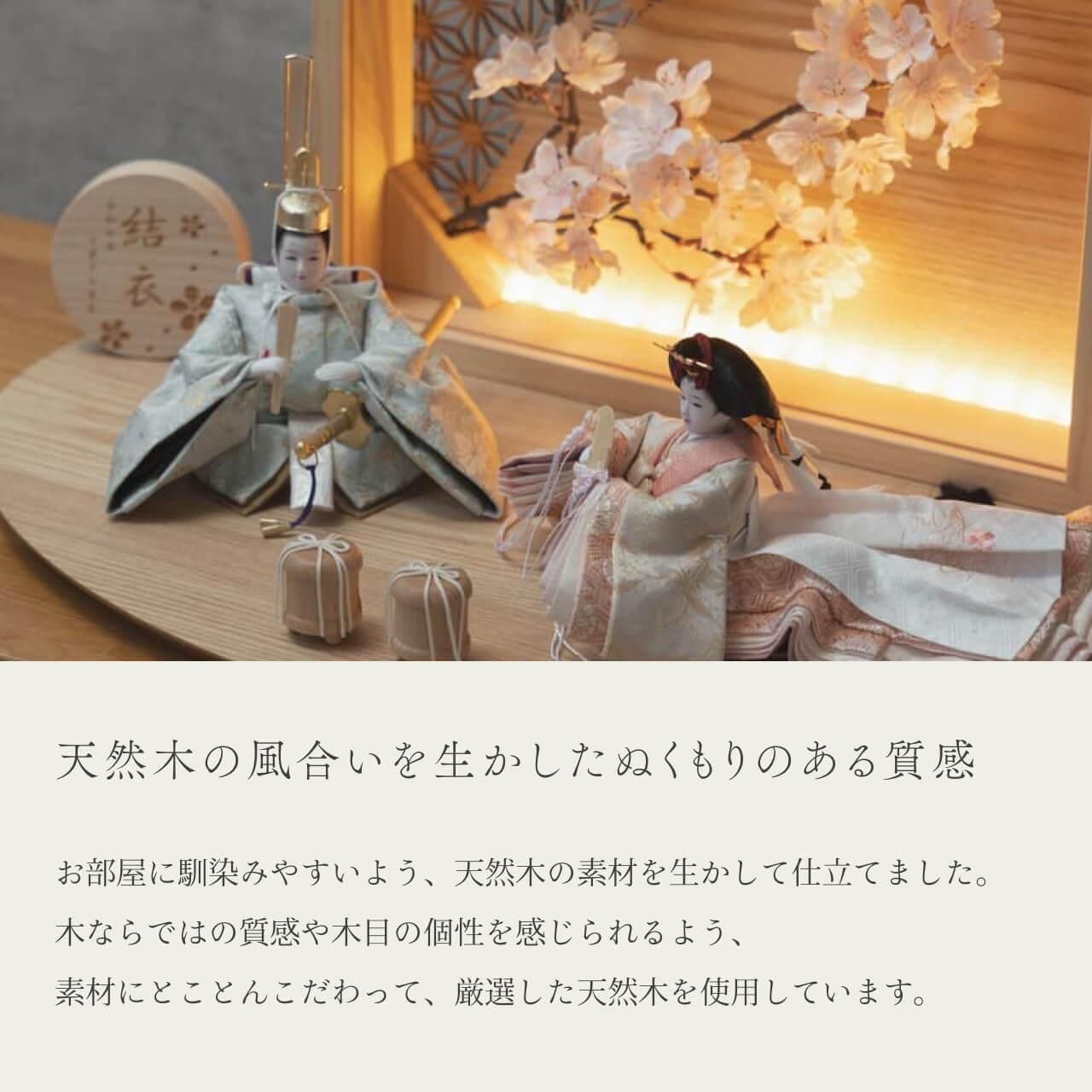 そんな雛人形をてづくり工房「木都」の職人が、伝統工芸の技術と天然木の素材を活かし、真心込めて1つ1つ丁寧につくりました。