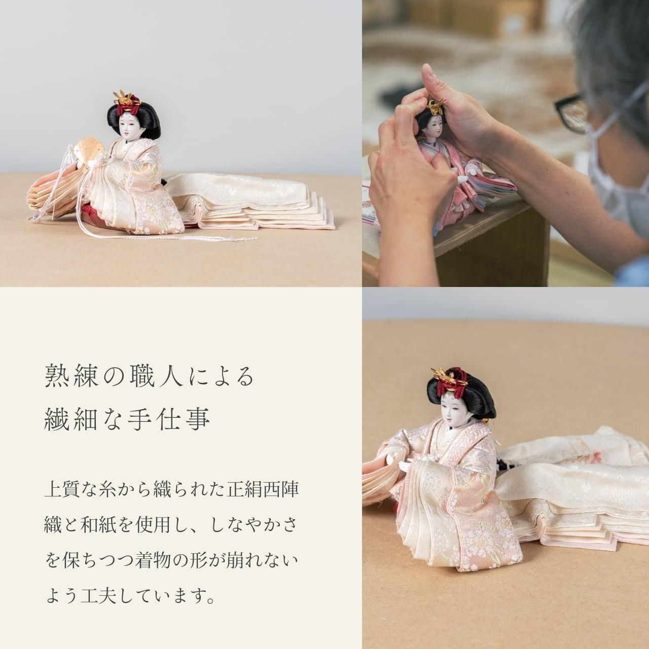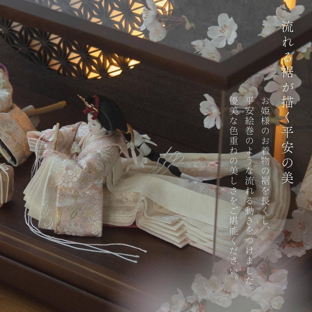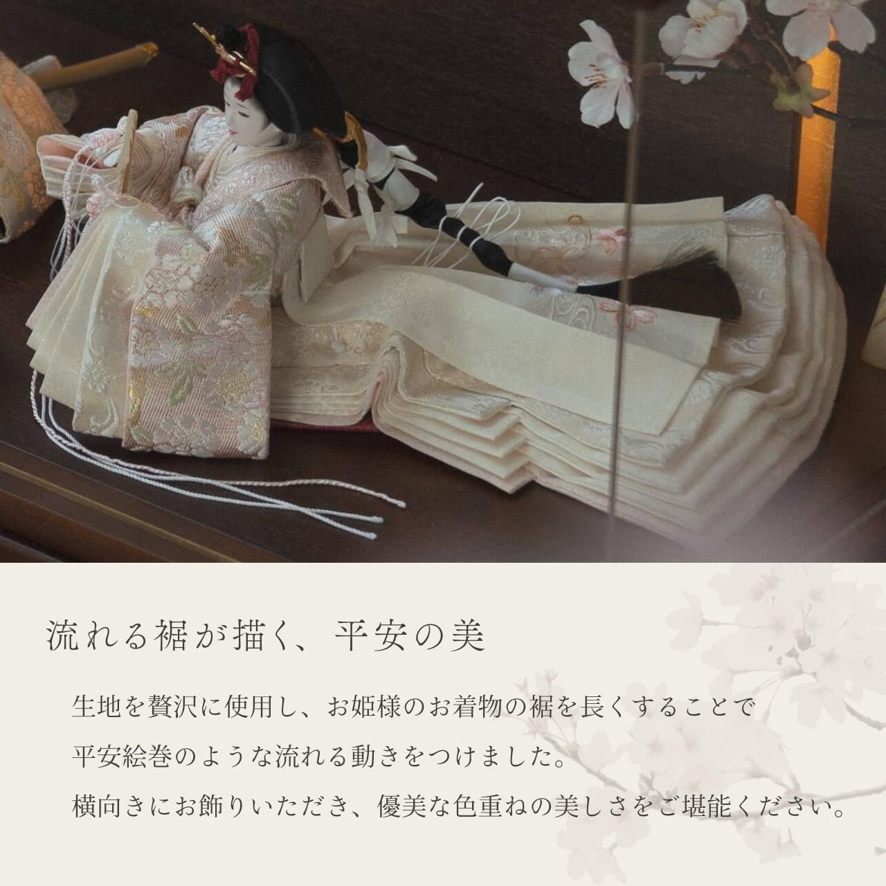 平安という言葉は平安京に由来しており、「穏やか」「安泰」といった願いが込められております。ことの平安ひなとは、お子様の成長や未来が穏やかで無事であるよう祈りを込めたお雛様です。そんな雛人形をてづくり工房「木都」の職人が、伝統工芸の技術と天然木の素材を活かし、真心込めて1つ1つ丁寧につくりました。コンパクトでちょうどいいサイズコンパクトでちょうどいいサイズ今どきのおうちに合わせたコンパクトなサイズに仕上げました。飾るスペースが狭くなりがちなマンションや子ども部屋にもぴったり。お部屋のイメージに調和するデザインお部屋のイメージに調和するデザイン天然木の素材を活かしたシンプルなデザインだから、お部屋の雰囲気にもピッタリ。お衣装へのこだわり 〜八重桜文〜お衣装へのこだわり 〜八重桜文〜衣装には、「しとやか」の意味をもつ八重桜が描かれています。また、幾重にも重なる花びらを積み重ねた知識に見立てて「理知に富んだ教育」などという意味があり、人の見た目の美しさだけでなく、内面の美しさを表しています。手作りへのこだわり 〜裂地(きれじ)の裁断手作りへのこだわり 〜裂地(きれじ)の裁断和紙で衣裳の各種型紙を作り、へり部分にのみ糊をつけ、裂地裏面に貼り付けます。型紙に沿って裁断して衣裳部品を作っていきます。手作りへのこだわり 〜縫製手作りへのこだわり 〜縫製姫の十二単の唐衣(からぎぬ)・五衣(いつつぎぬ)・単衣(ひとえ)・裾、殿の着物・裾・中袖等、数多くの衣裳部品をミシン、または手縫いで細やかな部分まで縫い合わせ、折り込み仕上げていきます。手作りへのこだわり 〜着付け・振付け手作りへのこだわり 〜着付け・振付け仕上がった衣裳は両腕を後方に曲げて羽織らせるようにして着付けます。次にそれぞれの人形の形に振付けます。腕を曲げる角度や手の位置などで全体のバランスを取ります。手作りへのこだわり 〜頭差し手作りへのこだわり 〜頭差し頭さしは最終の人形検品を兼ねて行われます。包まれた顔紙を外し、汚れ等無いことを確認します。頭と衣紋の中心線が一直線になるように差し込みます。ことのお雛様ことのお雛様お雛様の顔は時代とともに人気のお顔があります。ことのお雛様のお顔は時代に左右されない普遍的なシンプルで可愛らしいお顔となっています。健やかな成長への願いを込めた 麻の葉文様健やかな成長への願いを込めた 麻の葉文様古来からの日本伝統の吉祥文様である麻の葉文様。麻の丈夫さ・成長の早さにあやかり、お子さまの健やかな成長への願いが込められています。お子さまの感性を育む天然木へのこだわりお子さまの感性を育む天然木へのこだわり素材には、タモ、ブナといった天然木を使用。お子さまへの一生に一度の贈り物だから、木都は自然素材の天然木にこだわり続けています。※ 生産時期により使用する素材が一部変更になる場合がございます。熟練の職人による確かな手仕事熟練の職人による確かな手仕事伝統工芸の技術を受け継ぐ日本国内の熟練の職人が、一つひとつ丁寧に手づくりしています。おしゃれなギフト包装でお届けしますおしゃれなギフト包装でお届けします和の雰囲気を感じさせる越前和紙のギフト用ラッピングでお届け。料金がわかるものもお入れしていないので、そのまま贈り物として利用できます。商品レビュー記入でもれなくもらえる天然木のミニ名前札プレゼント商品レビュー記入でもれなくもらえる天然木のミニ名前札プレゼントミニサイズのお名前札 (通常販売価格1,980円) をプレゼント♪商品到着後、商品レビューをご記入の上、商品と同梱のチラシ記載のQRコードから応募フォームへ必要事項をご入力ください。店舗よりレビュー特典を発送いたします。※ お名前札の生年月日の表記は和暦となります。(例:令和七年)商品のご注文へ収納方法とセット内容お内裏様・お雛様・ケース・下台・人形小道具・貝桶×2・桜飾り・電源ケーブル素材:タモサイズ:W485mm × D290mm × H285mm梱包時:W550mm × D355mm × H480mm殿:約 W155mm × D160mm × H165mm姫:約 W140mm × D440mm × H110mm注意事項色合いなど実際のものと写真とでは多少の誤差が生じる場合がございます。また、手作りであり天然木を使用している為、多少の仕様の変化や風合いがひとつひとつ異なります。あらかじめご了承ください。部品には小さなものがございます。お子様がお口に入れないようにご注意ください。材質により木の刻印の濃淡に差が生じますが不良品ではございません。木製品である限り自然なこととご承知下さいませ。保管場所は変色やカビ、サビの原因になりますので湿気の少ない場所・直射日光の当たらない場所に保管してください。雄雛の正面にあります飾り帯のビニールは外さないでください。本商品に行燈は付属しておりません。別途お買い求めください。ご不明点がございましたら > お問い合わせページ からご相談ください。