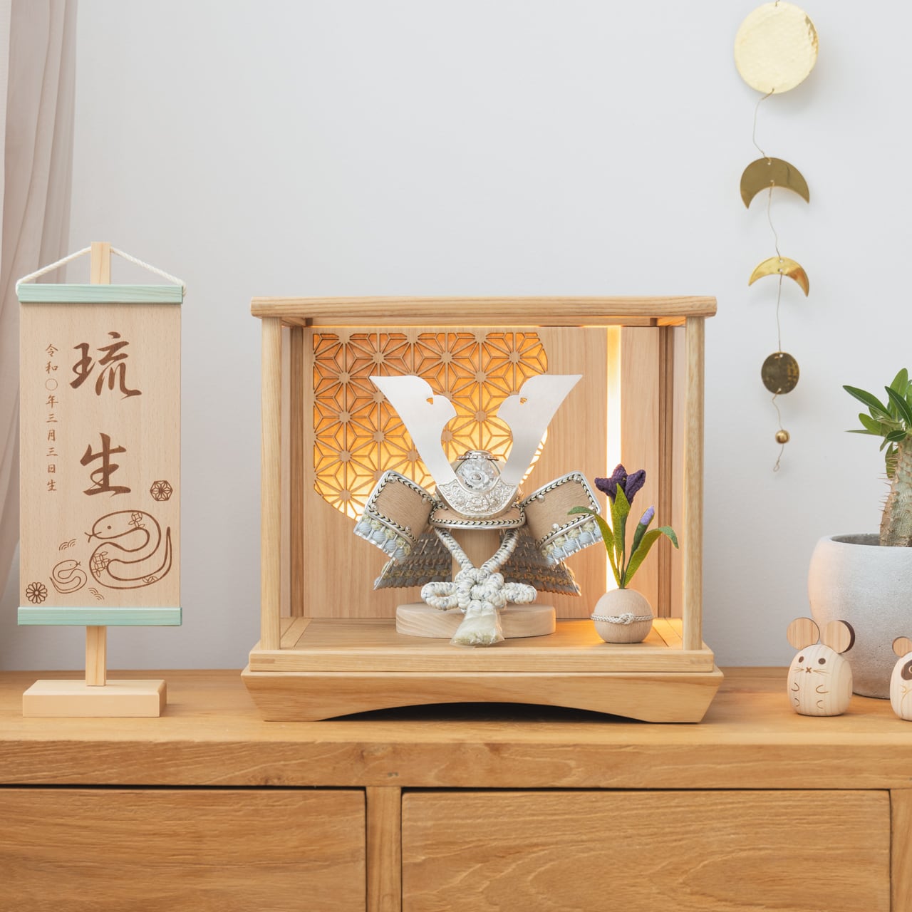親しみやすく、お子様と一緒に飾れることのオリジナル兜です。